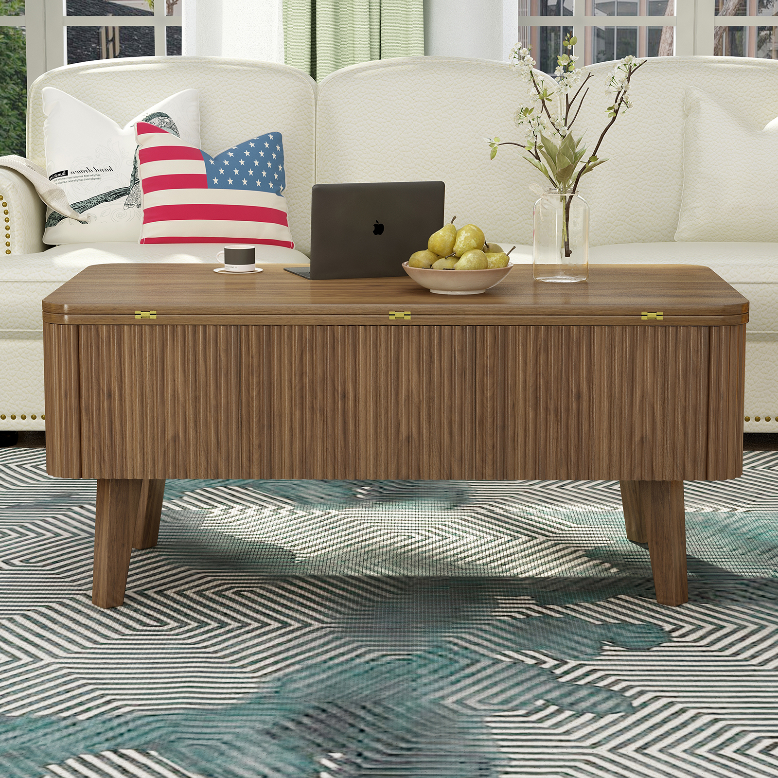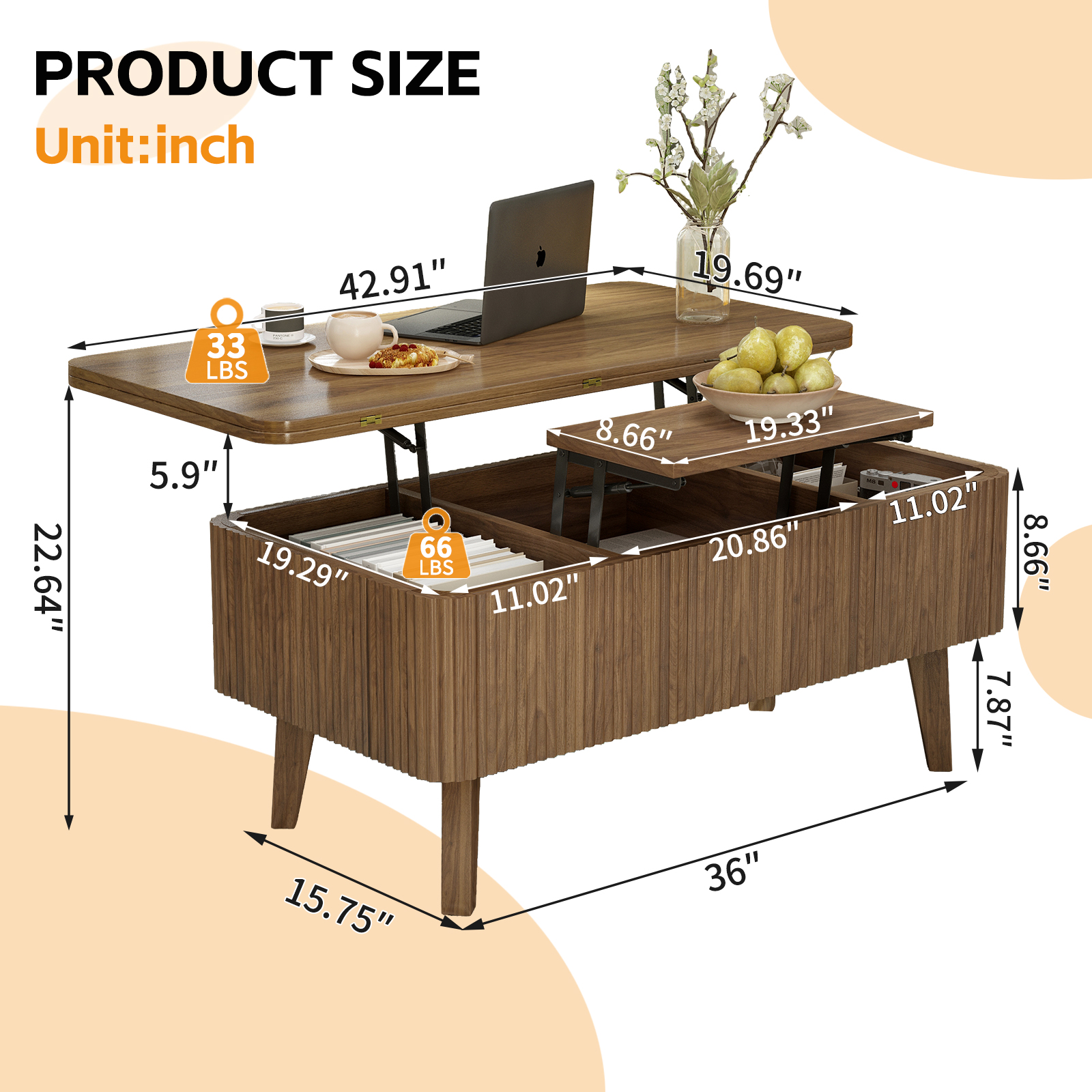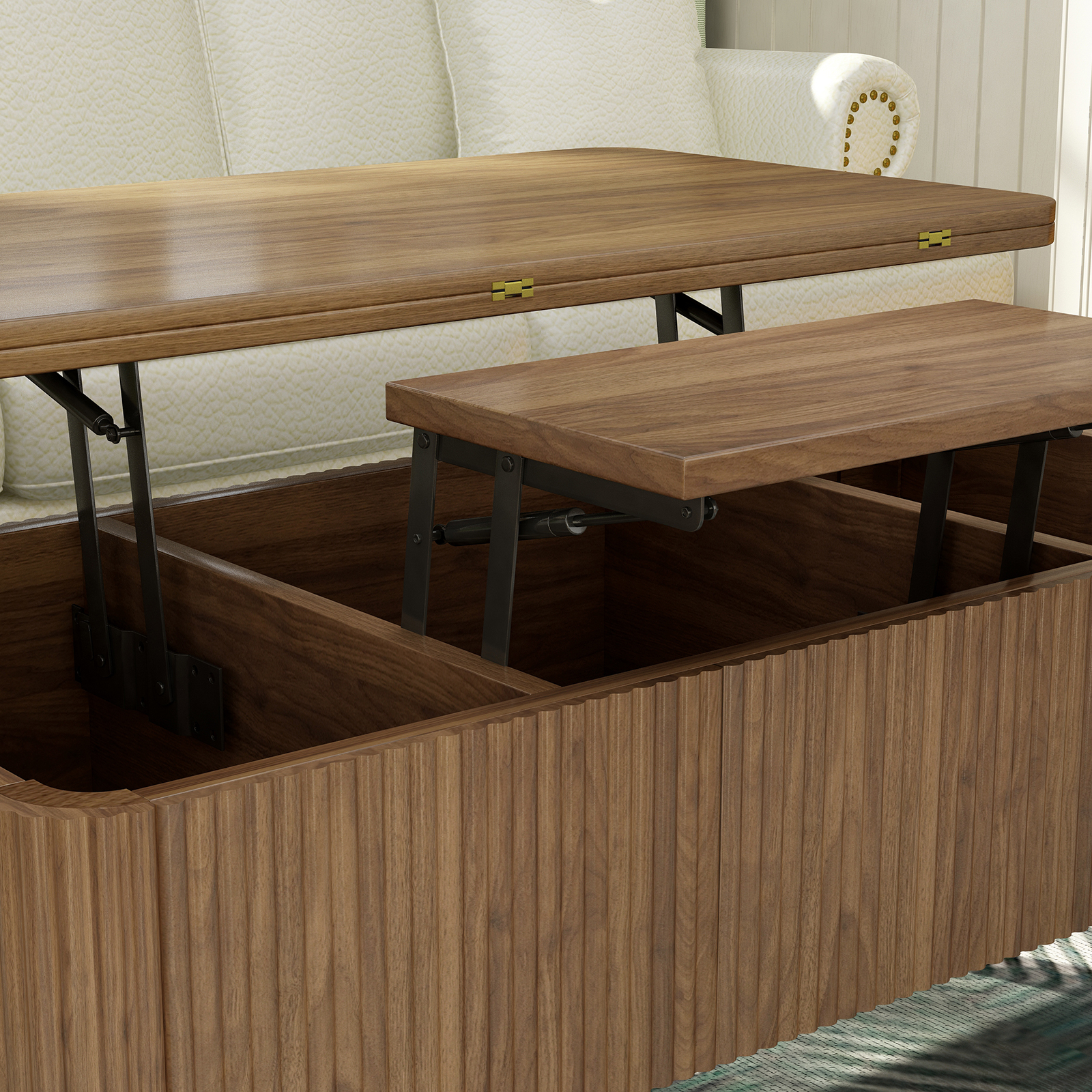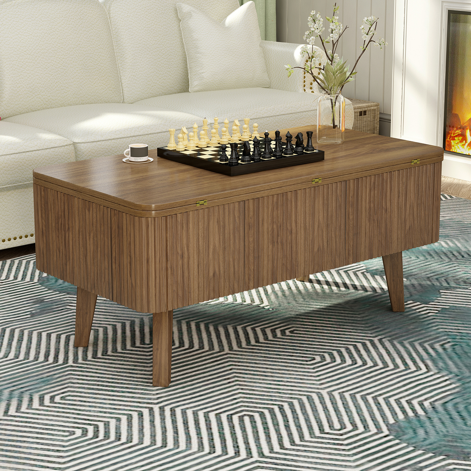 Product Name:3 in 1 Lift Top Coffee Table, Fluted Convertible Coffee Tables Converts to Dining Tables, Modern Oval Wooden Center Table with Storage for Living Room Office Small Space (Walnut)