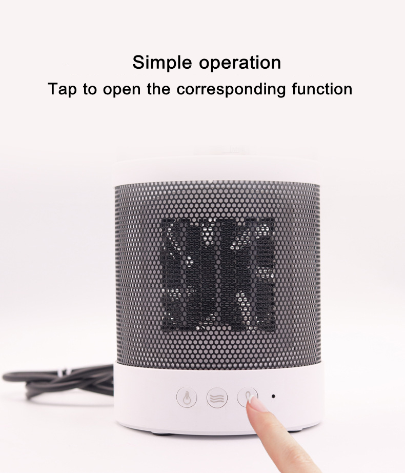 2. This electronic mini space heater of ours is a portable desk heater; it is 8.3in high and 5.3in wide, very compact, we can place them on the bedside table, desk, kitchen, baby room, and It is used in the bathroom, and we can use it for local heating and humidification when we are working at home, reading, resting, workshops and taking a bath. It can also be a space heater for the office.