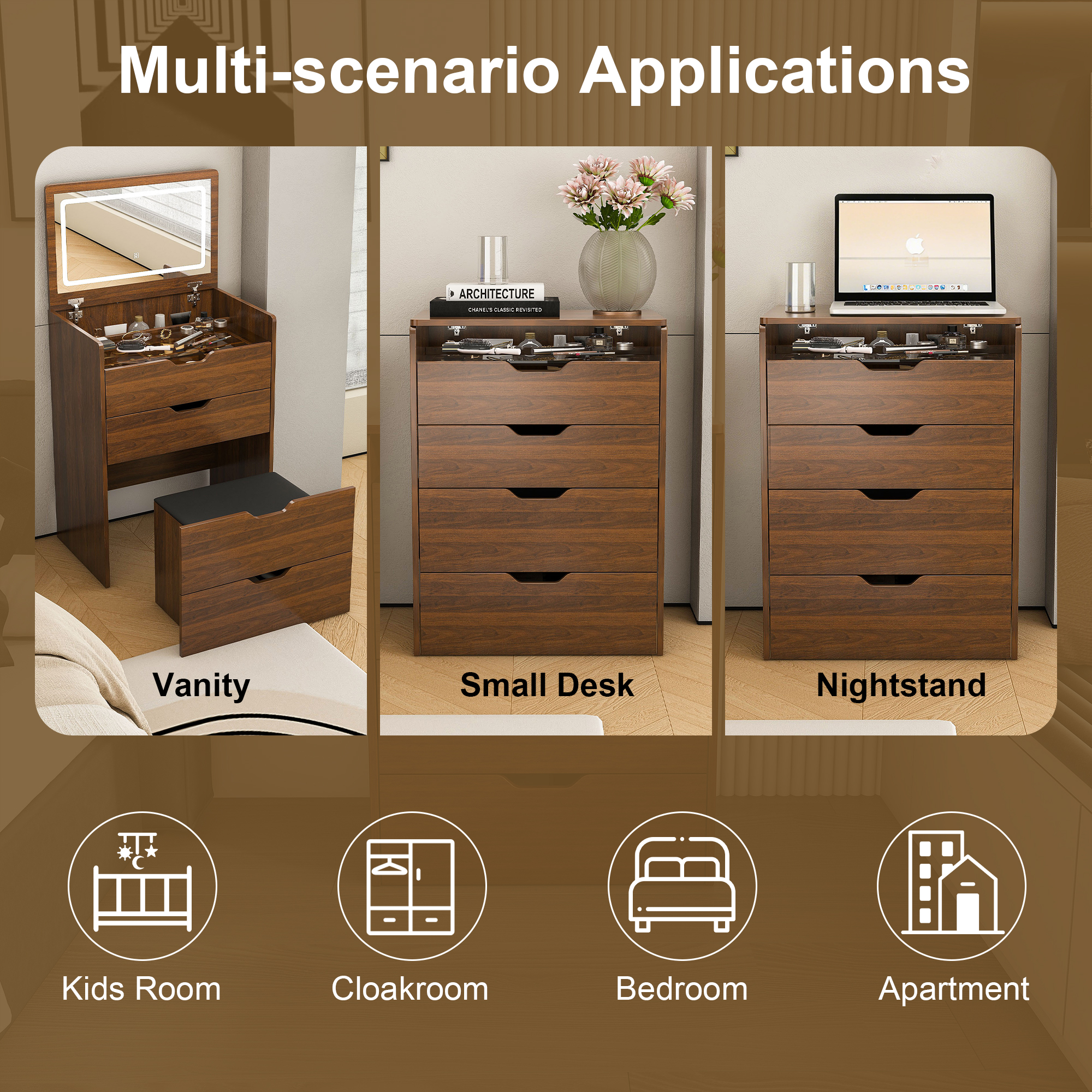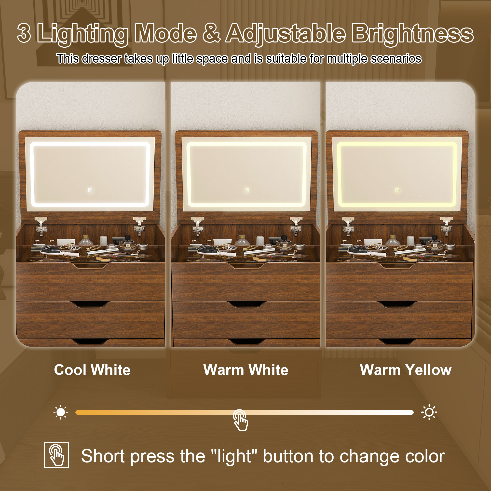 Product Name:3-in-1 Vanity Desk with Lighted Mirror & Stool, Flip Top Makeup Dressing Table, Compact Storage for Bedroom, Bathroom, Dressing Room(23.62"L, Walnut)