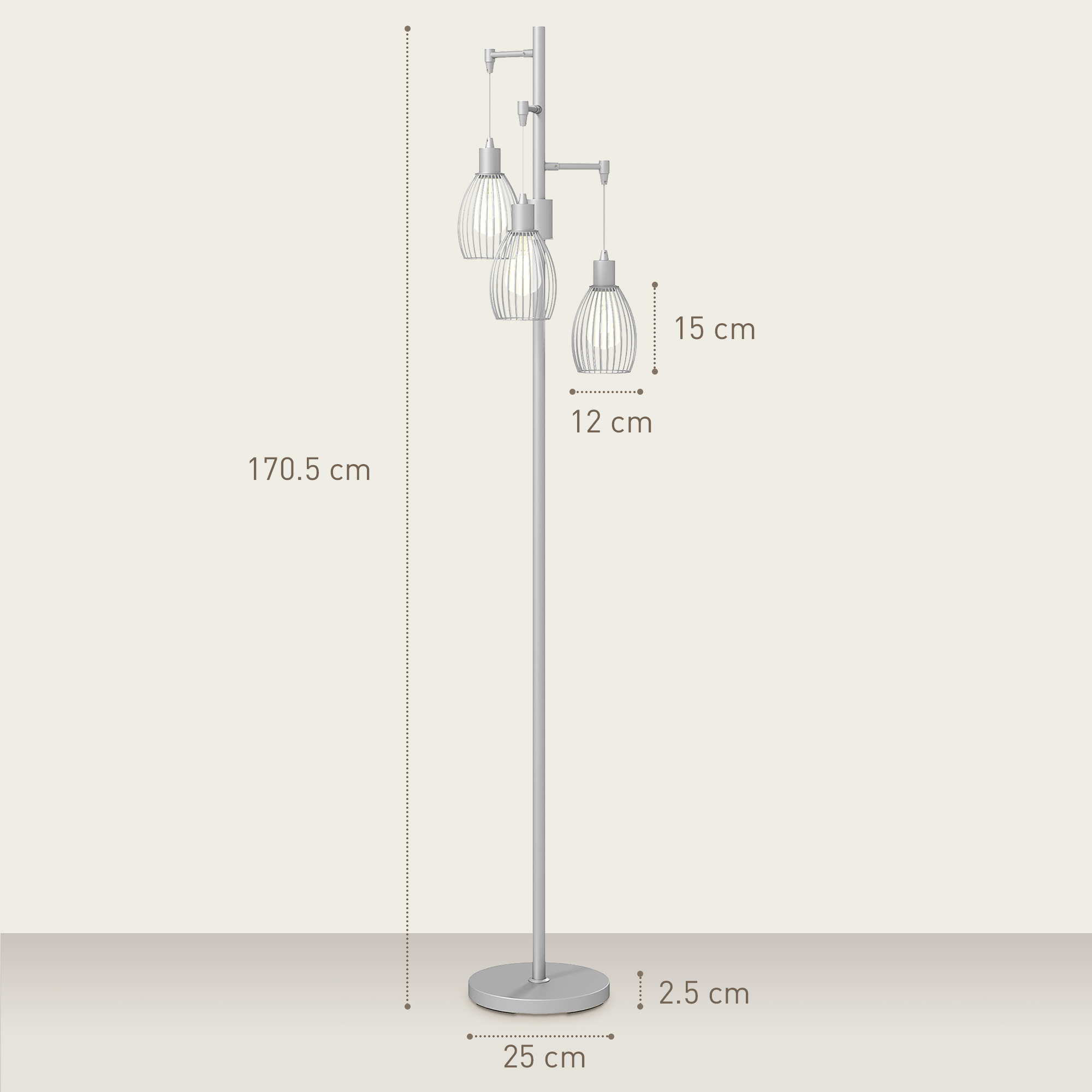 Bring industrial style into your home with this tall lamp. It features three lights for three lots of illumination - they can dim to create your own ambience. The silver tone cage shades create style. It's made from steel, so this industrial floor lamp is strong - with a round base to keep balanced. Transform your space instantly. For screw bulbs - maximum 40W.