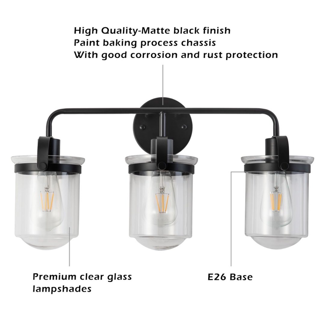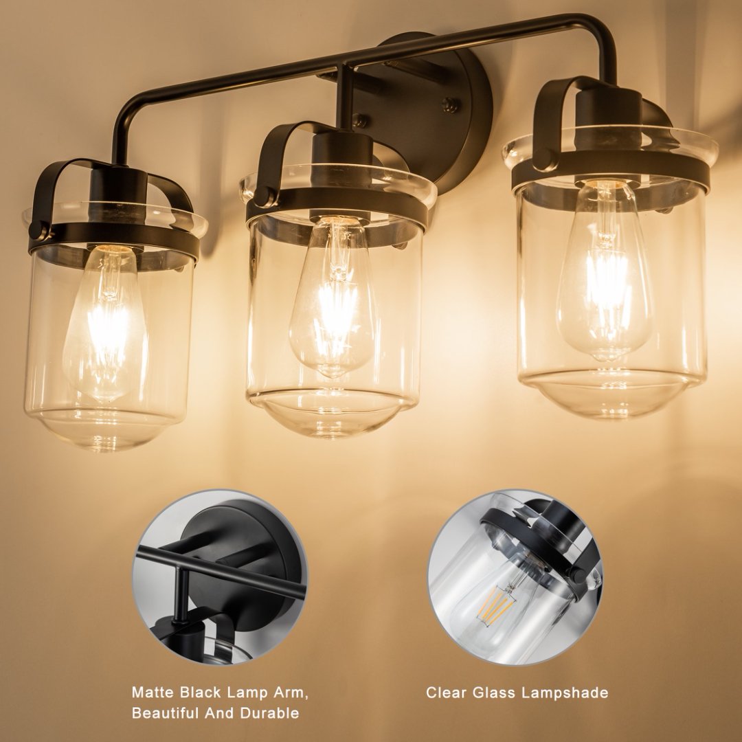 【Modern ll Light Decor】This ll sconce allow to be installed up or down, premium blacklamp holder , simple and elegant, while the premium material clear glass shade allows light to flow freely, creating a rm, room-filling glow.