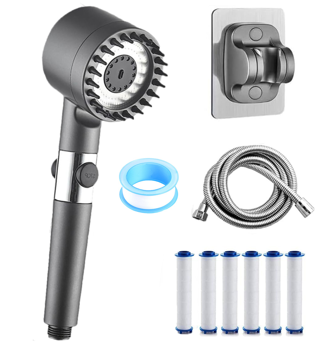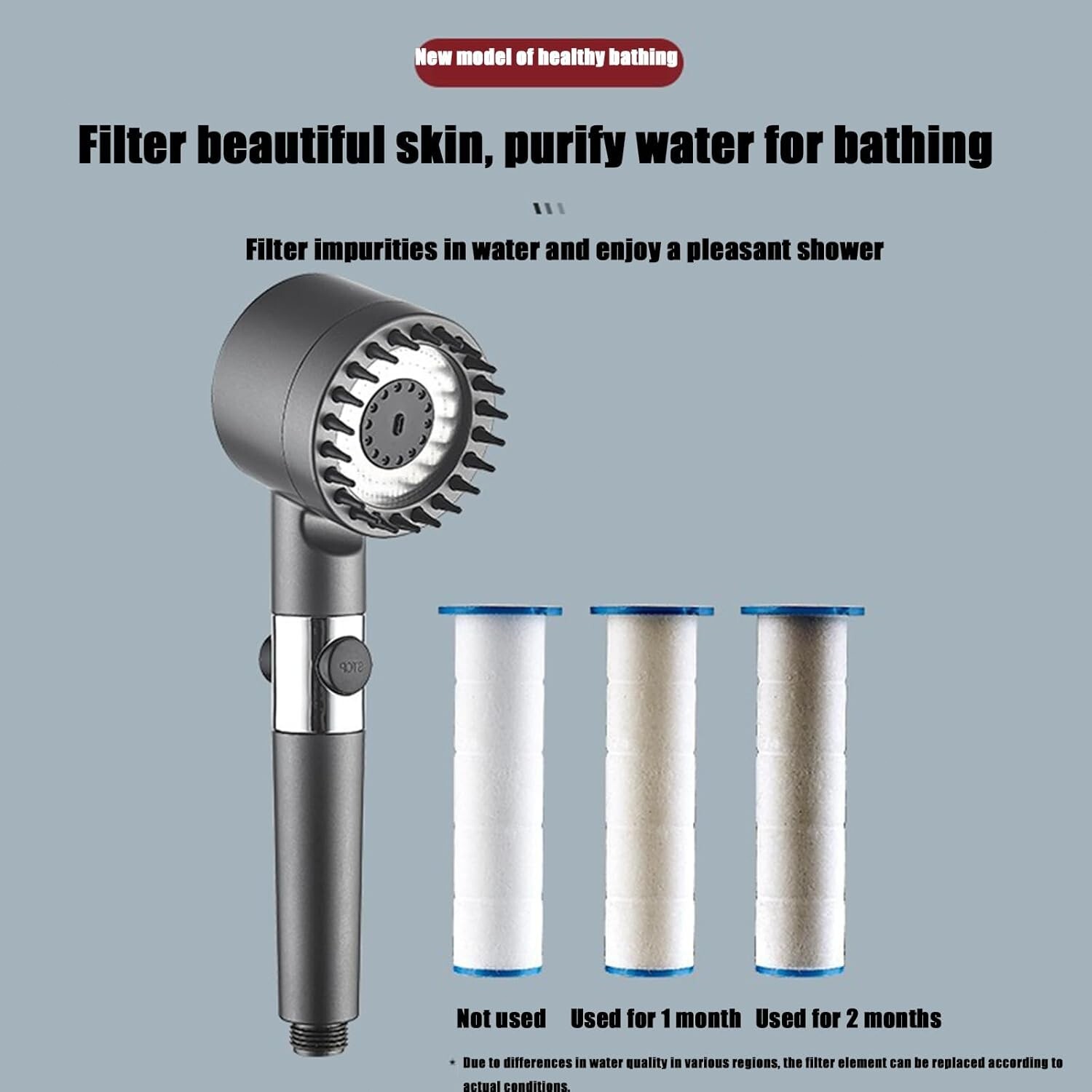 Versatile Modes: With three spray modes and scalp massage functionality, this showerhead offers a spa-like experience in your shower. Equipped with 22 massage strips and a filtration system, it purifies the skin, making it ideal for individuals of all ages including children, the elderly, pets, and general cleaning