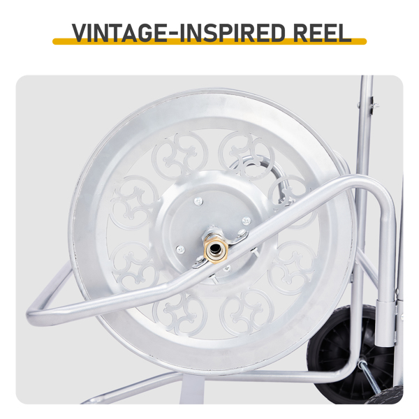 Introductions: This garden hose reel cart is suitable for gardens, garage and construction sites. Good choice for watering plant, washing car, water delivery and so on. The frame has a water and rust resistant green powder coated finish that can handle anything the weather throws at it. It is guaranteed to withstand the elements – whether rain or shine. You never have to lug heavy hoses around the yard with this hose reel cart. Don't be hesitated! Come and buy one! You won't regret it!