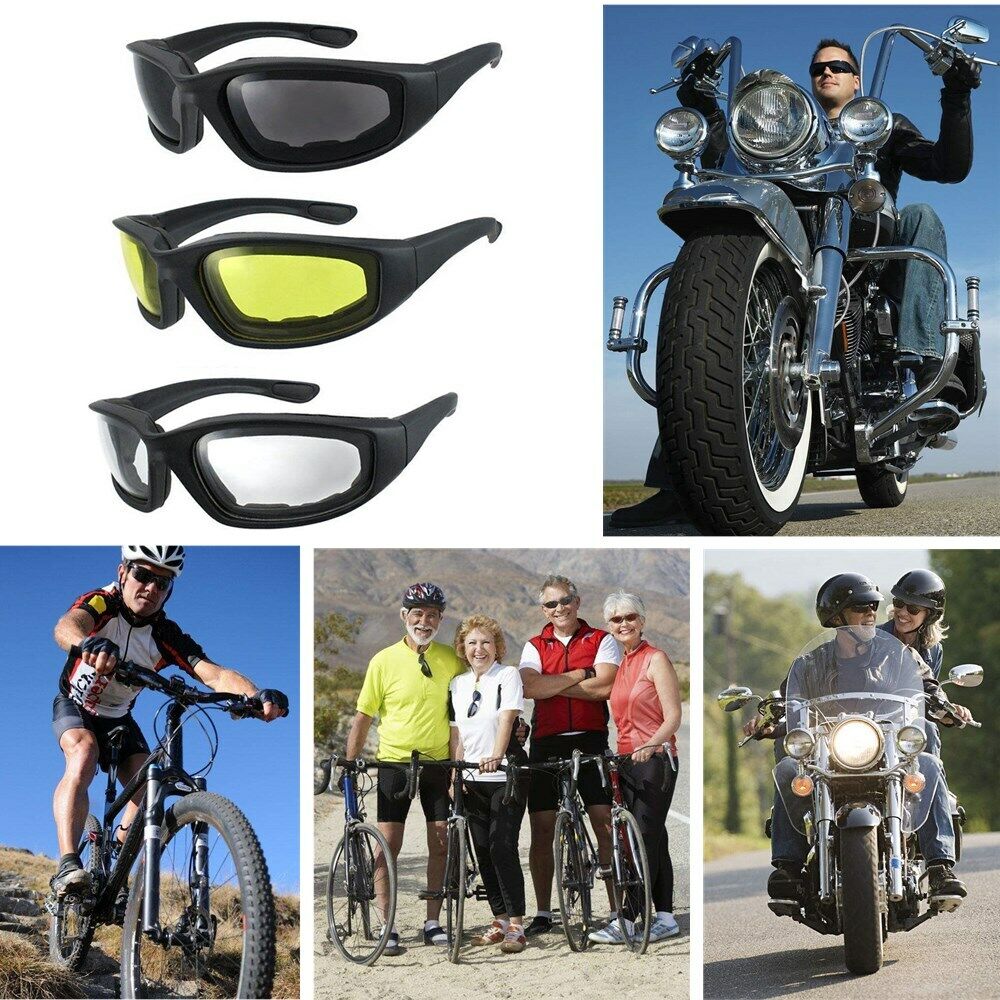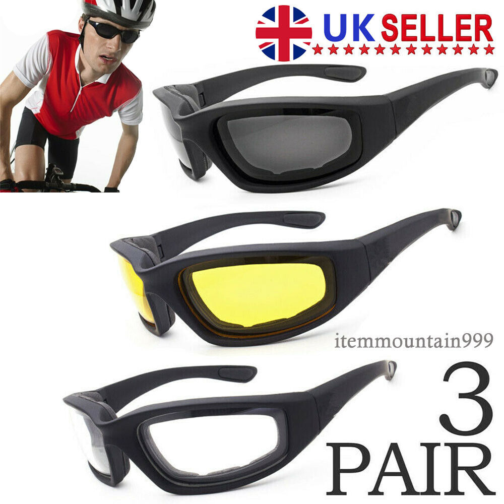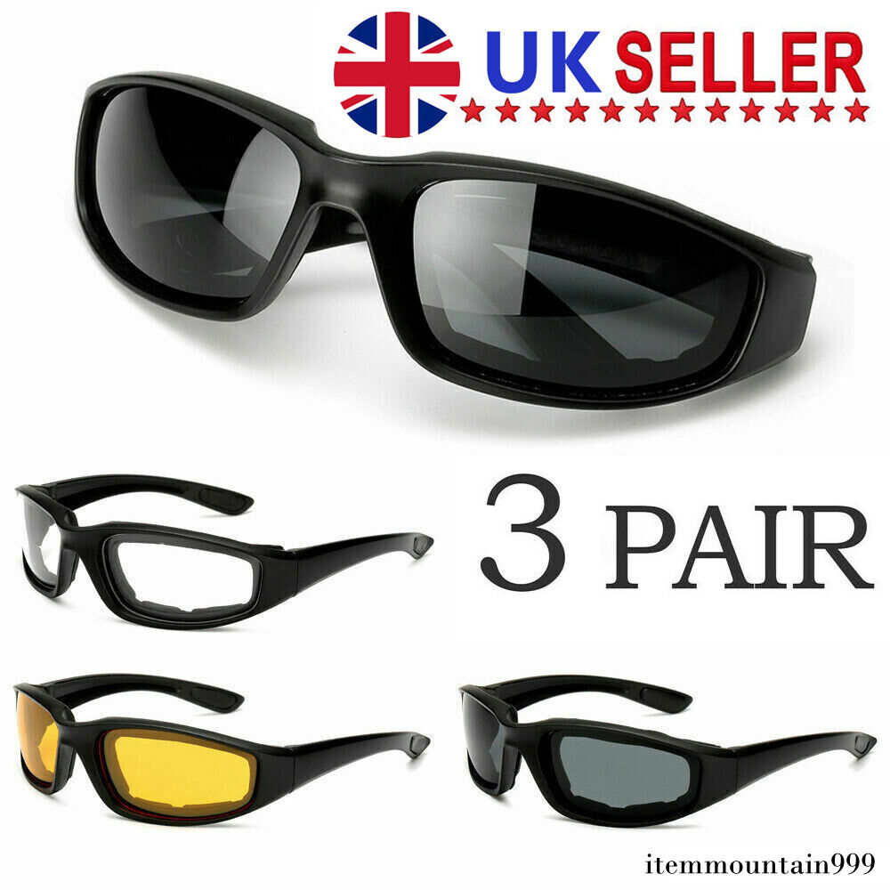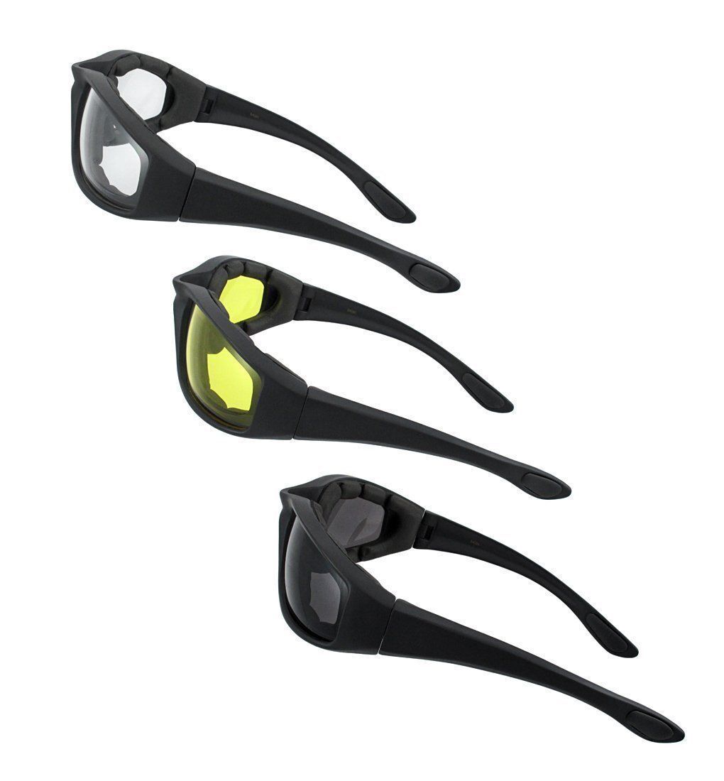 3 Pair Motorcycle Sports Padded Biker Riding Glasses Wind Resistant Sunglasses