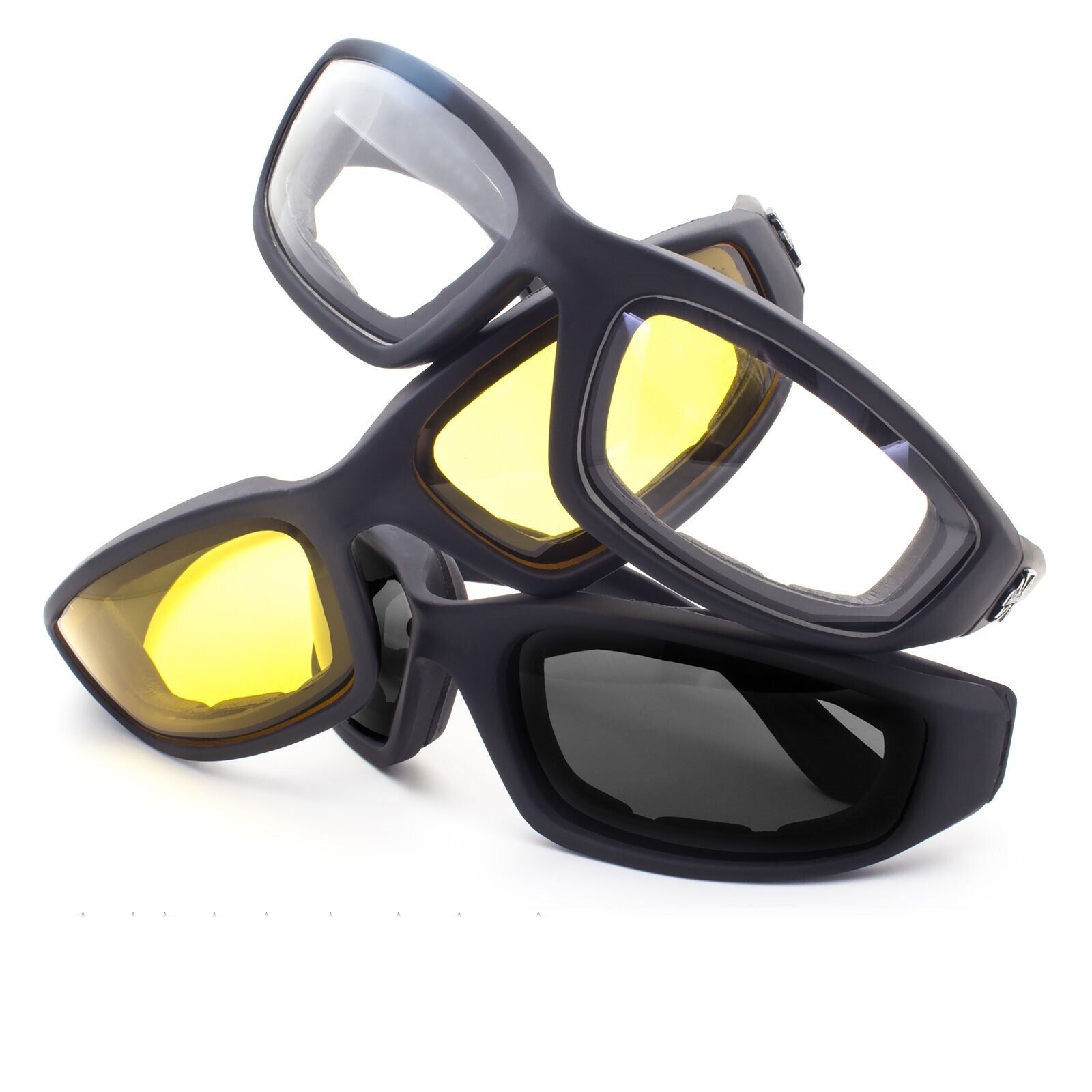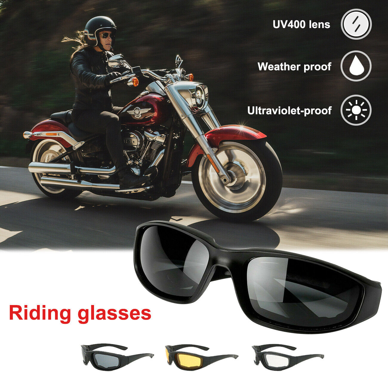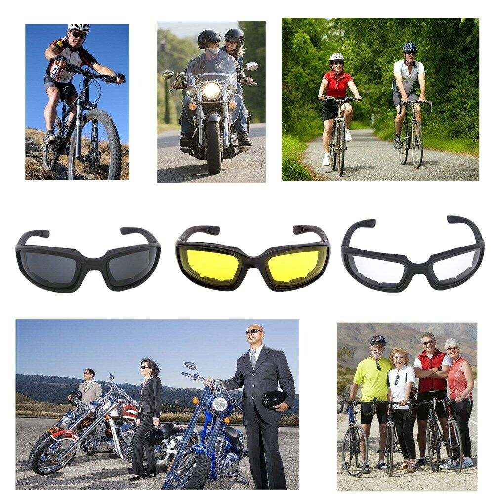 3 Pair Motorcycle Sports Padded Biker Riding Glasses Wind Resistant Sunglasses