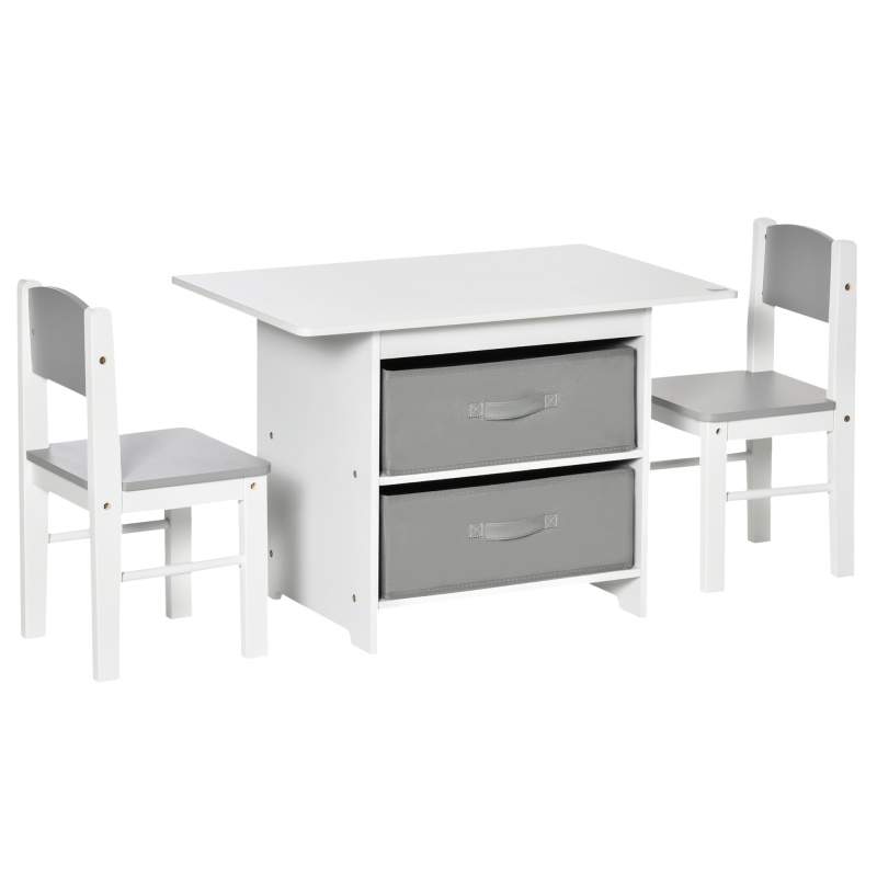 Children can eat, play and relax with this three-piece set from . The matching set of chairs is perfect for playdates, their friends and siblings. It's their own personal space, where they can keep their toys, books and snacks in the drawers, ensuring your home stays tidy. Made from MDF material, it's durable and easy to clean, maintaining good hygiene. The soft round edges helps prevent children from hurting themselves. Their own area for endless activities, thanks to this mini set.