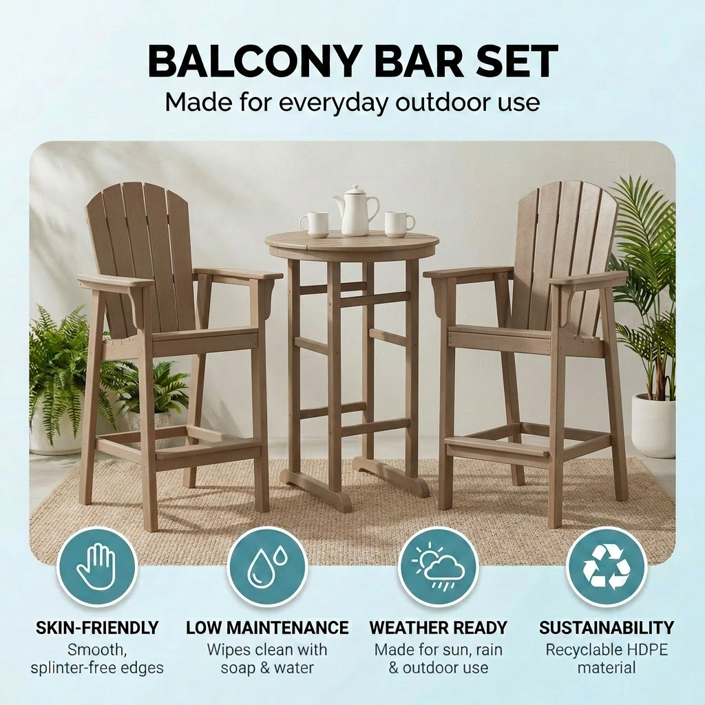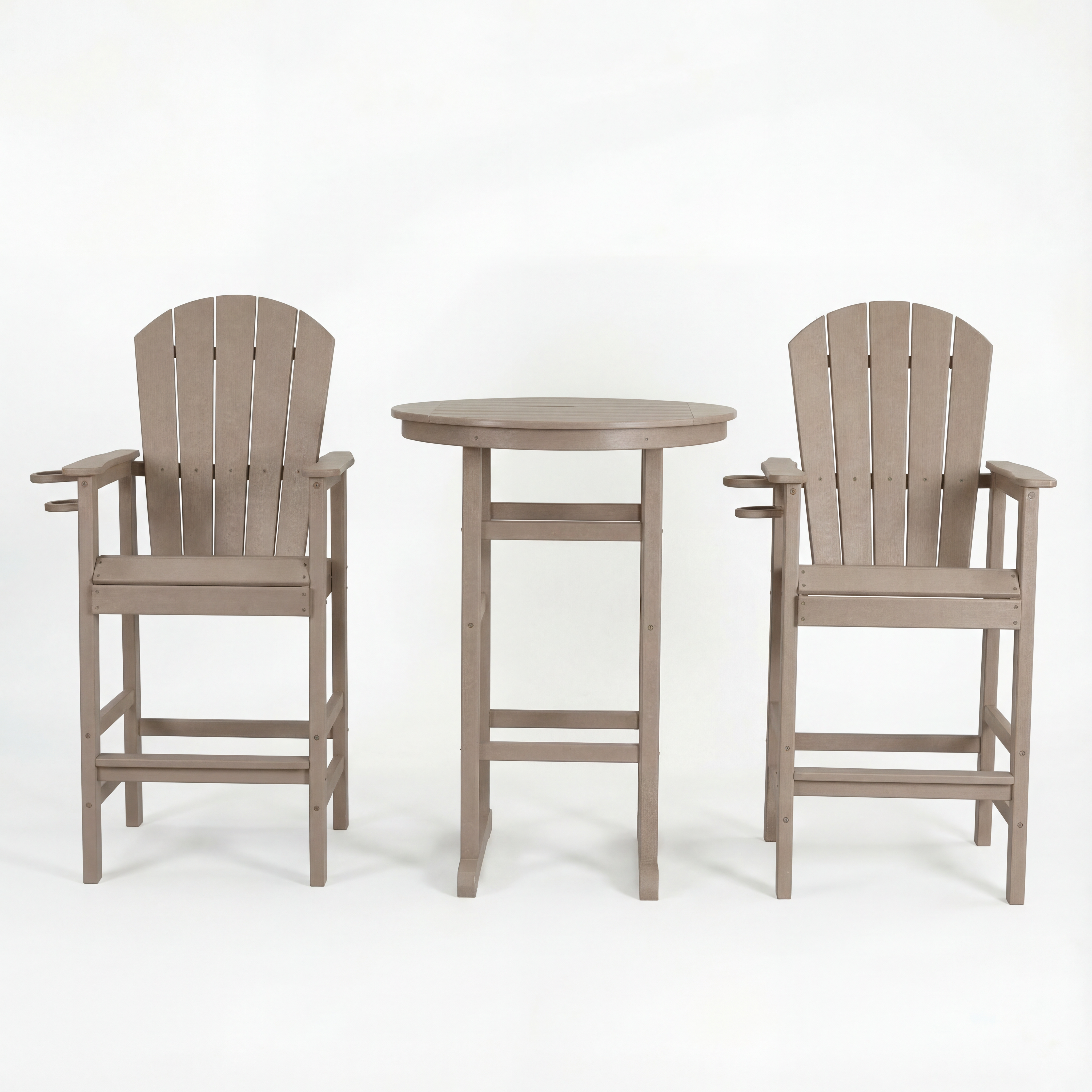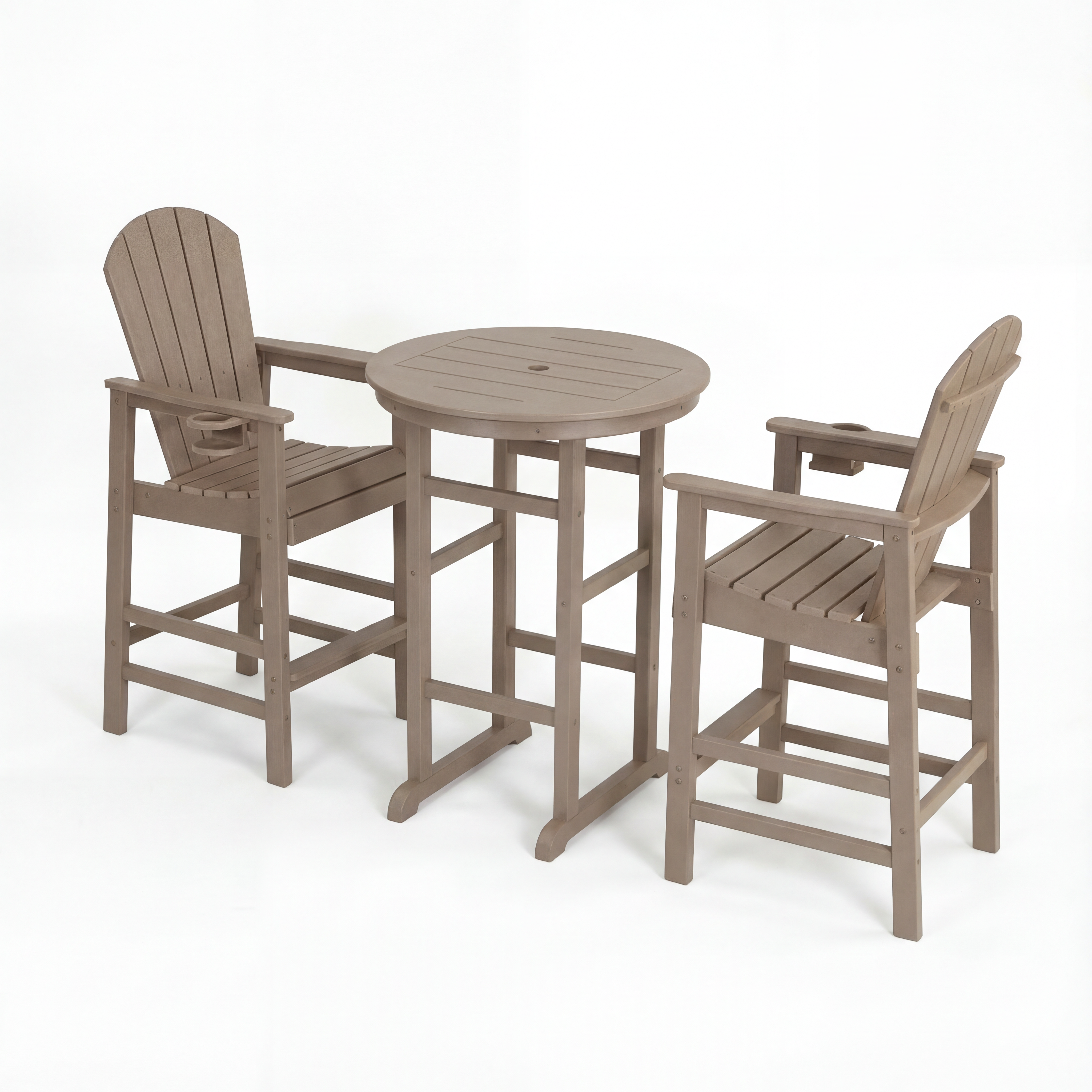 Product Name:3-Piece Antique Wood HDPE Indoor/Outdoor Bar Height Bistro Set, 31.1" Round Pub Table with 2 Bar Stools, All-Weather Patio Furniture for Balcony, Deck, Poolside & Coastal Use