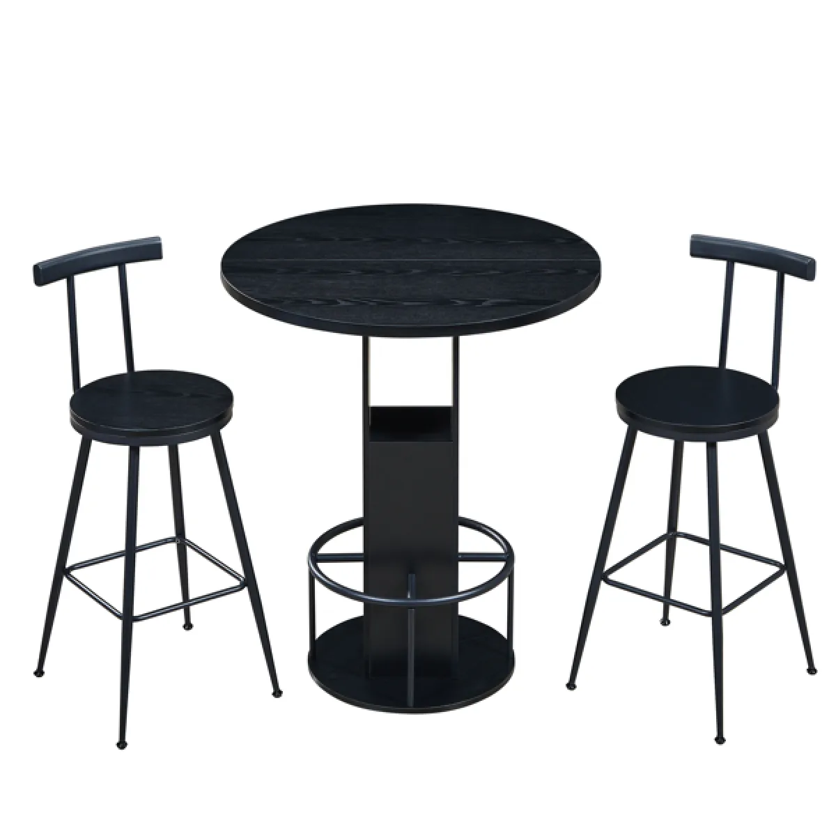 3-Piece Bar Table And Stool Set 31.5-inch Round Bar Table With Two Stools Compact Wooden Dining Bar With Metal Ring Footrest Ideal For Restaurants, Cafes, Bars, Living Rooms, And Small Spaces,Black