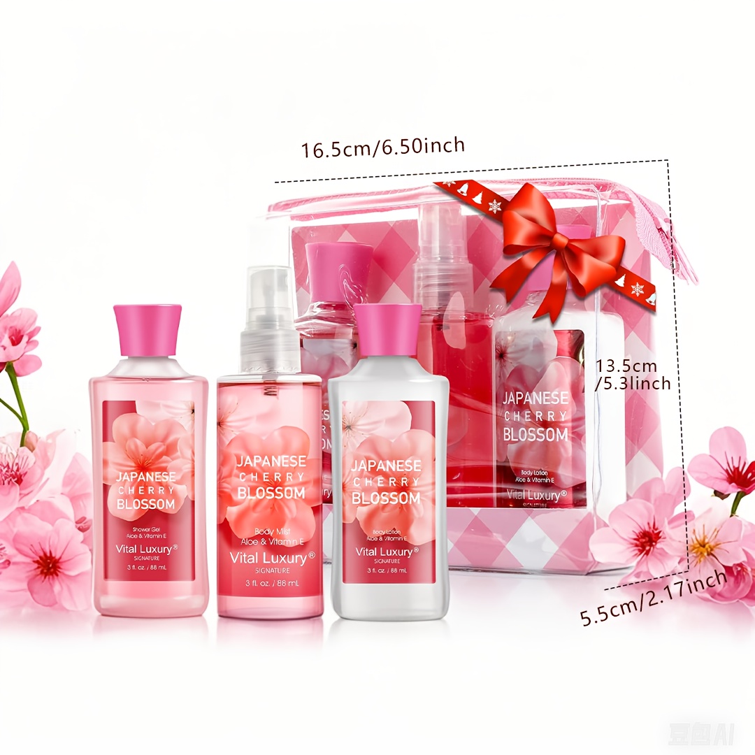 3-piece Bath & Body Care Travel Set Pea Flower Scent Home Spa Set With Body Lotion, Shower Gel And Fragrance Mist