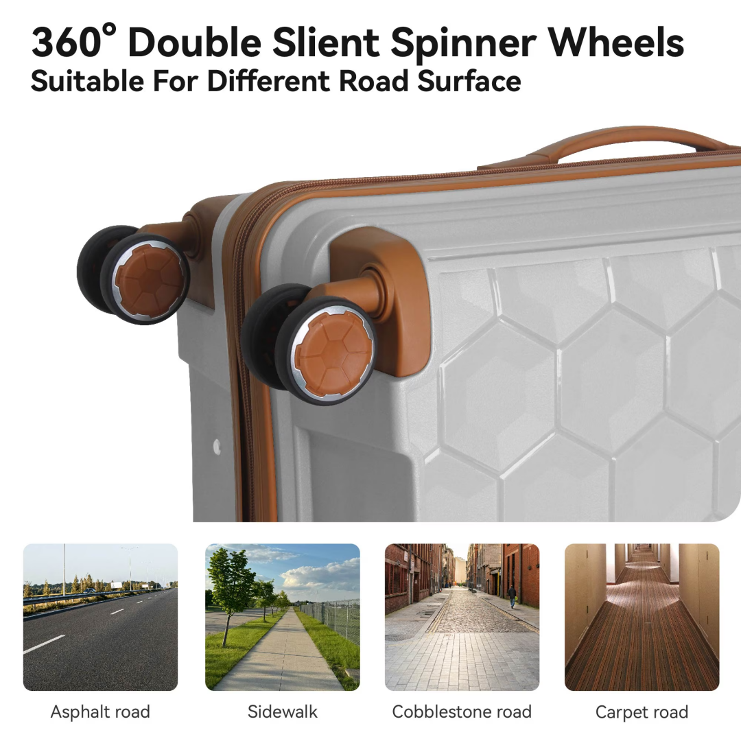 High-Quality Luggage Sets: Crafted from 100% PP materials, these hardshell suitcases are durable, lightweight, and impact-resistant, showcasing a unique honeycomb texture for added protection and style.