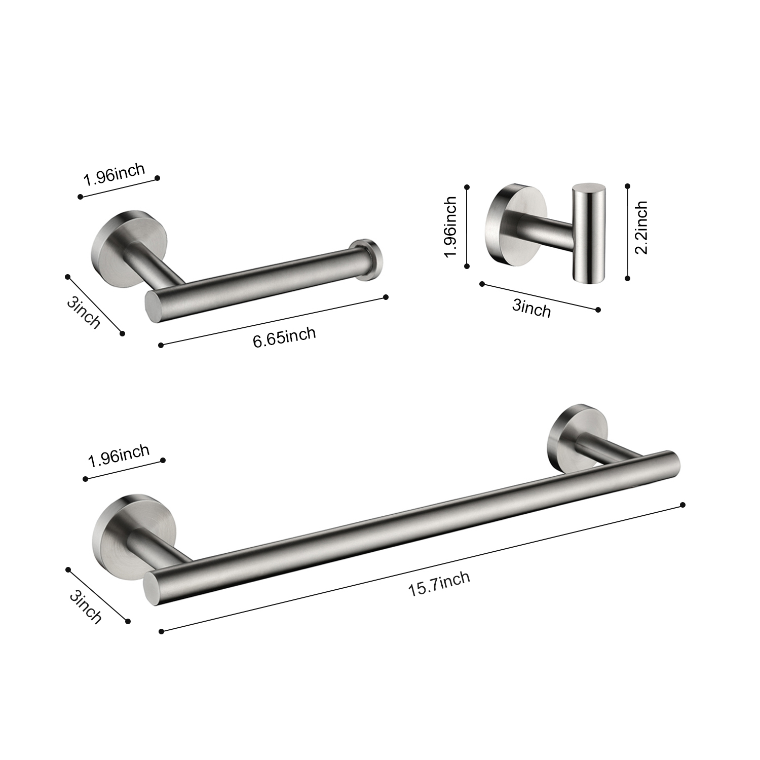 Product Name:3-Pieces Bathroom Hardware Accessories Set - Towel Bar, Toilet Paper Holder, Robe Towel Hooks