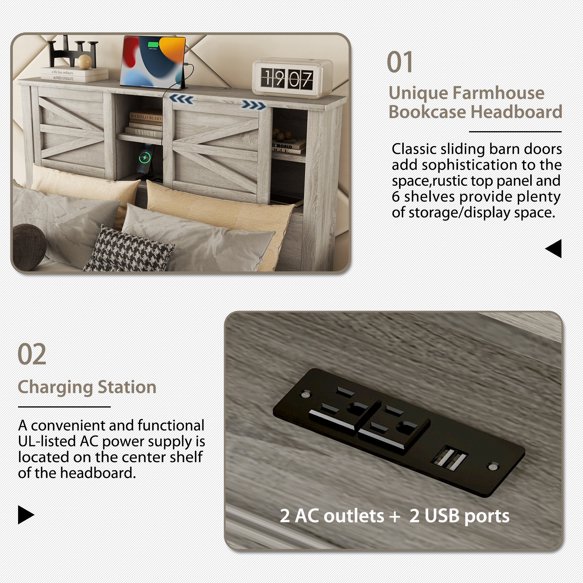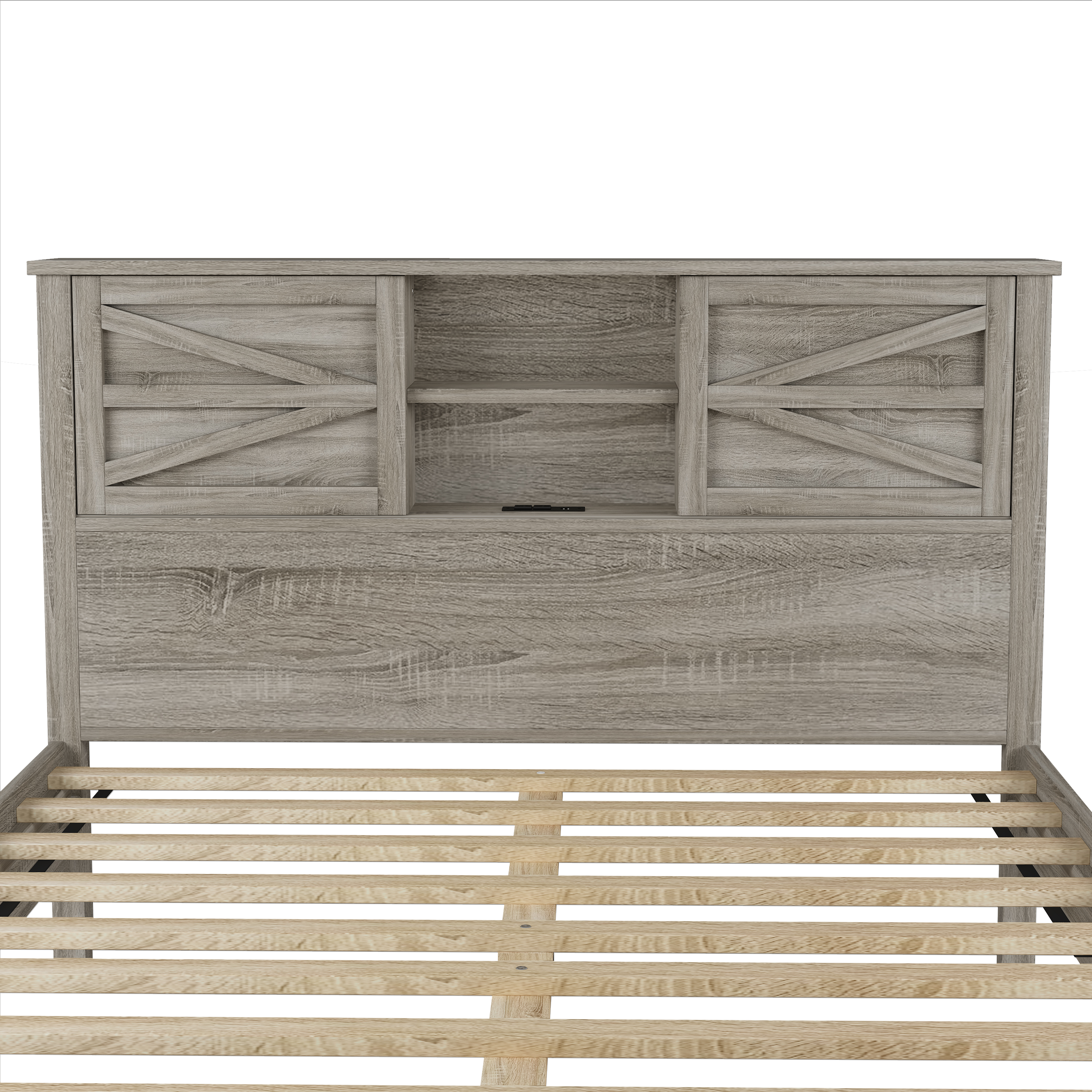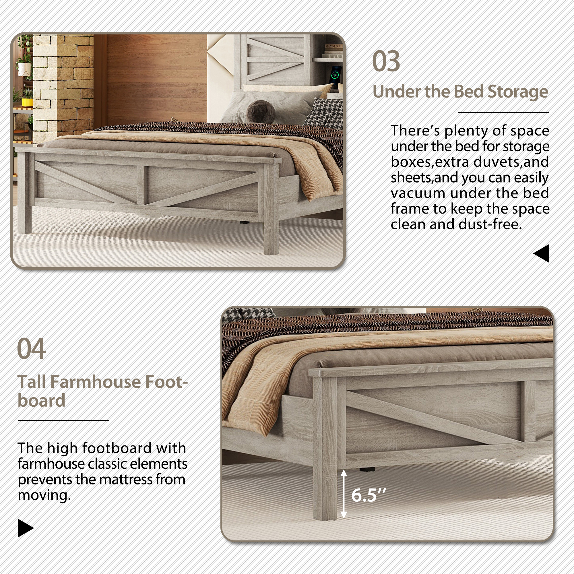 Product Name:3-Pieces Bedroom Sets Queen Size Farmhouse Platform Bed with Double Sliding Door Storage Headboard and Charging Station, Storage Nightstand and Dresser, Antique Gray