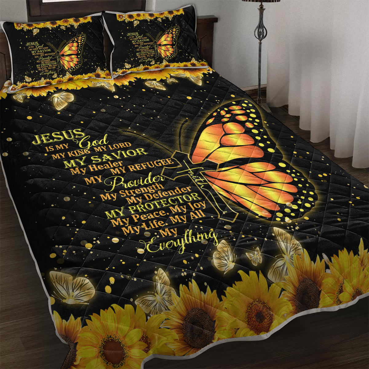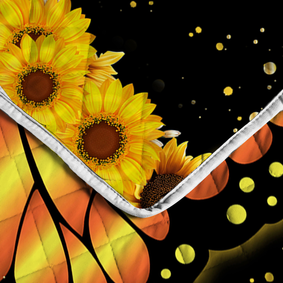3 Pieces Butterfly And Sunflower Pattern Pet Theme Quilt Set Soft And Warm Bedding Set, Including 1 Quilt And 2 Pillowcases For Home Bedroom Decoration