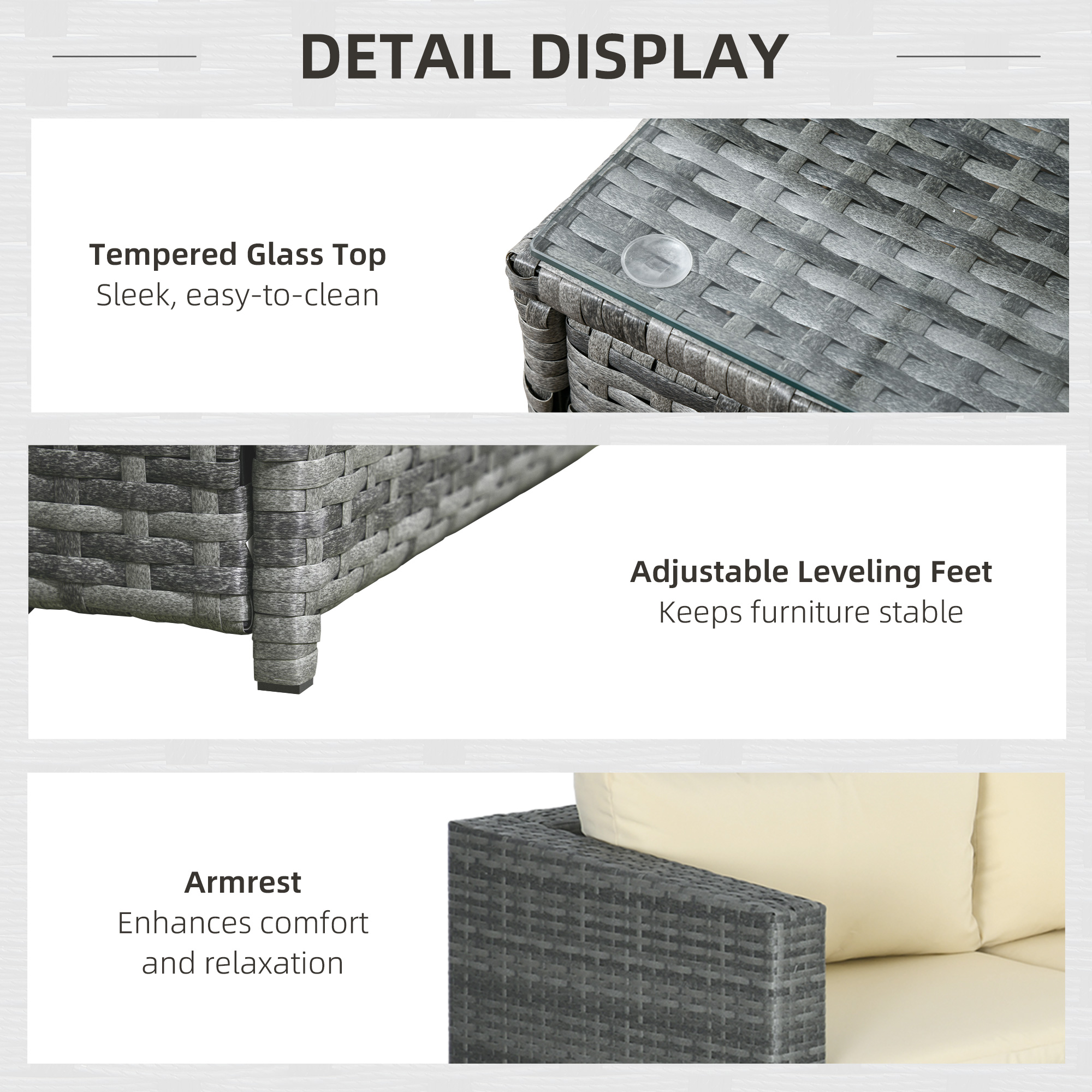 Relax in style, this season and beyond: welcome this rattan sofa set into your garden and beyond. Although suggested as a rattan corner sofa shape, you can also sort it out long ways. A metal frame for a strong core, wrapped in plastic rattan-a stylish garden look, with double the durability. This conservatory furniture set comes with two loveseats - both come with padded cushions for comfort. Complete with a glass-top table.