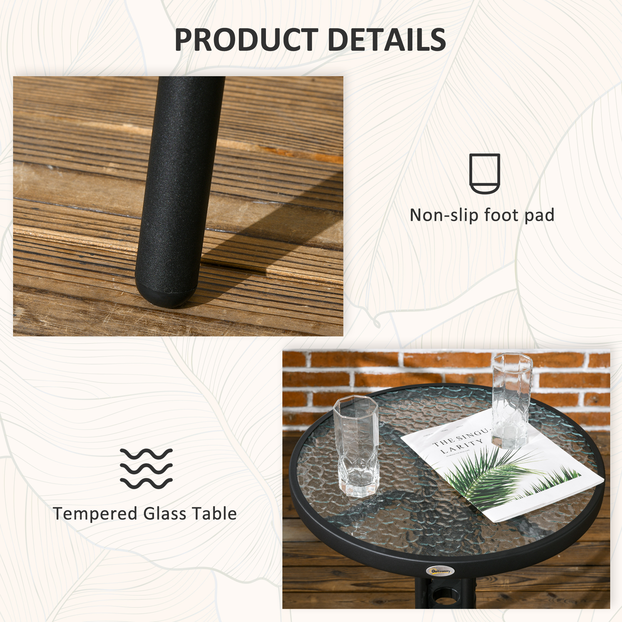 Create your personal oasis with our garden furniture set! This garden bistro set features two trendy leisure chairs and a stylish tempered glass tea table, making it great for relaxation and socializing. Each chair is adorned with a wide seat, firm backrest and armrest, providing a cosy seating experience. Elevate your outdoor space with these bistro table and chairs, adding a touch of fun and leisure to your everyday life. Experience serenity and style like never before!