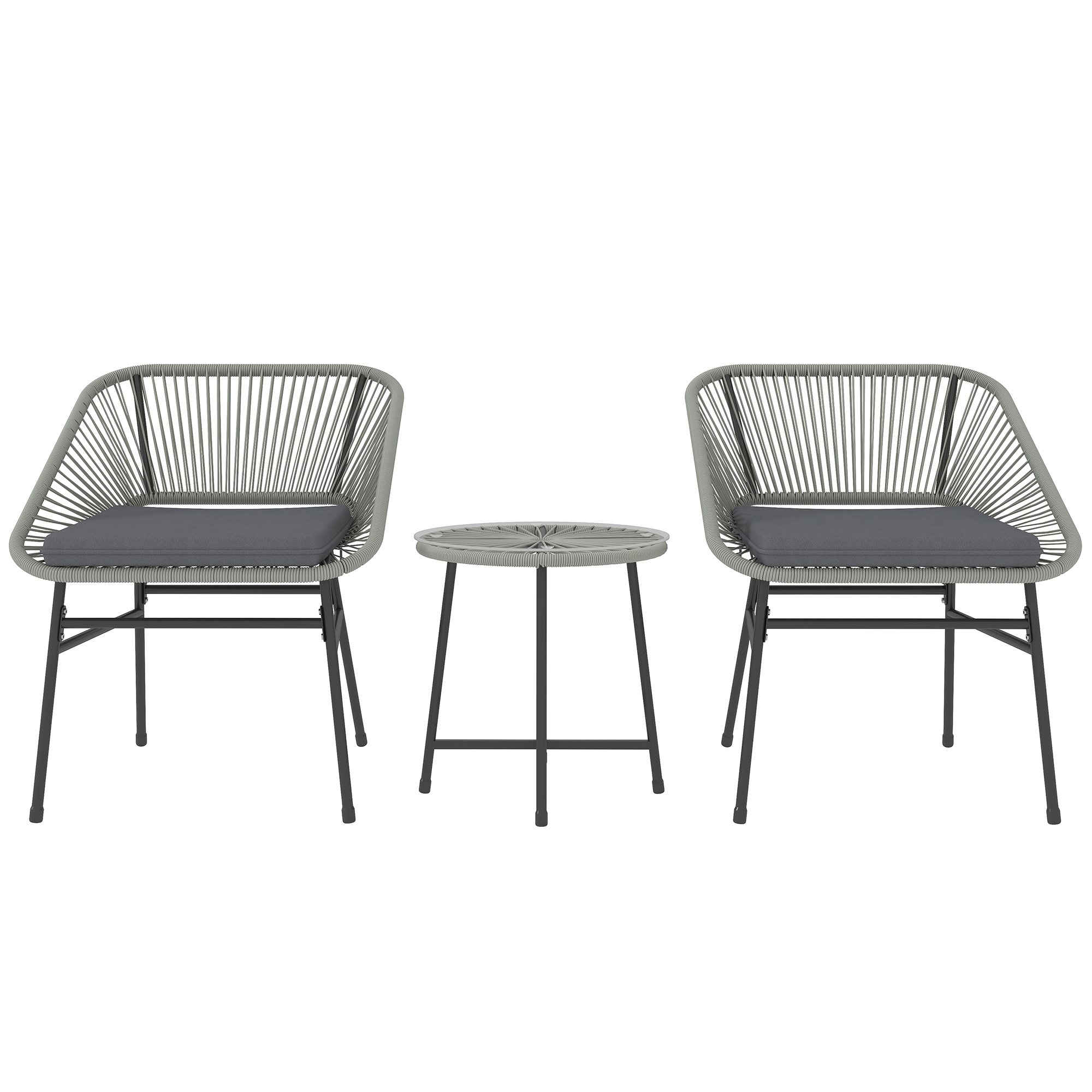 Brighten your outdoor space with the garden furniture set, a charming bistro, or a chic lounge addition for small spaces. This small balcony furniture set has two chairs and a matching glass-top table. Powder-coated steel frames offer a strong core to bistro table and chairs. Soft seat cushions make this small garden furniture a stunning and cosy corner for friend hangouts, daily talk and sunset viewing.