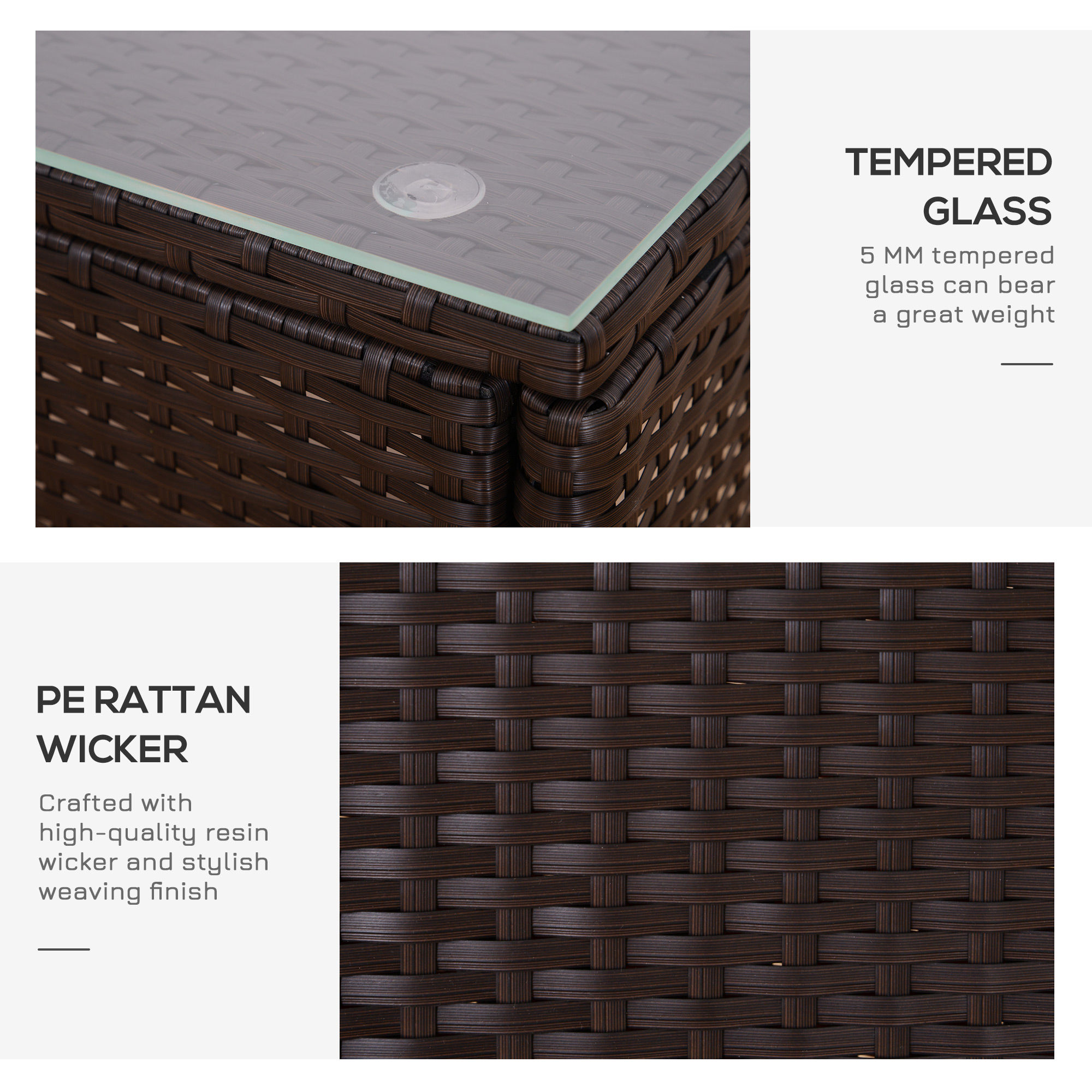 This outdoor bistro set made of PE Rattan is an ideal choice for your garden, patio or balcony. Combined with an steel frame structure and covered with rattan, this set is the optimal set to have. Comes with two seats with cushions and a table with a glass top to place drinks and magazines. The stylish modern design can fit into any style of your home and garden.