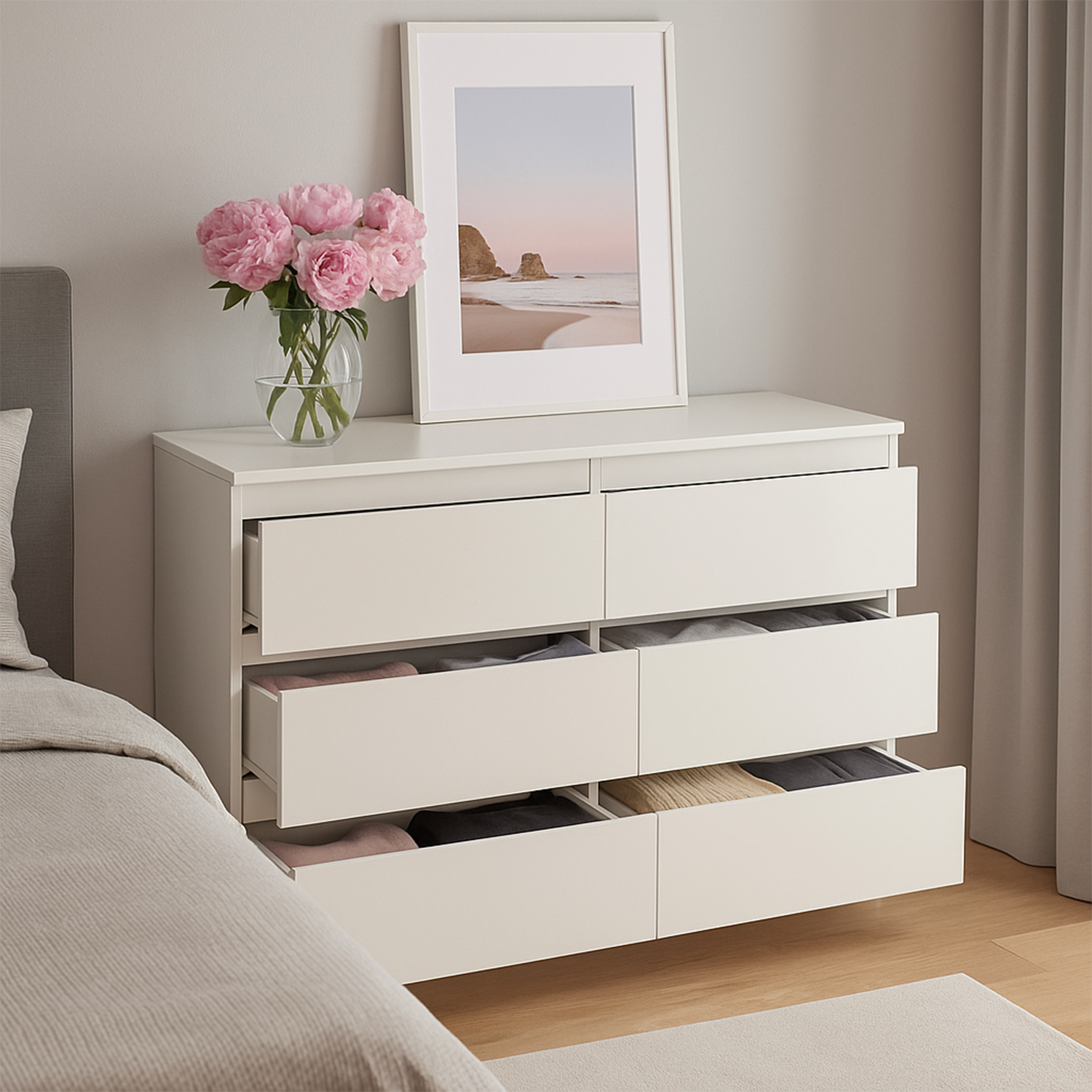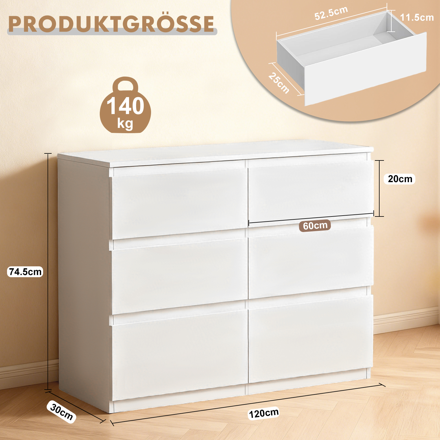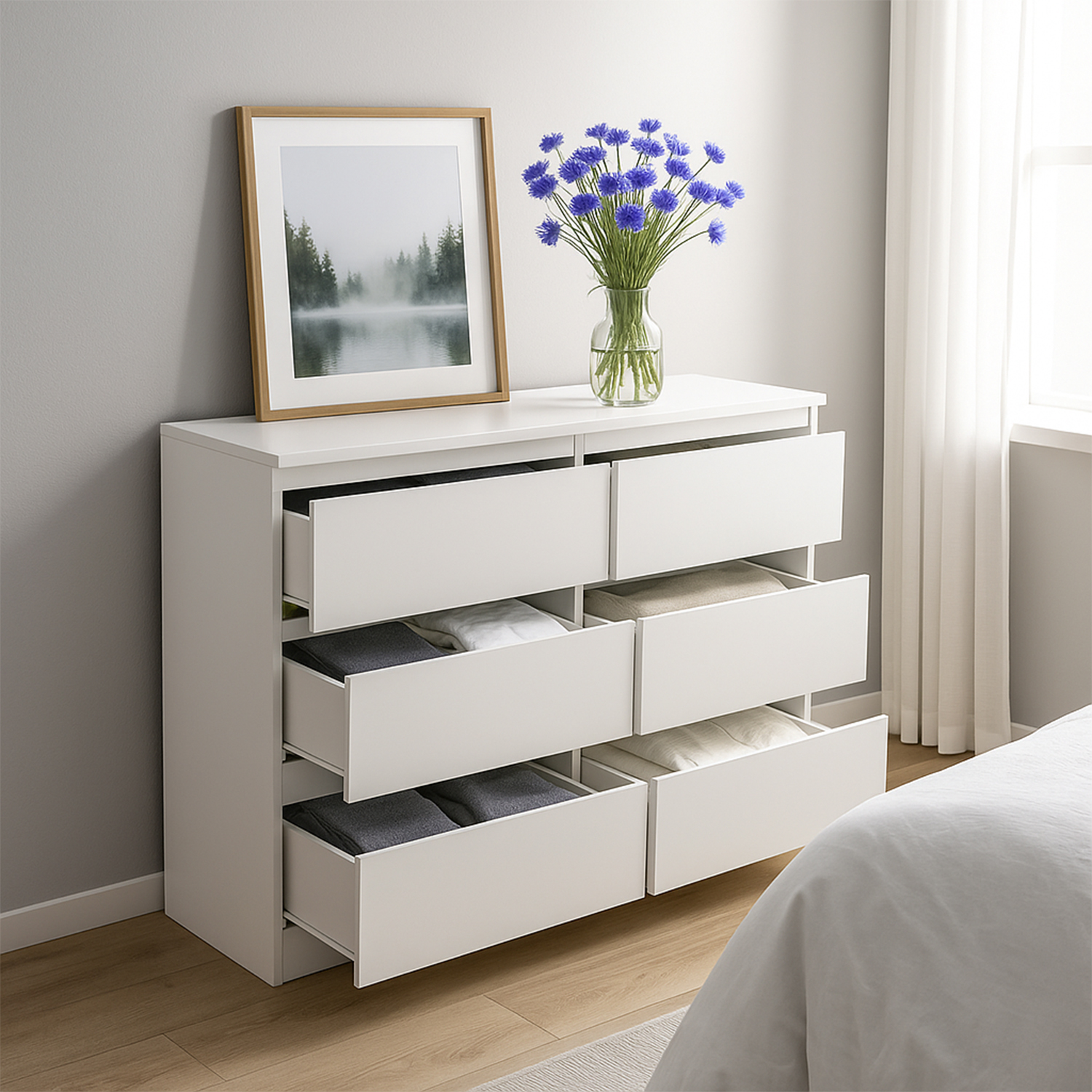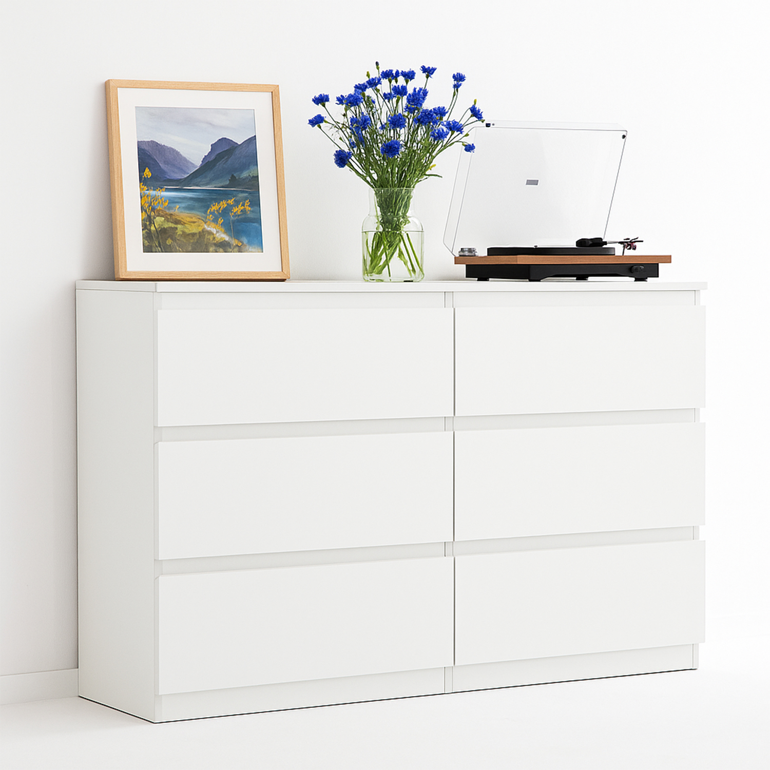 | 3-Column 6-Drawer Wooden Cabinet - 35IN White | MZG-3L6C-35IN-WT | 134 | 40 | 21.5 |