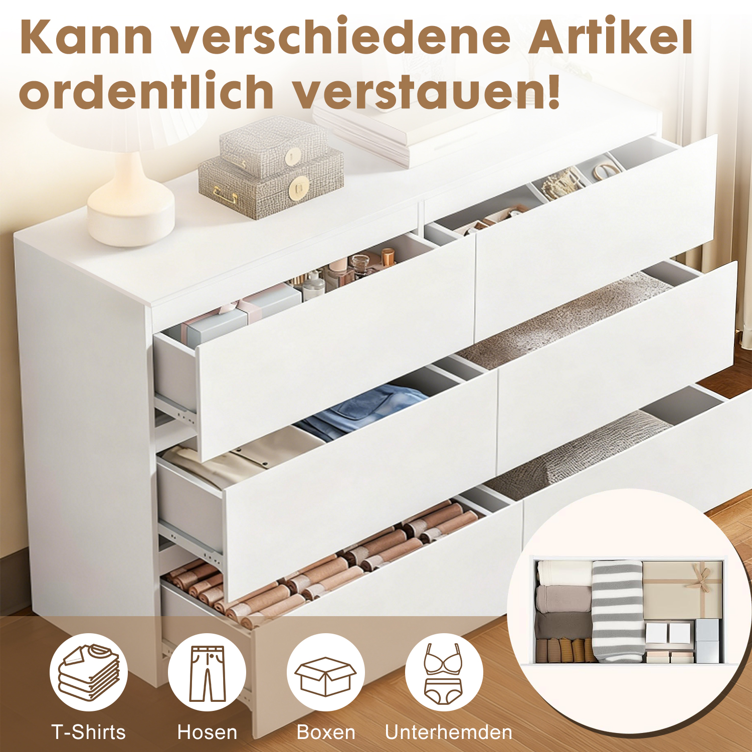 | 2-Column 6-Drawer Wooden Cabinet - 47IN White | MZG-2L6C-47IN-WT | 101 | 38.5 | 20 | 35.3 |