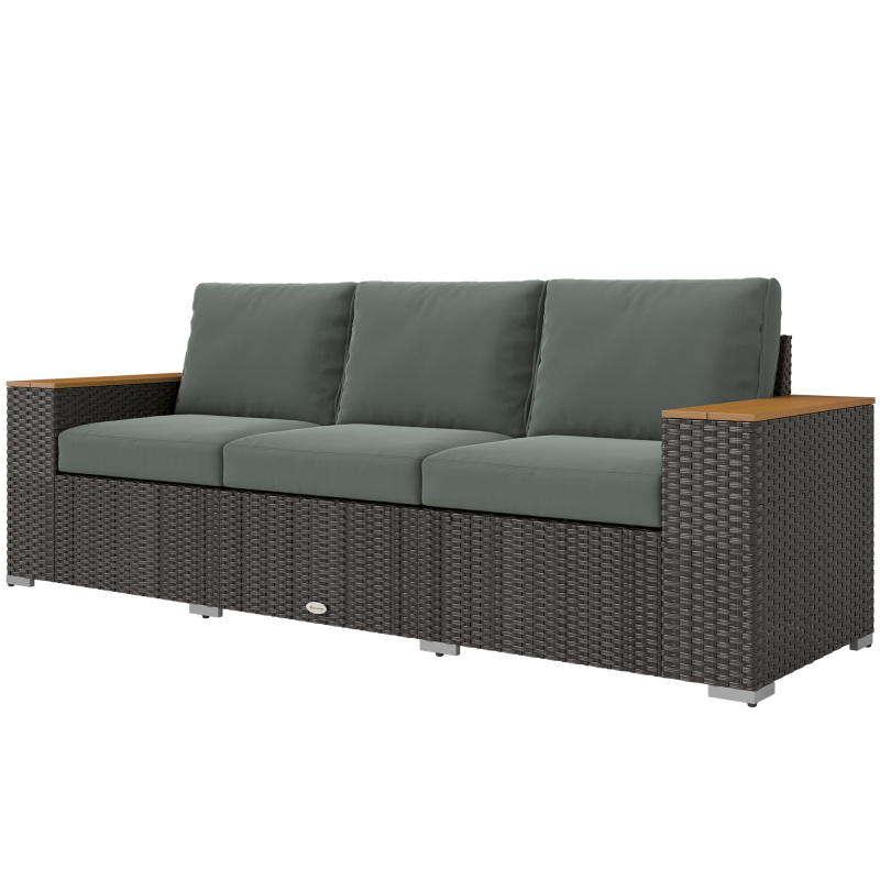 3-Seat Outdoor Patio Sofa With Cushions, PE Rattan Wicker Sofa With Wide Armrests, Outdoor Wicker Couch, Dark Gray