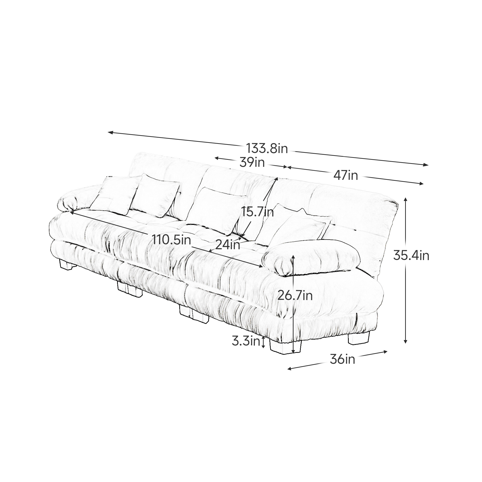 - Sitting on a cloud - The cloud look seat cushions have no spring or wood inside them, yet they offer outstanding support and elasticity for your body. The deep seat design provides additional support and ensures comfort for your waist. Moreover, the throw pillows and waist pillows are included to give you extra support as well. When you sit on it, you can immediately feel how well the dorm couch backrest fits and supports your body, allowing you to enjoy an unparalleled level of comfort.