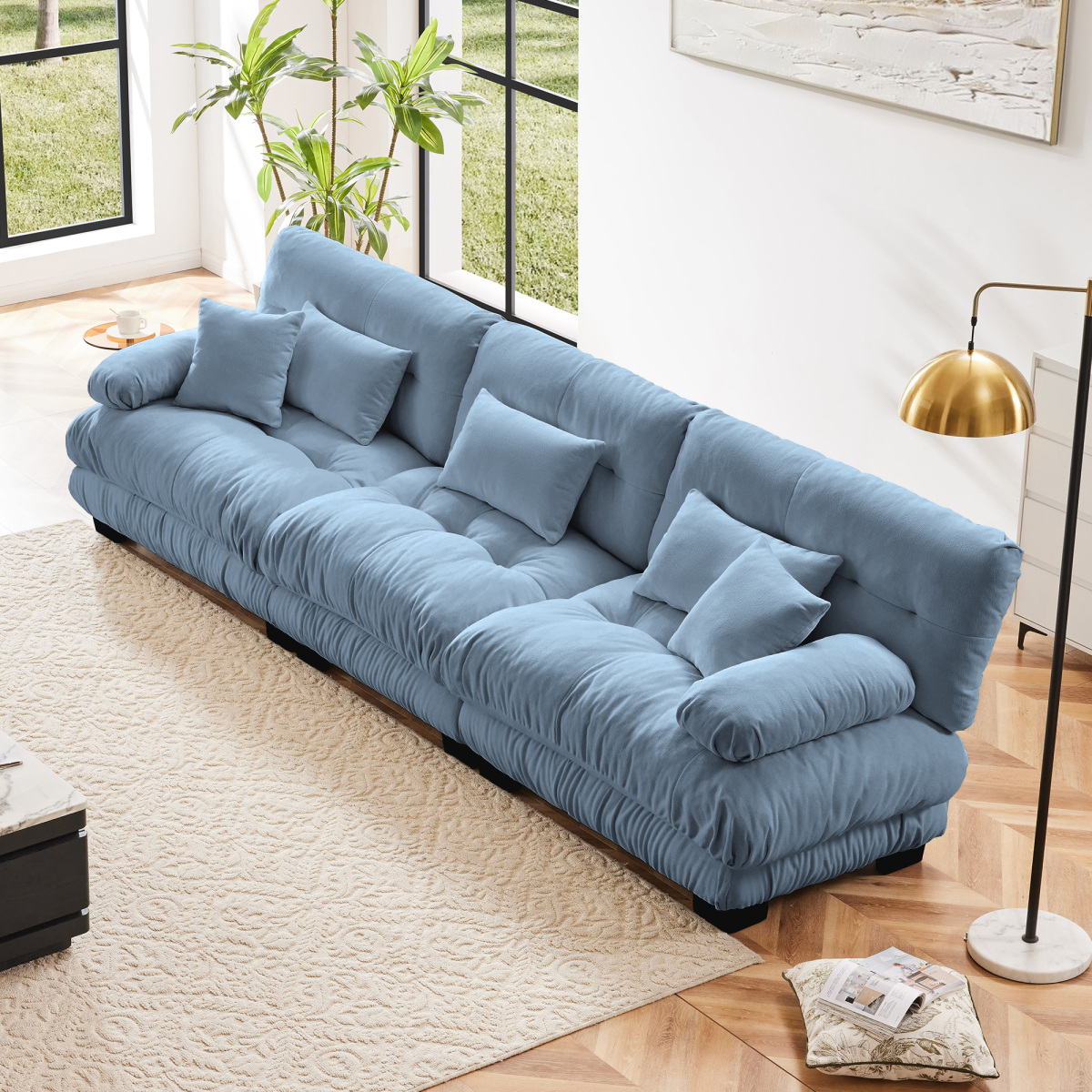 Product Name:3-Seater Sectional Sofa Modular Deep Seat Sofa Couch , Chenille Sofa Soft Comfy Upholstered Furniture for Living Room, Apartment, Studio, Office,Chenille Blue