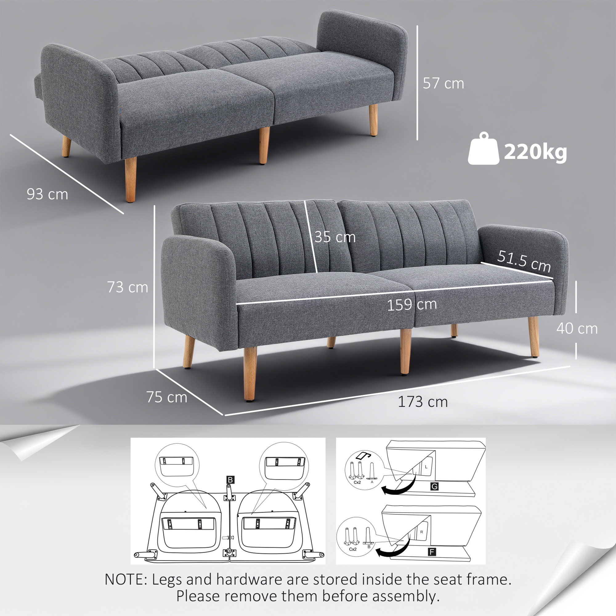 Cuddle up in comfort, on a place you can also rest easy at night - look to this sofa bed. Thick sponge padding keeps you comfortable when both sitting and sleeping. The back, which is split into two individual sections, can be set to three different positions - allows each person to relax back to a position they want. Comes complete with six wooden legs which offer strong support.