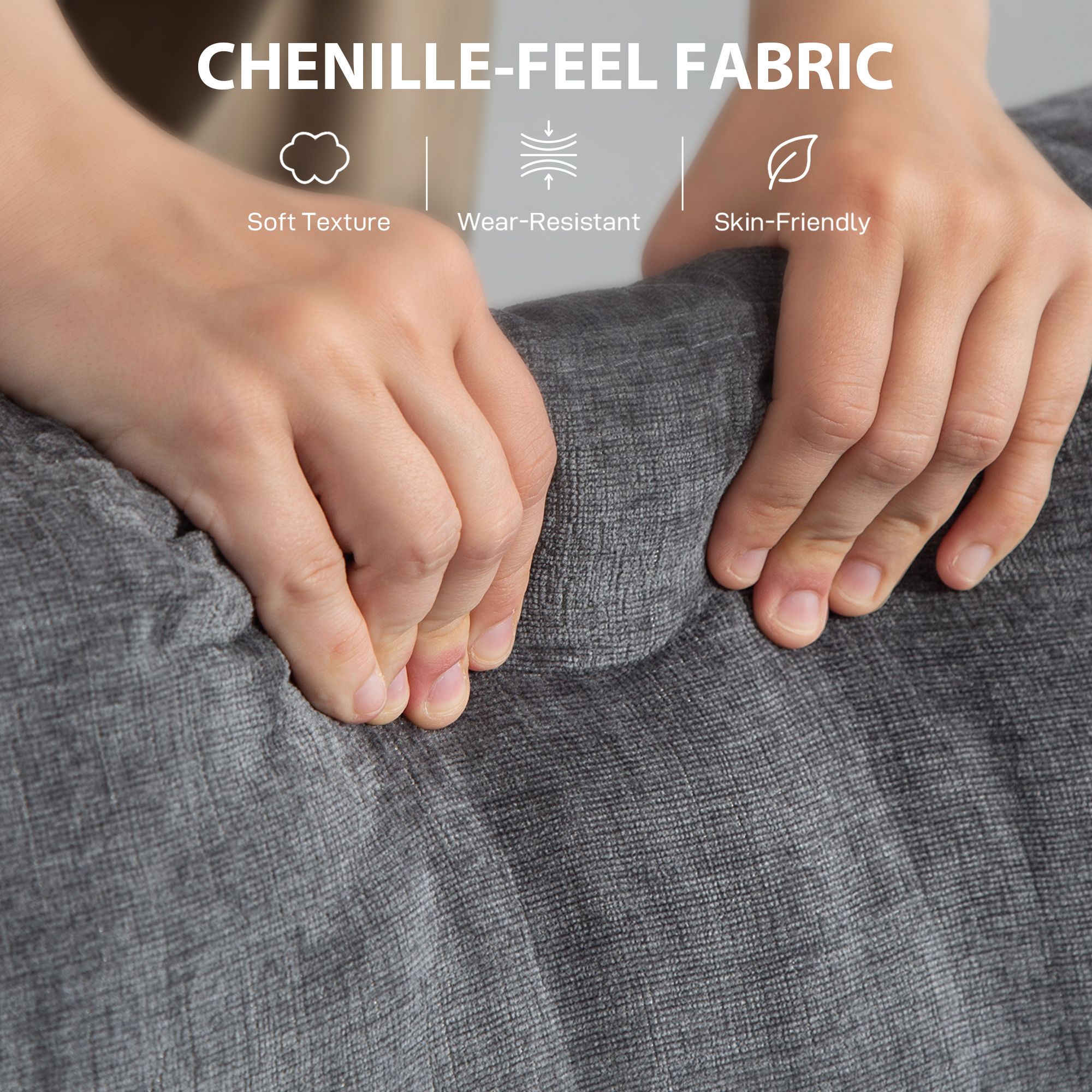 Discover the comfort of the three seater sofa, where convenience meets cosiness. Featuring built-in USB ports to keep your devices charged and dual cupholders for your favourite beverages, all wrapped in a soft, luxurious chenille-feel fabric. Kick back on plush cushions and enjoy the support of a robust steel frame in your living room. The fabric sofa for relaxation and style!