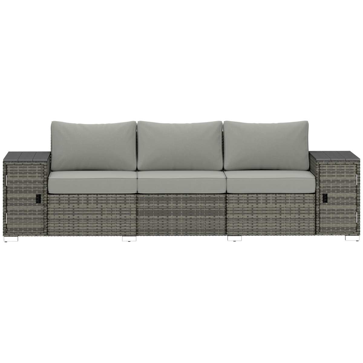 3 Seater Wicker Outdoor Couch Patio Sofa With Storage, Thickened Cushions And Wide Armrests For Porch Yard, Gray