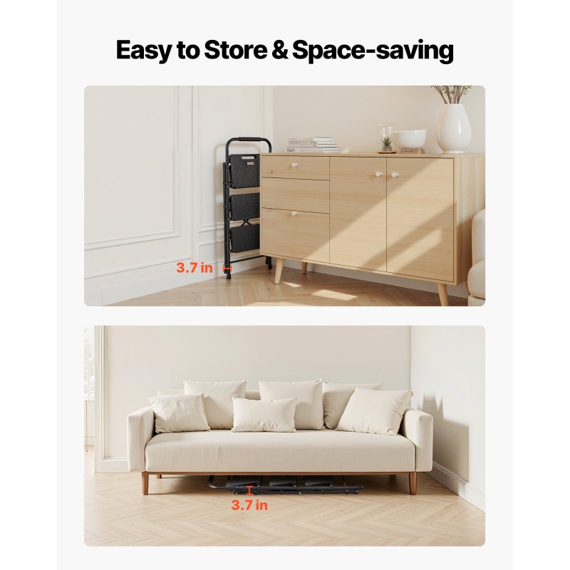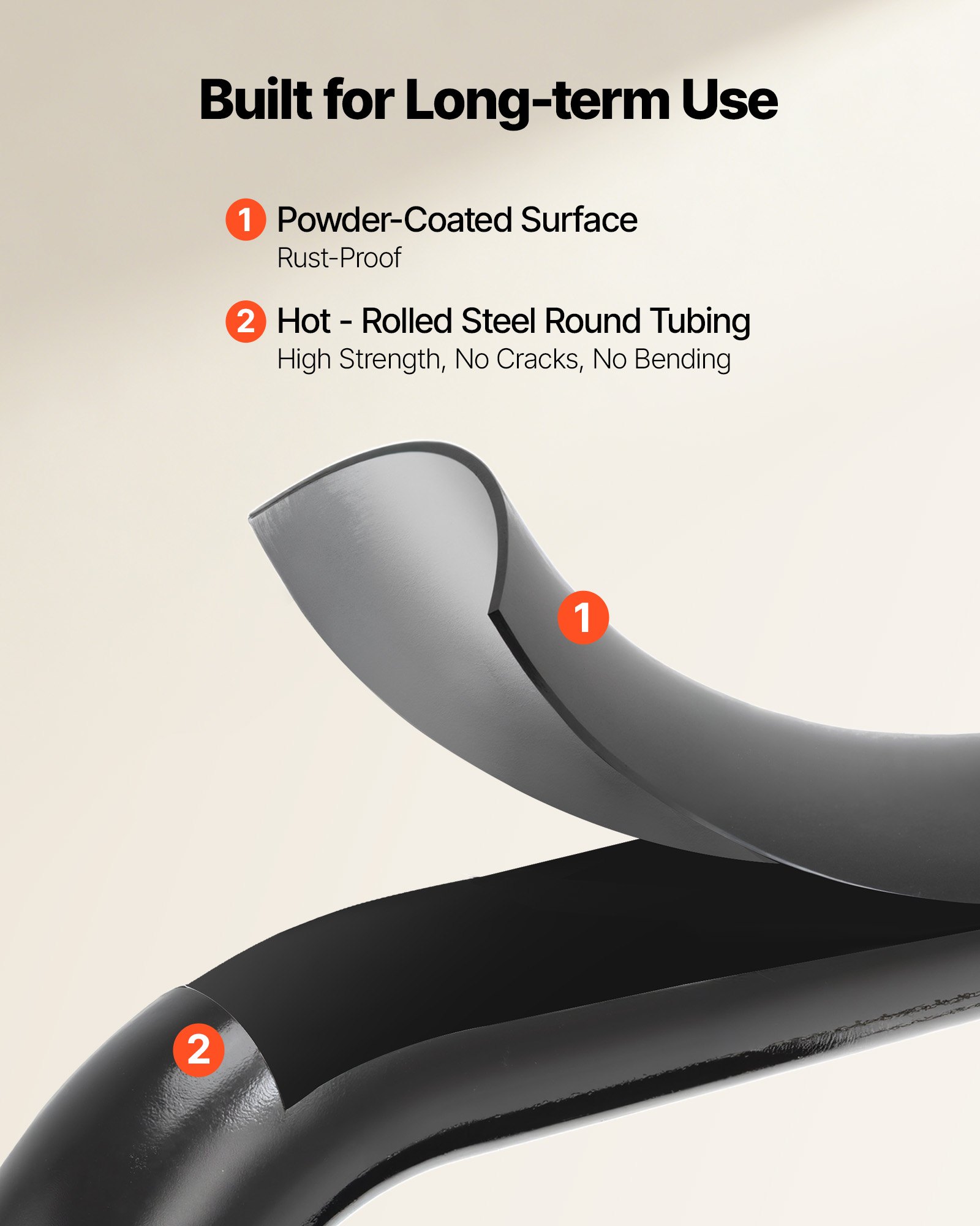600 lbs Load Capacity: Built from 1-mm thick hot-rolled steel round tubing and finished with rust- and damp-resistant powder coating, the folding step ladder delivers rock-solid 600 lbs max. support, lasting bend resistance and stability over time