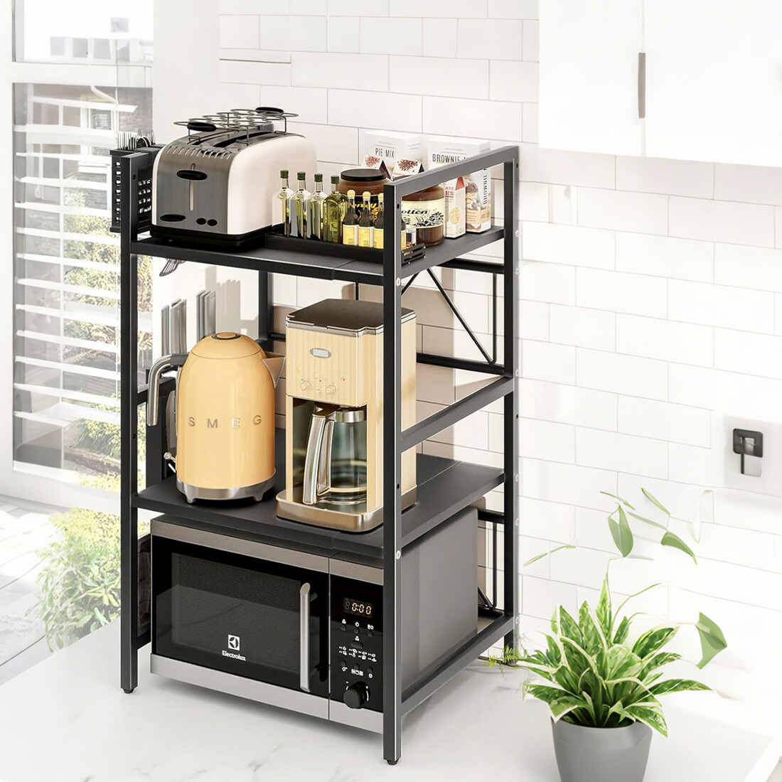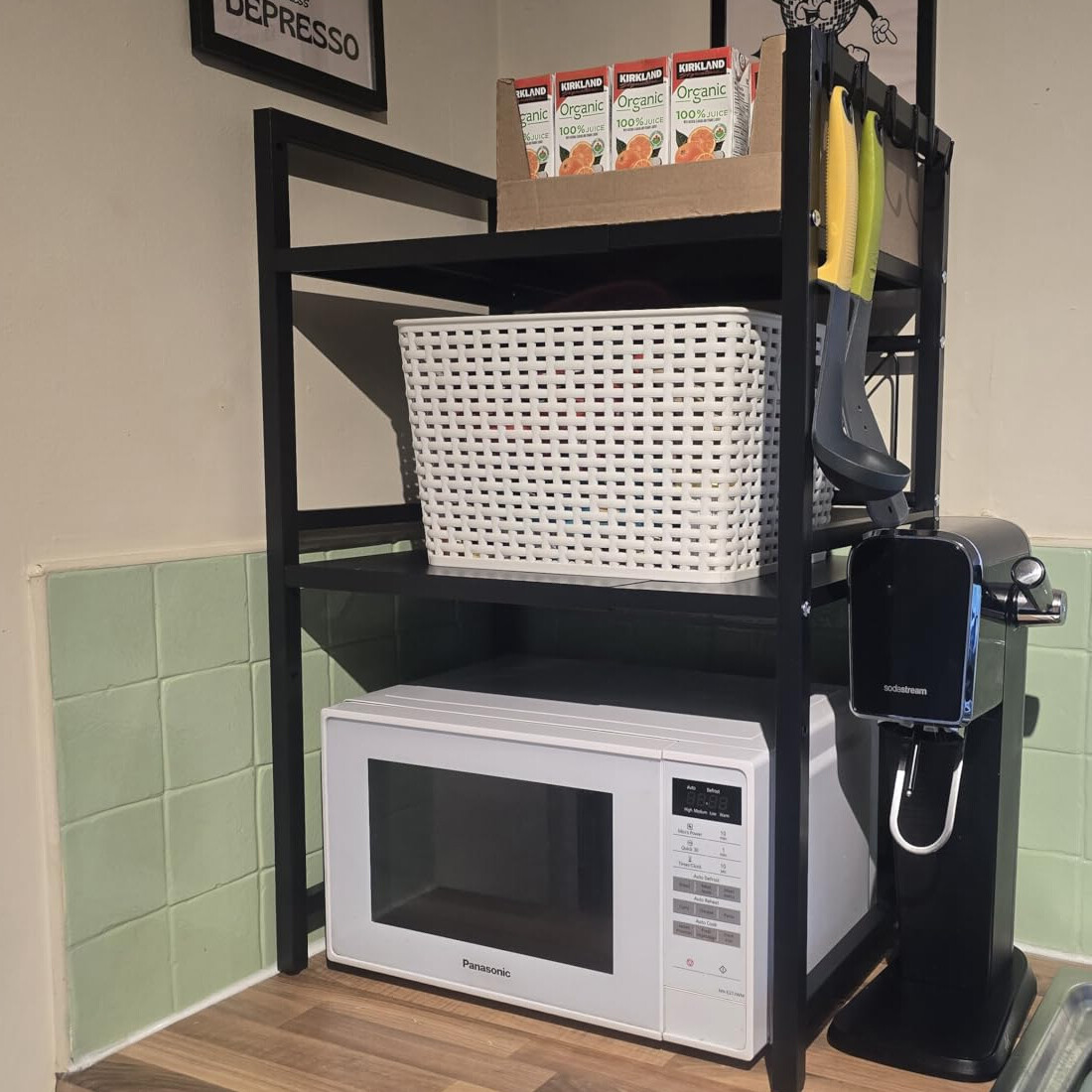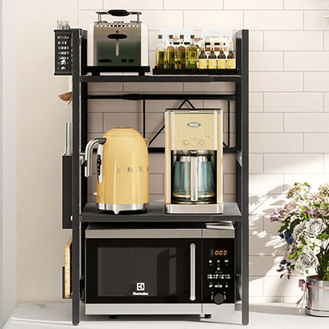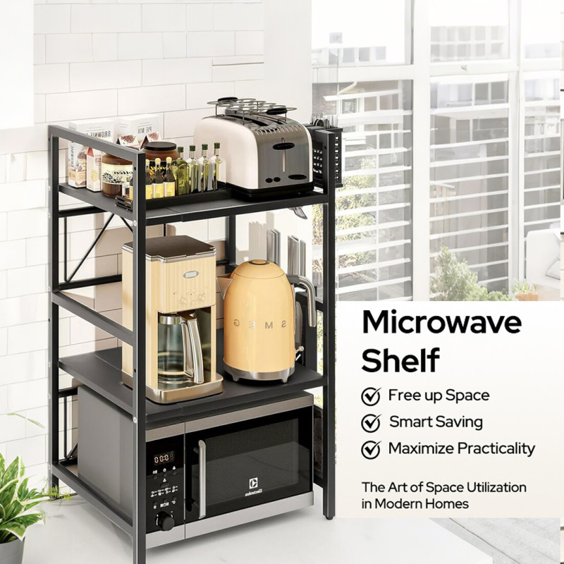 Powerful Load-bearing Design: Constructed from thick carbon steel plate, the microwave shelf stand boasts a robust structure capable of supporting various small kitchen utensils with ease