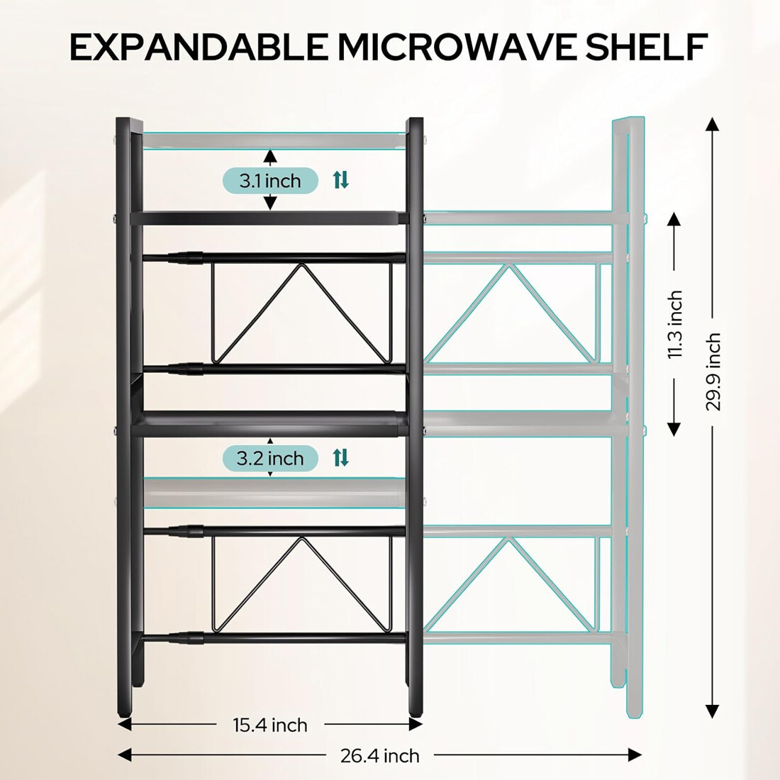 Adjustable Size: The microwave shelf measures a width of 15.4 inches and can be extended up to 26.4 inches