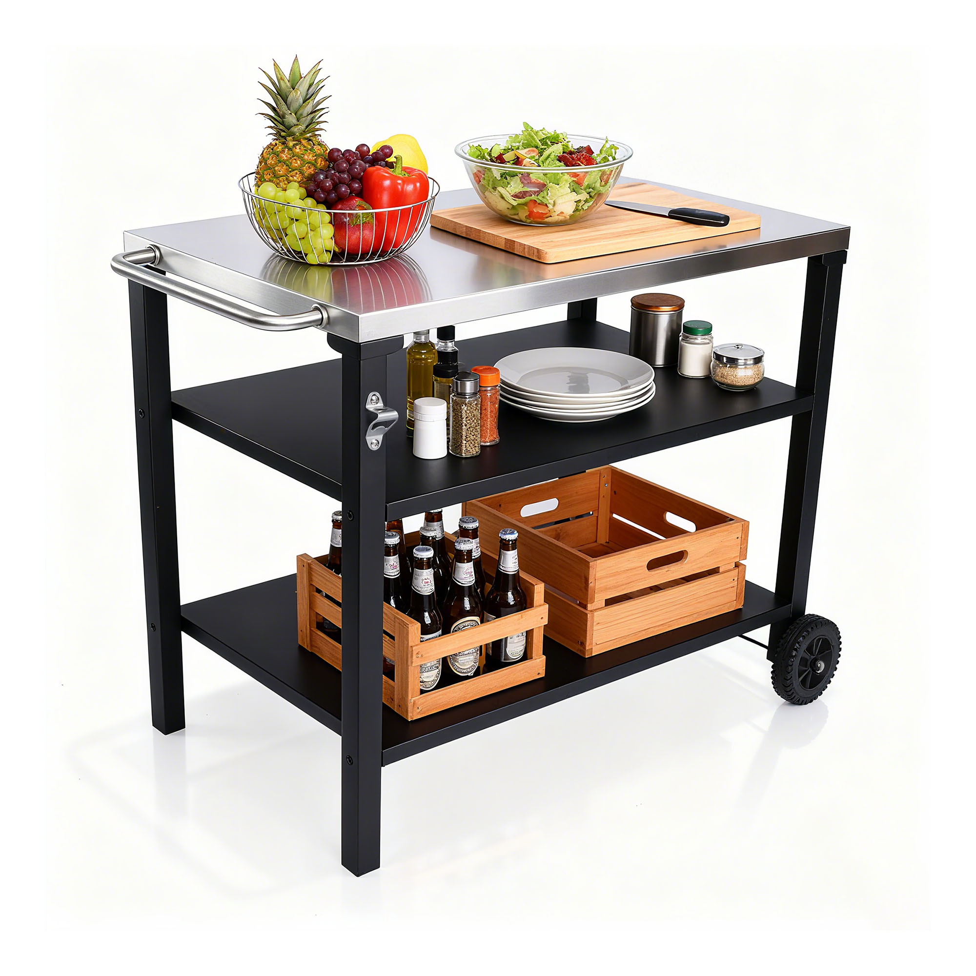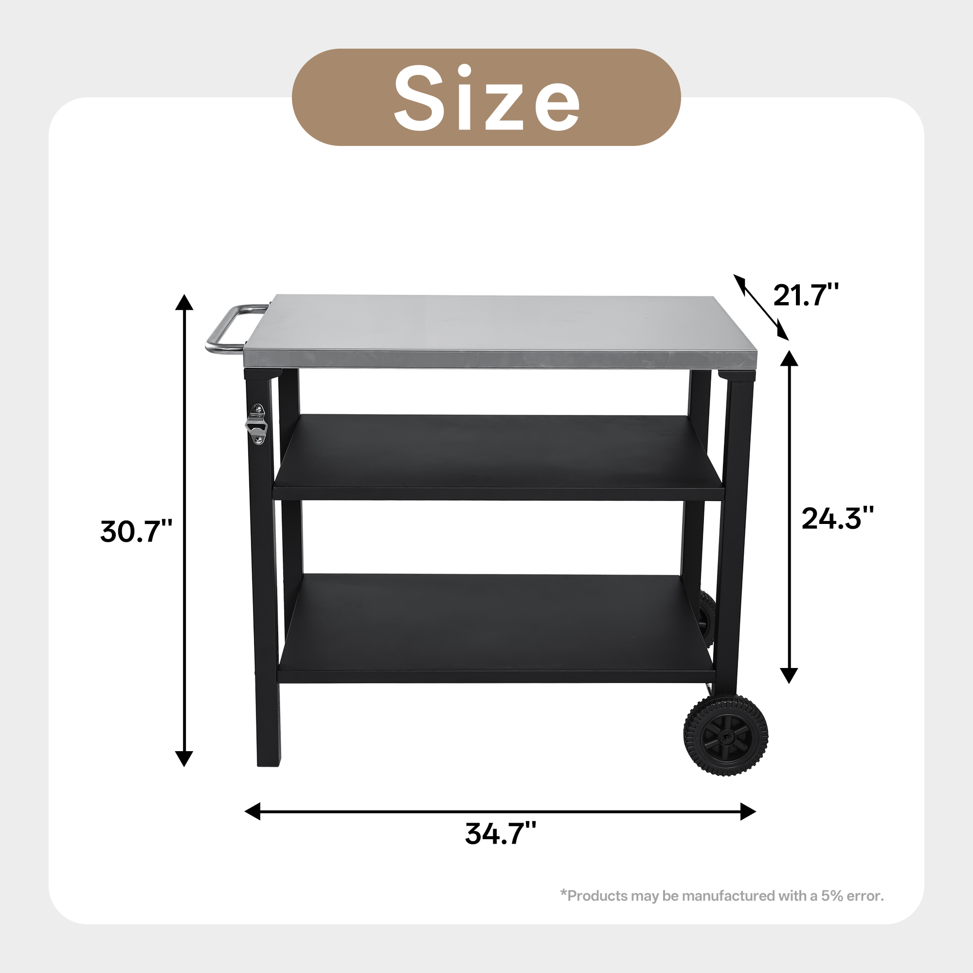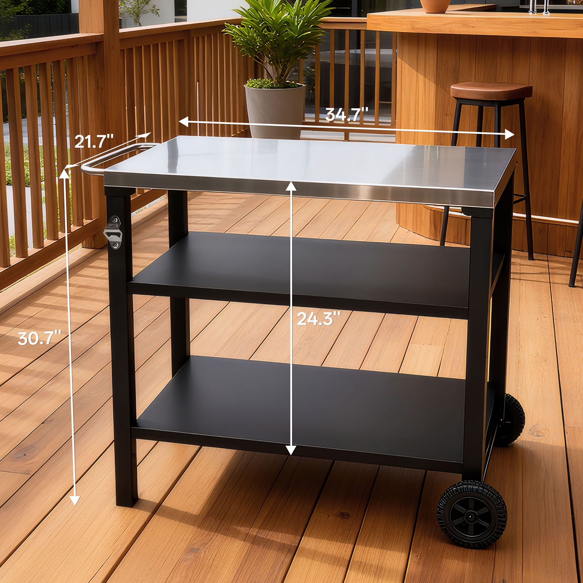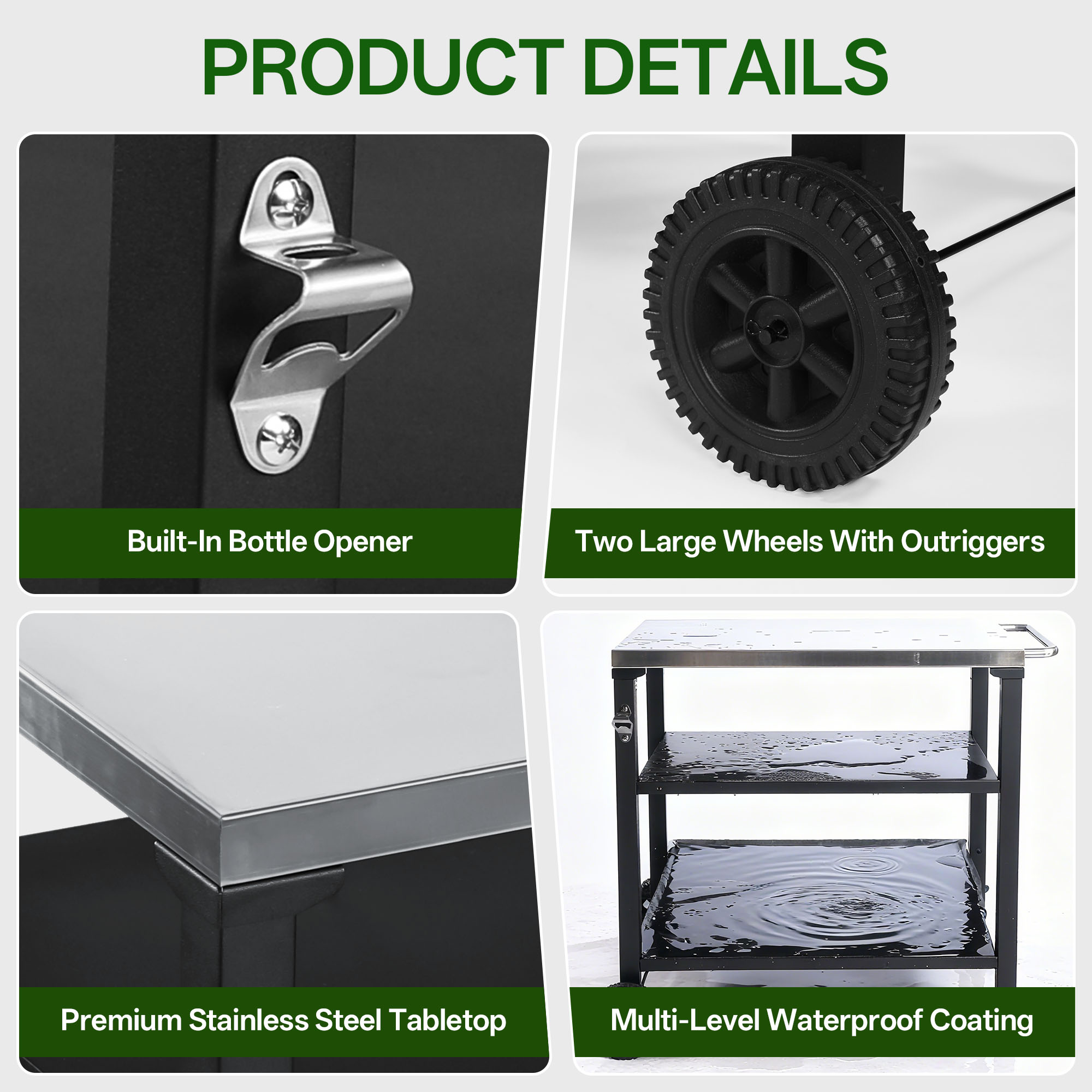 Product Name:3-Tier Outdoor Grill Cart with Stainless Steel Top, Movable BBQ Prep Table with Wheels, Rolling Serving Bar Cart for Patio, Backyard, Pizza Oven Stand, Black