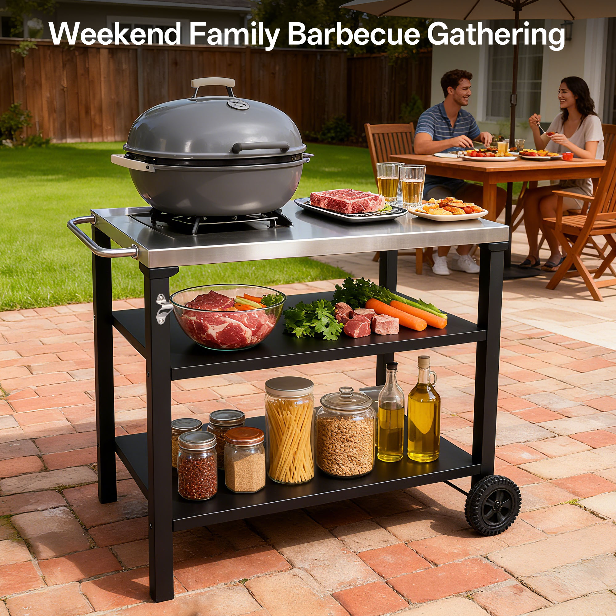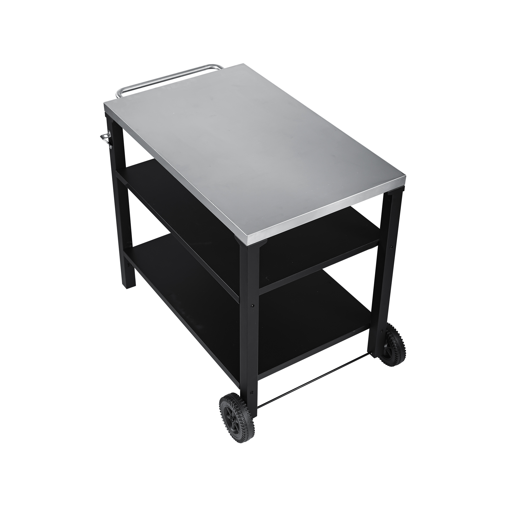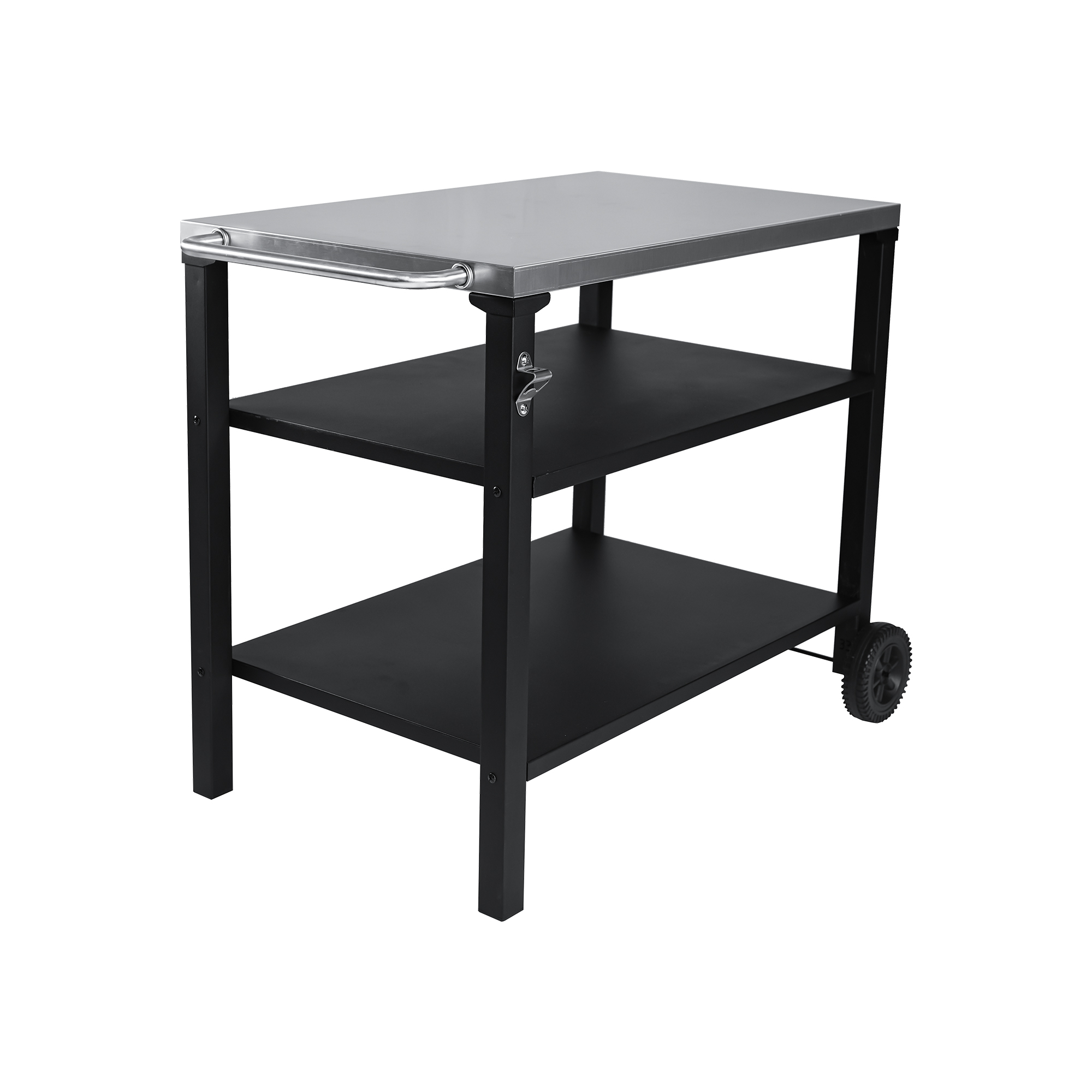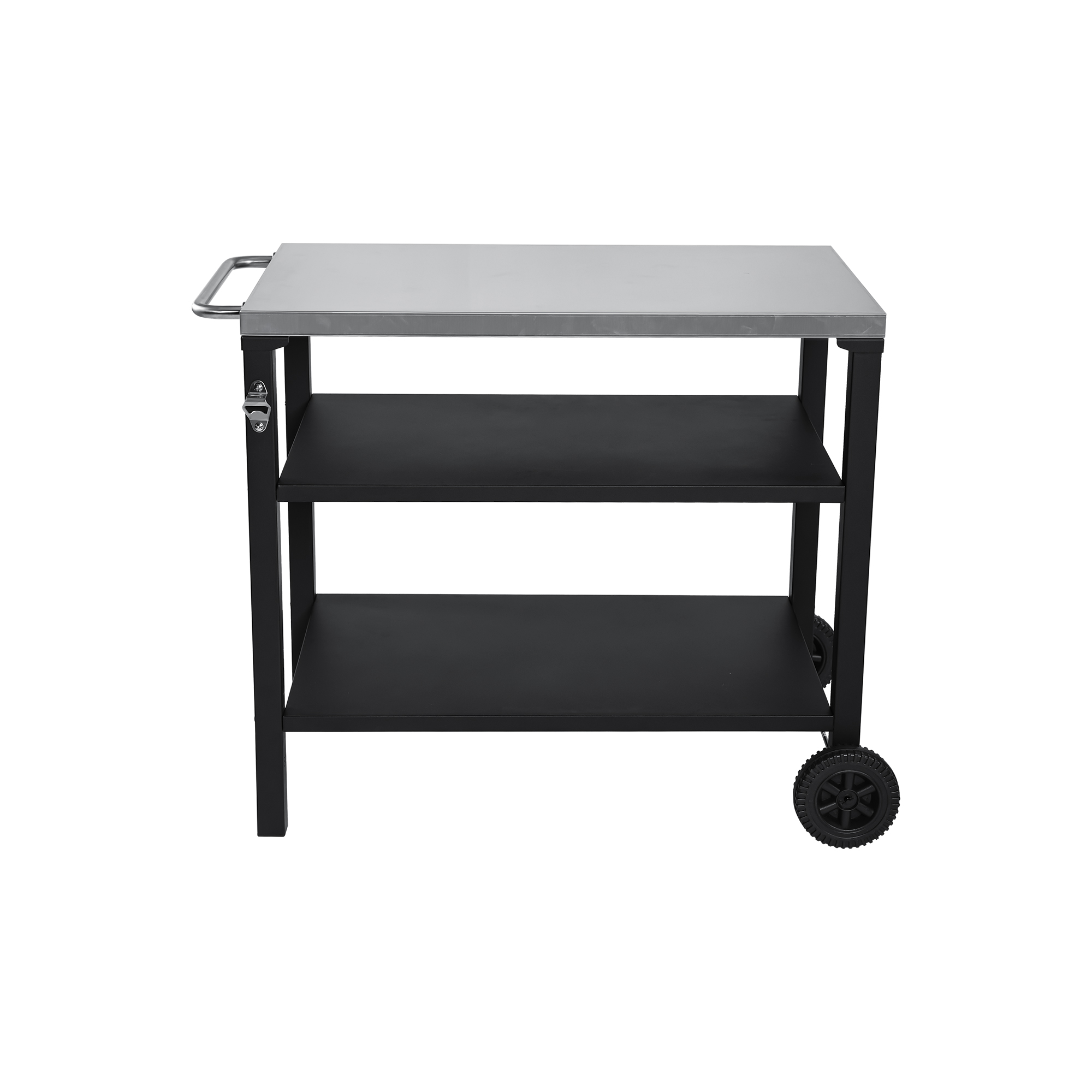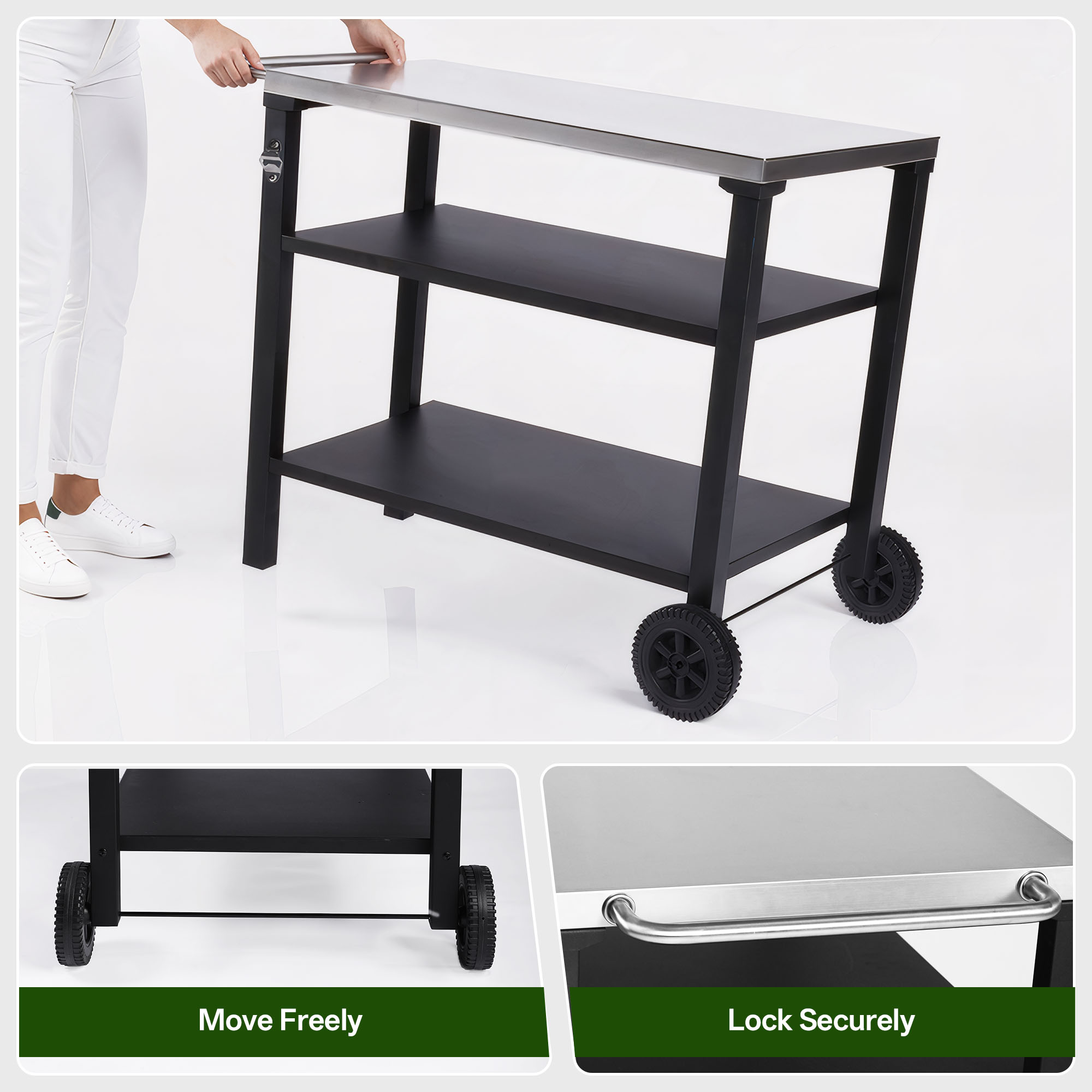 Product Name:3-Tier Outdoor Grill Cart with Stainless Steel Top, Movable BBQ Prep Table with Wheels, Rolling Serving Bar Cart for Patio, Backyard, Pizza Oven Stand, Black