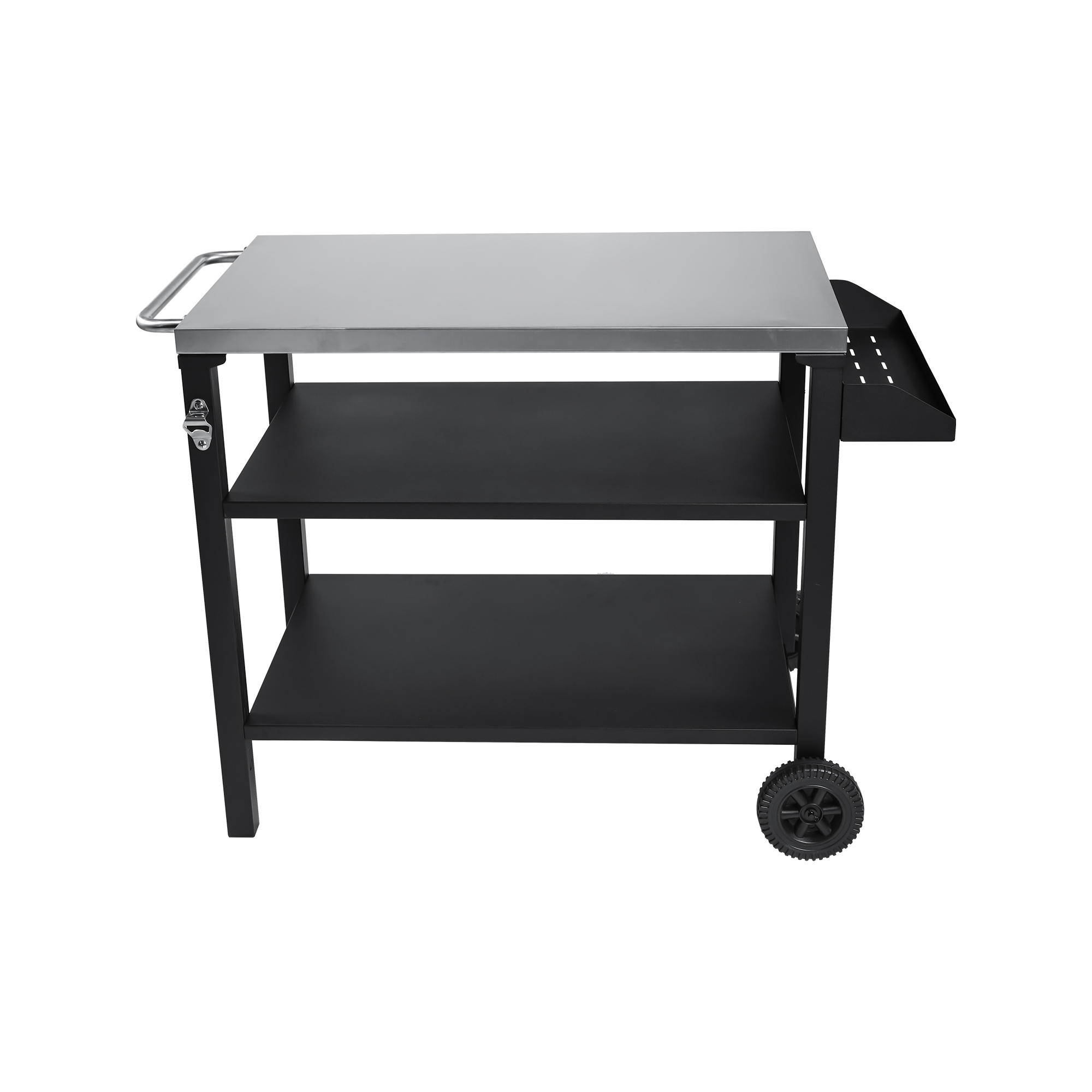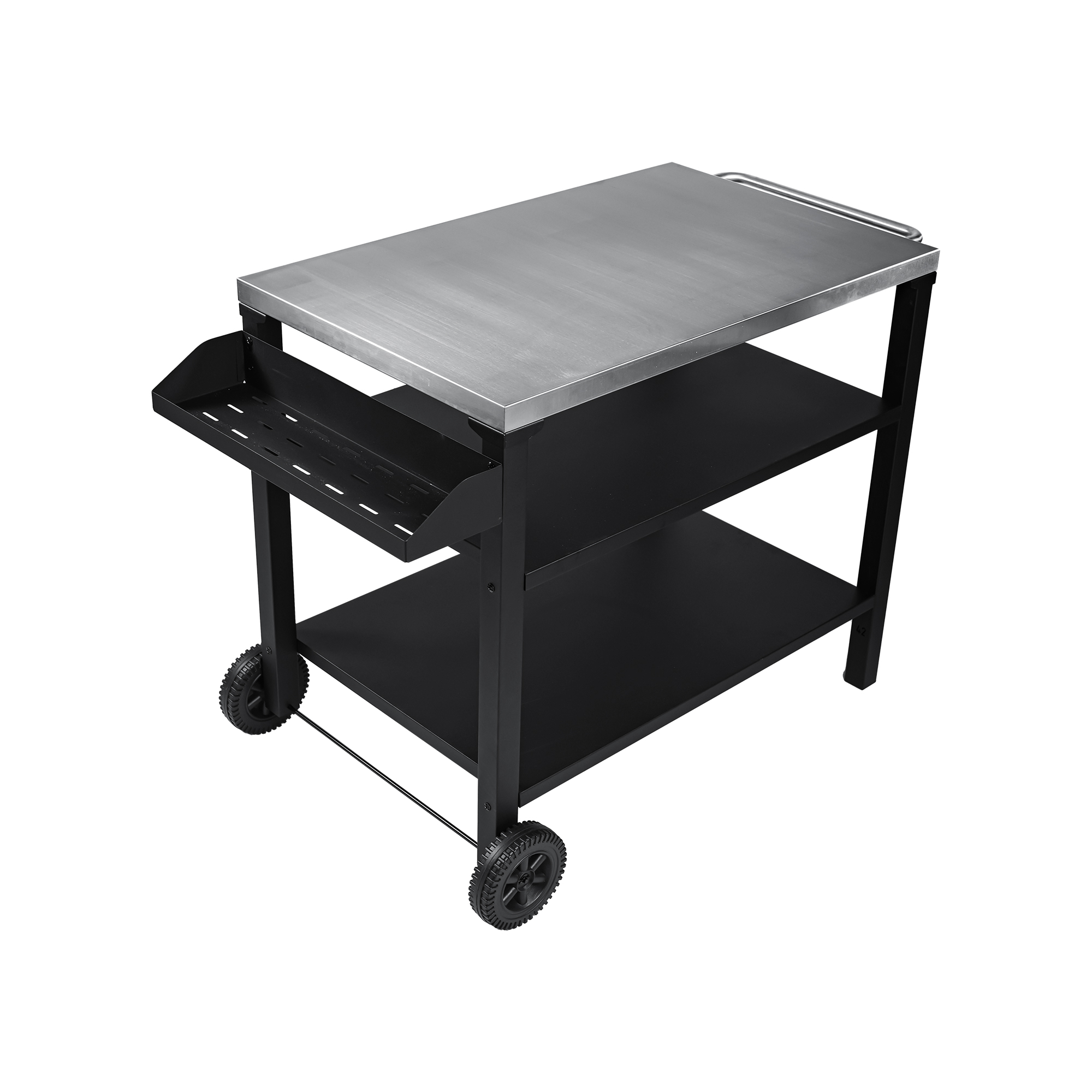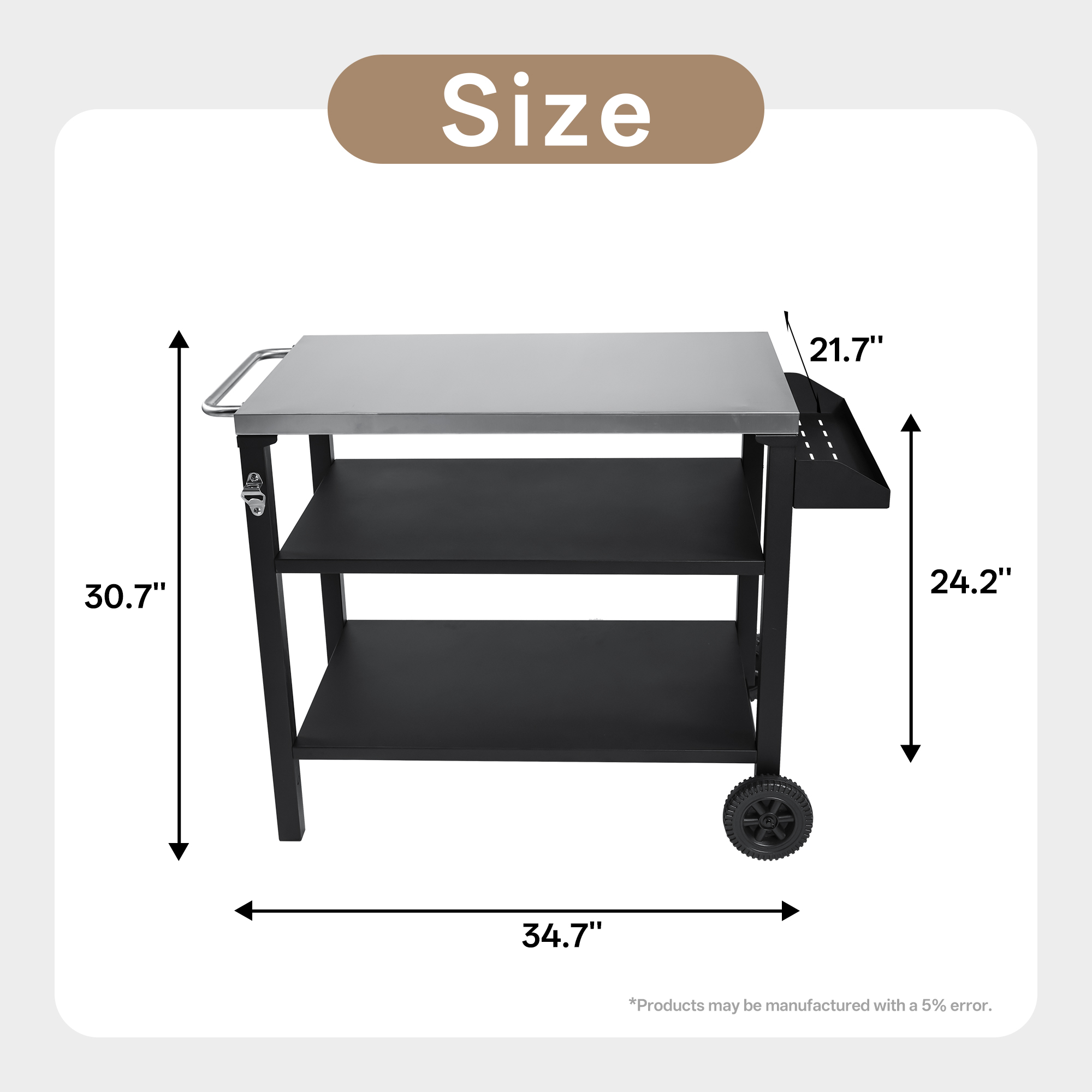 Product Name:3-Tier Outdoor Grill Cart with Stainless Steel Top & Side Shelf, Movable BBQ Prep Table with Wheels, Rolling Serving Bar Cart for Patio, Backyard, Pizza Oven Stand, Black