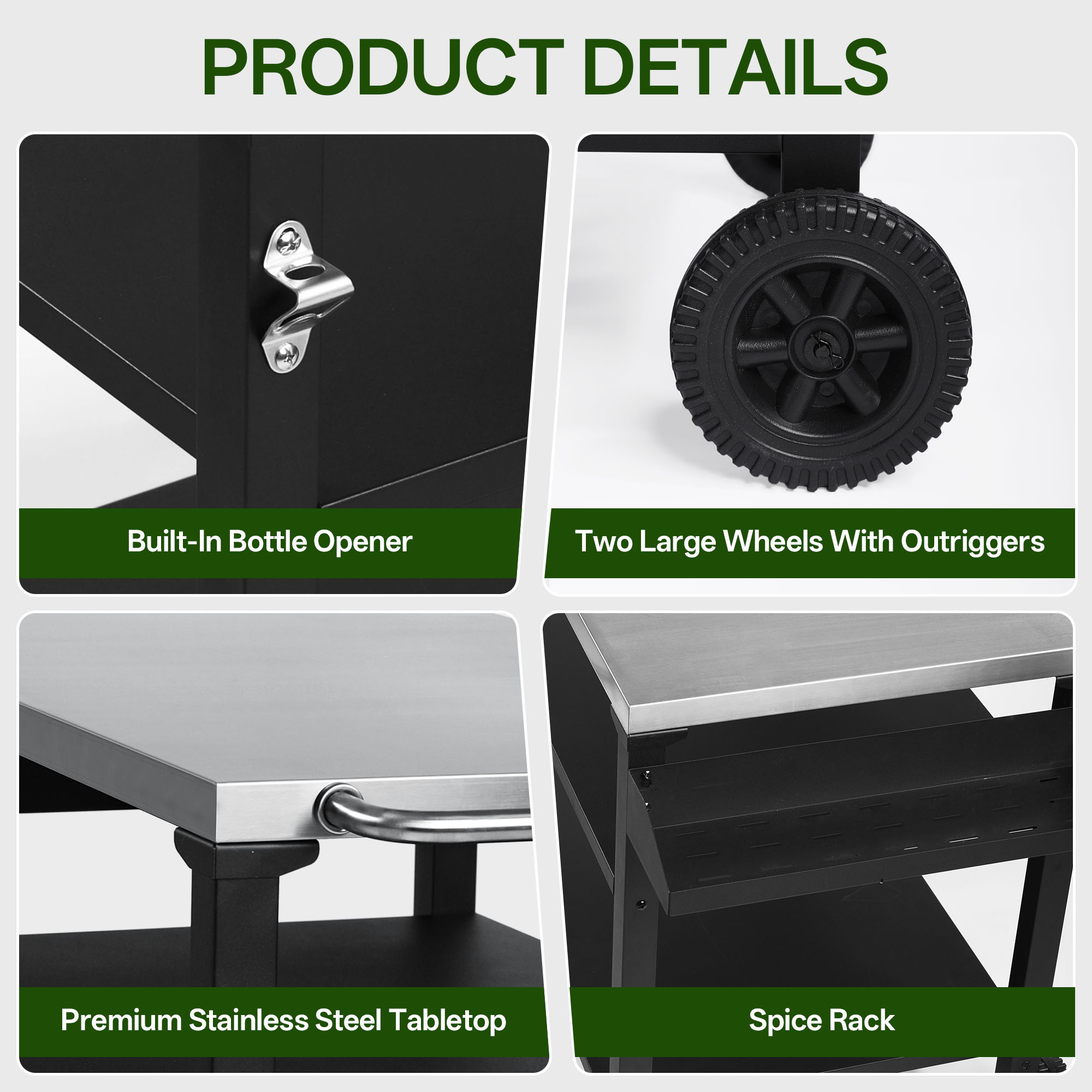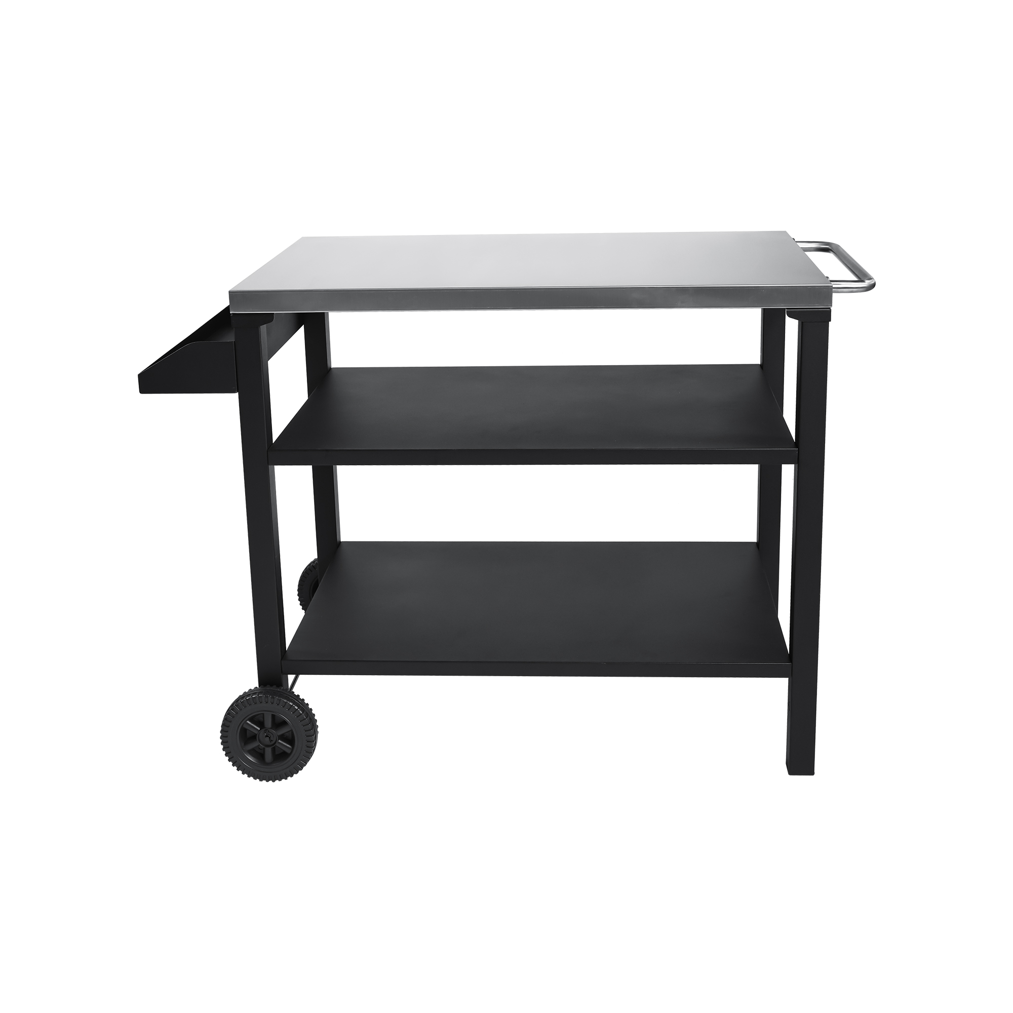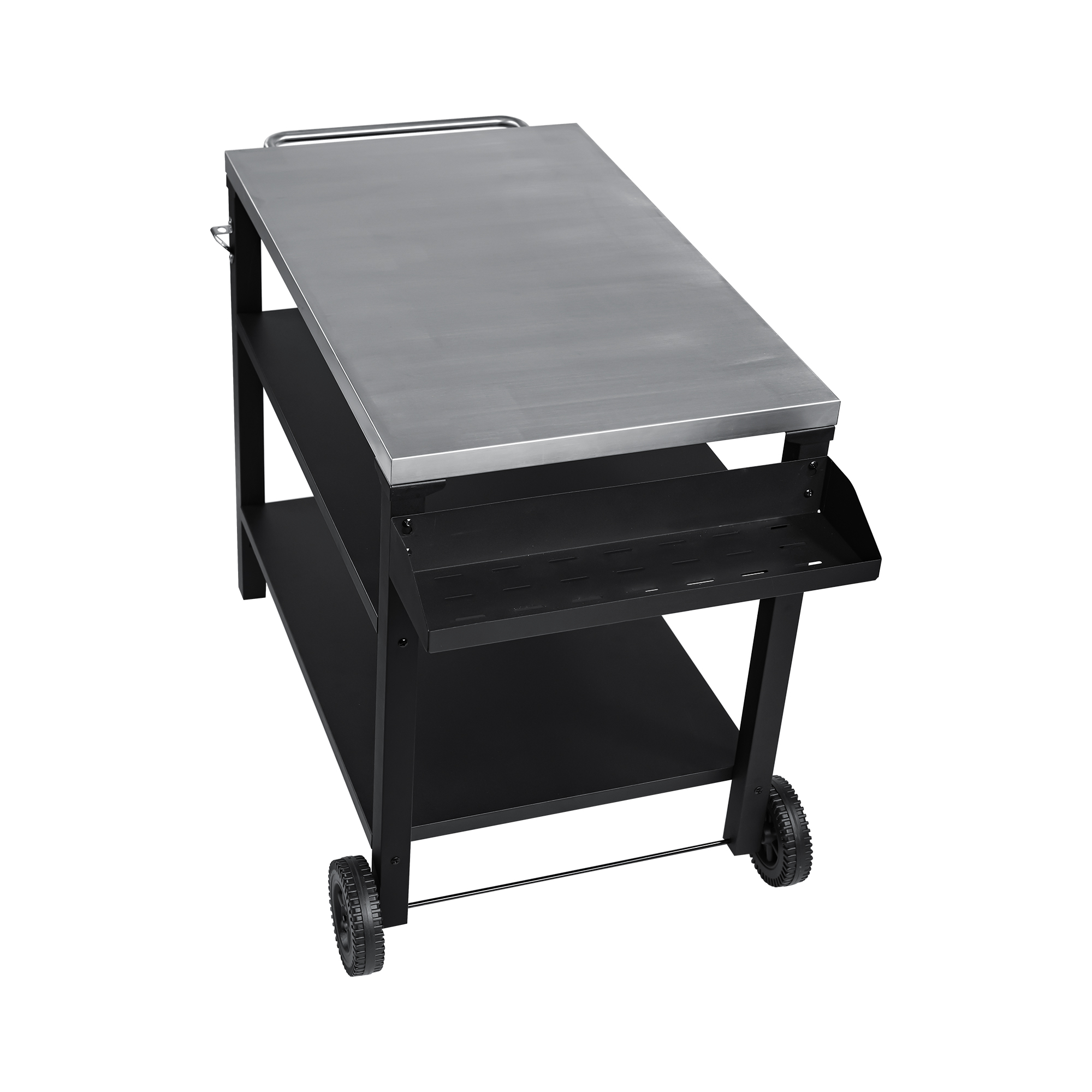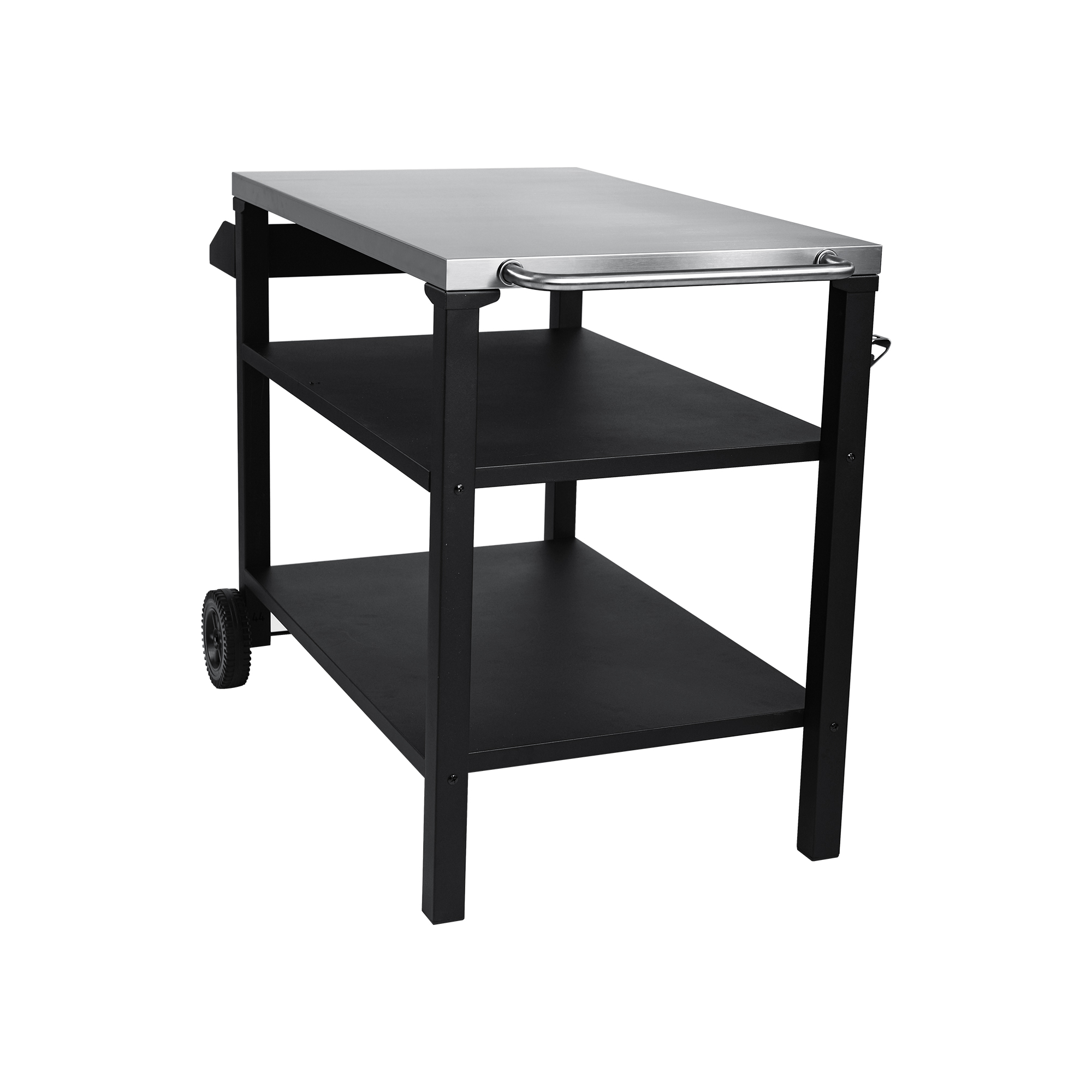 Product Name:3-Tier Outdoor Grill Cart with Stainless Steel Top & Side Shelf, Movable BBQ Prep Table with Wheels, Rolling Serving Bar Cart for Patio, Backyard, Pizza Oven Stand, Black