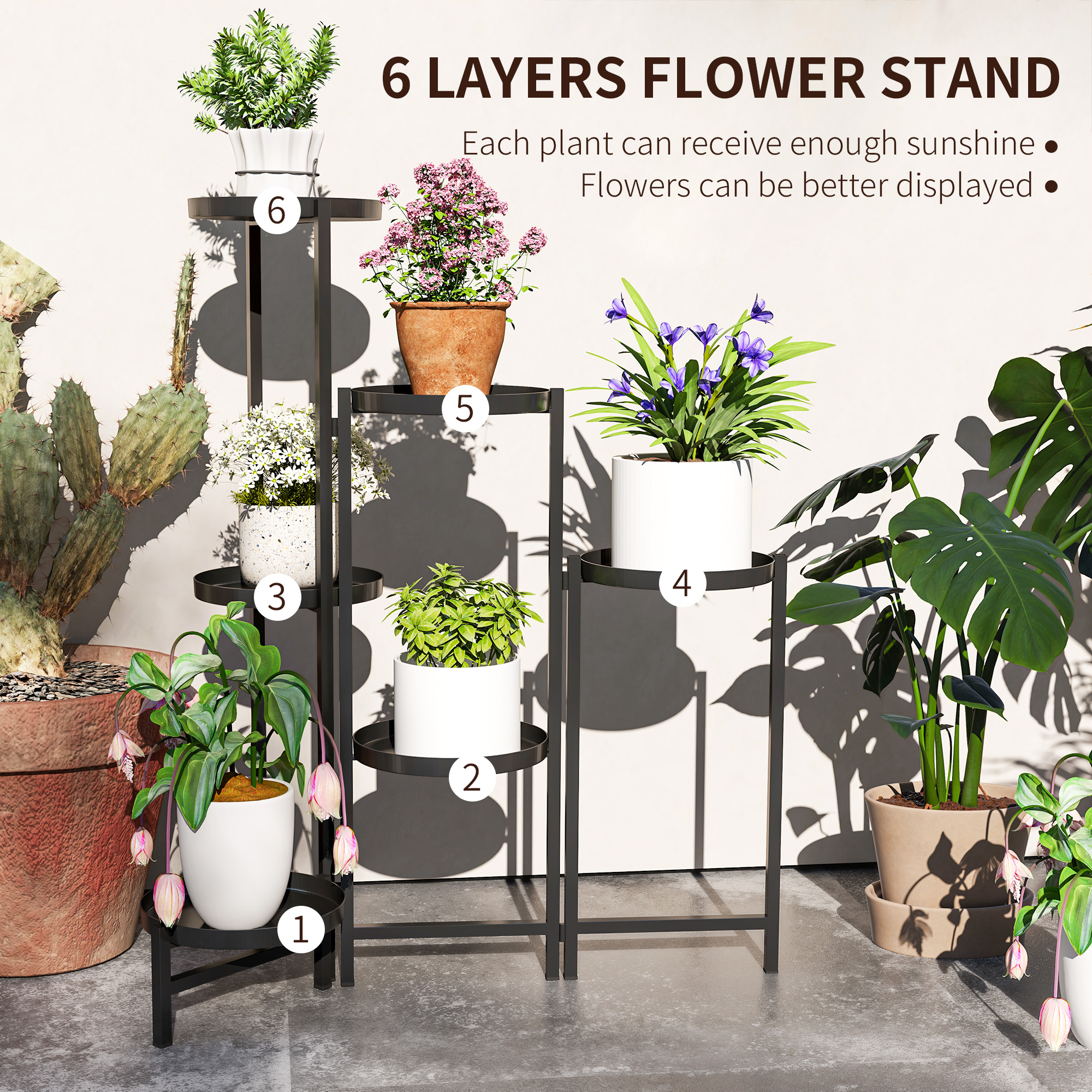 Discover the charm of the Flower Stand, a versatile piece that marries strength with elegance. Whether as an indoor plant stand or an outdoor plant stand, this rust-proof, high-strength metal frame supports hefty weights and up to six pots. Its all-black, tiered design enhances any corner, folding neatly away when not in use for effortless elegance and functionality.