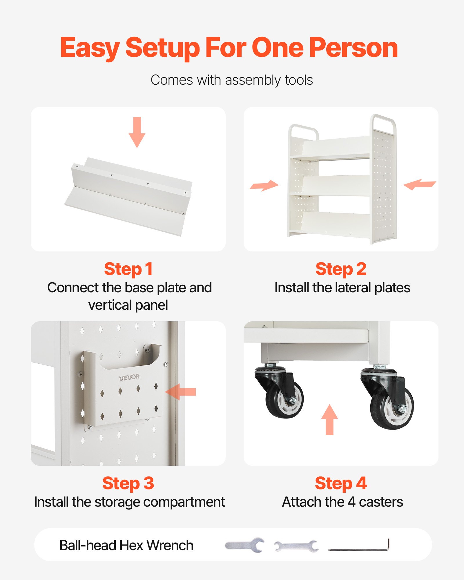 Silent Movement: TPR silent swivel casters glide smoothly, and two have a locking feature for secure positioning. Move the book truck effortlessly across wood or tile floors without disturbing anyone—great for libraries or nighttime use