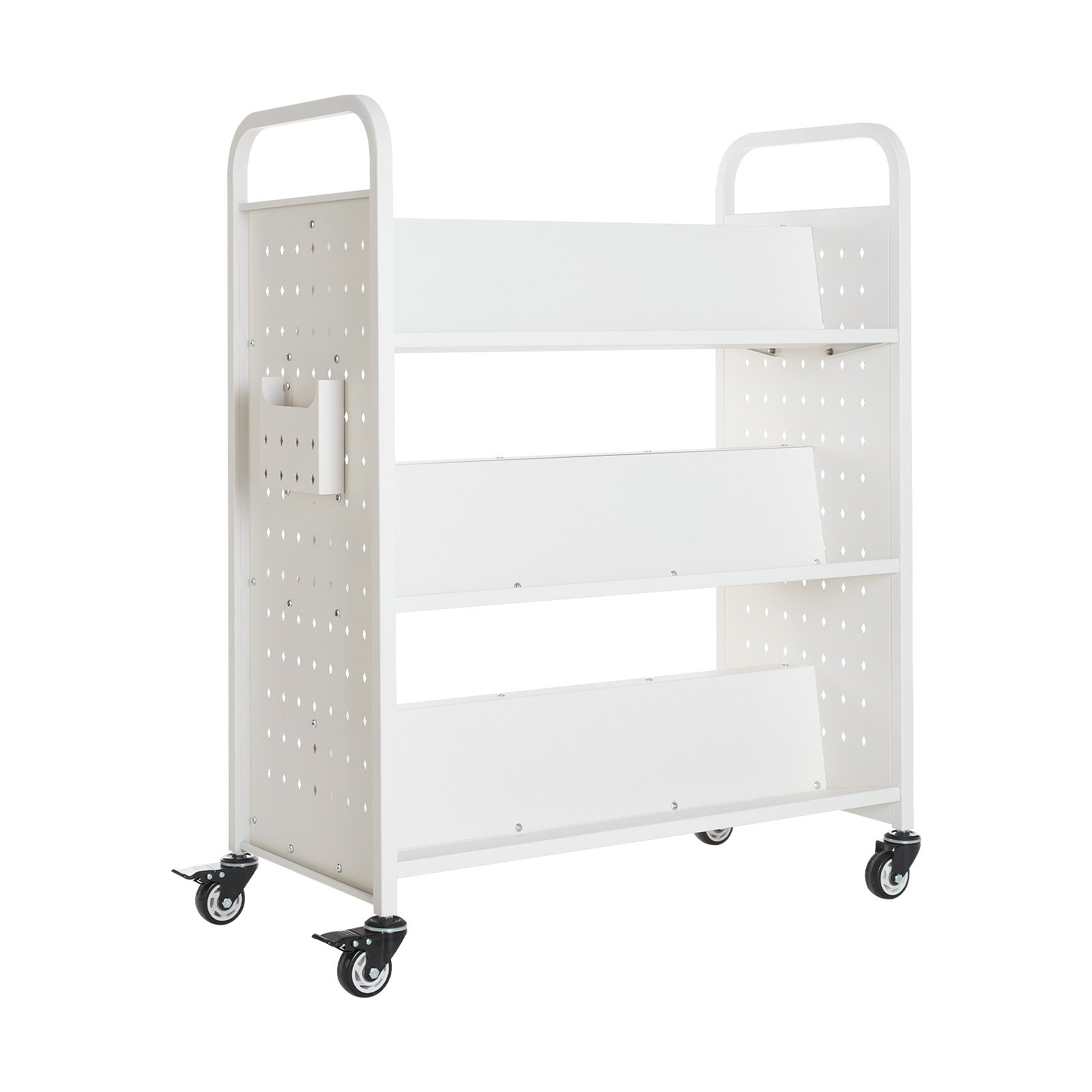 Extra Large Capacity: This 3-tier book cart with 14.14-inch high shelves holds a ton of books or office supplies! It’s also equipped with side compartments for A4 folders/tablets—ideal for libraries, home use, and more