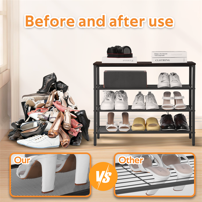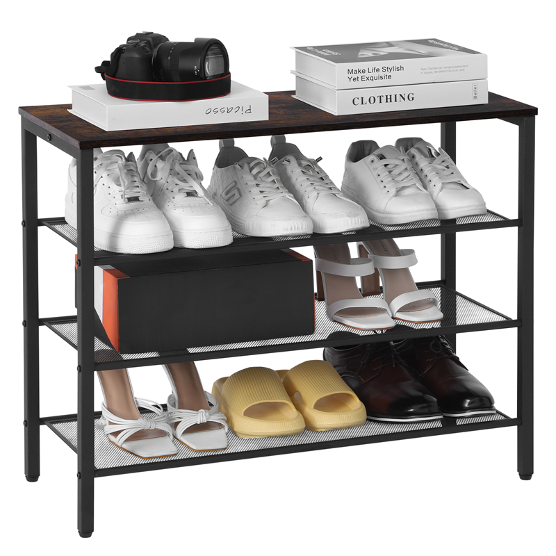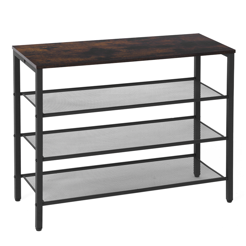 3-tier Shoe Rack With Grid Rack Wooden Rustic Foyer Shoe Rack With Coat Hook, Suitable For The Steel Frame Of The Living Room Mud Room At The Front Door Of The Corridor