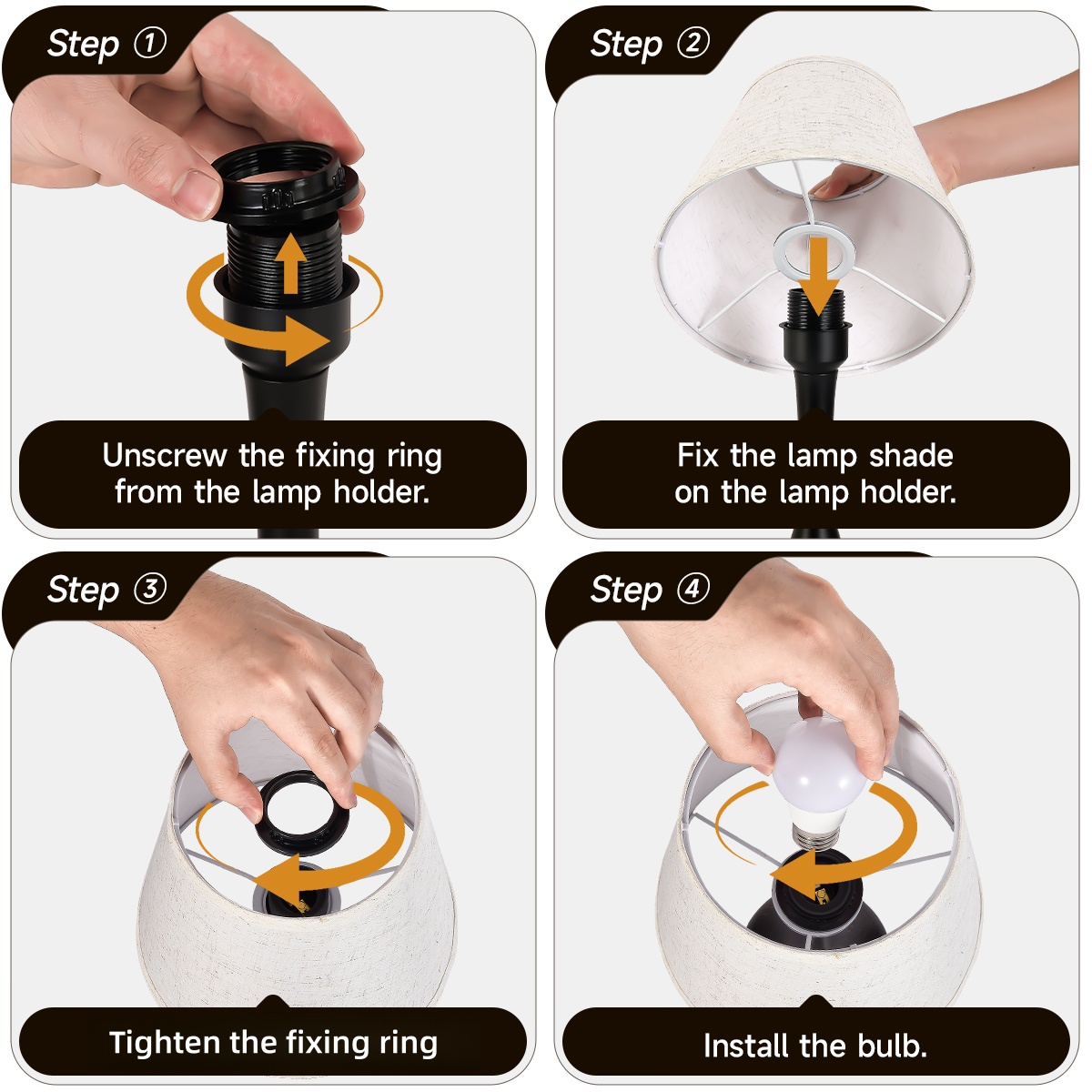 The entire metal base of this dimmable touch lamp is touch sensitive, touch any position to quickly change 3 levels of brightness (low, medium, high) to meet your different needs.Aesthetic Table Lamp crafted from beige linen, it boasts an elegant and timeless cylindrical design. This design adds to its aesthetic appeal and serves a practical purpose by directing the light precisely where it's needed.This farmhouse table lamp has a simple design, it is very suitable to decorate anywhere in your home, especially the bedroom, living room, study room, kids' room, nursery, office, or dorm.The simple hands-on installation adds a lot of fun to your noisy life! Please follow the attached installation instructions, just a few steps to get a beautiful bedside table lamp in no time.