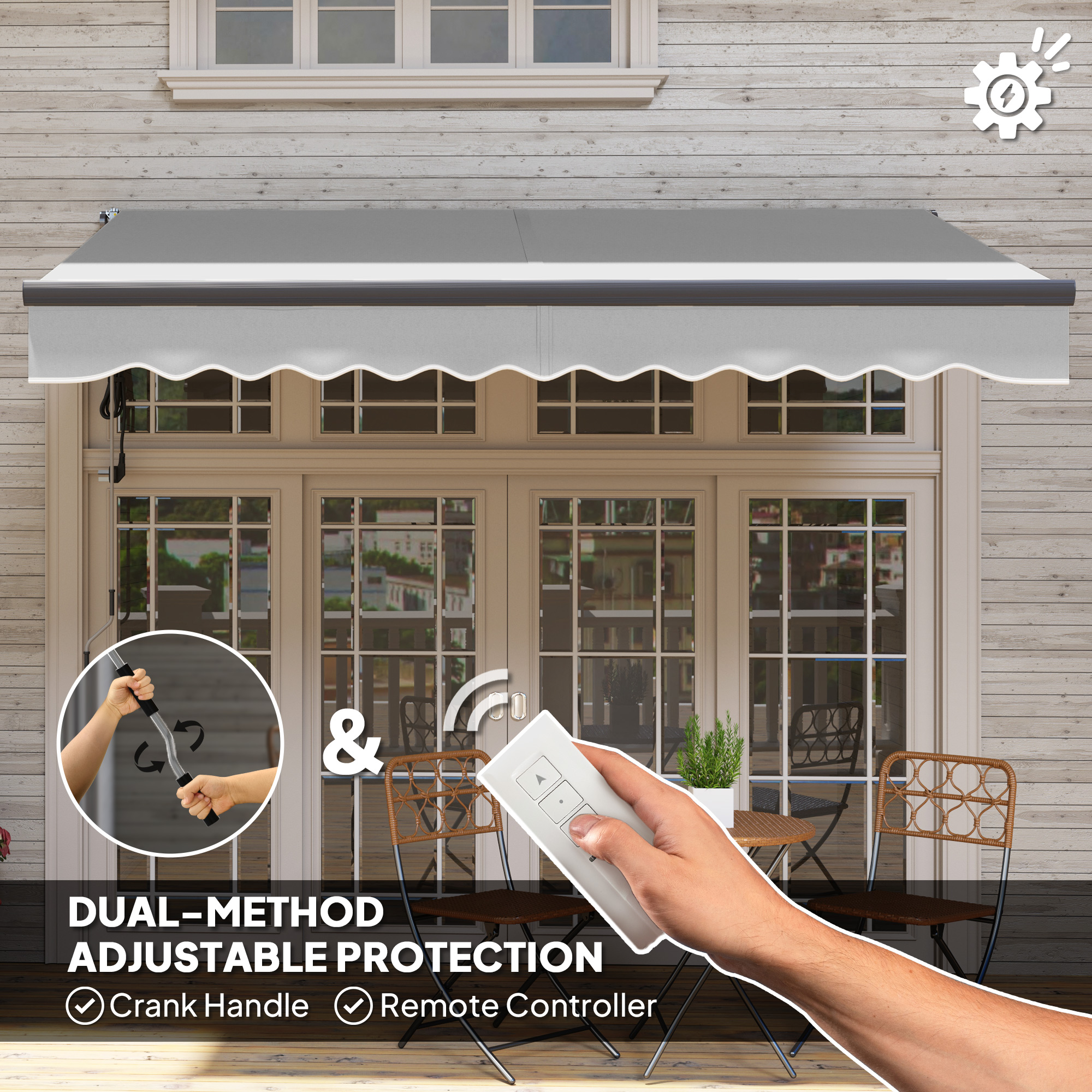 Sun protection where needed above doors or windows, with this 2.5 x 3 m electric awning. Can be used with the both the remote control or manually with the hand crank. The aluminium frame means a strong core, resistant to rusting for extended use. The 280g/m² polyester canopy blocks harmful UV rays. Tilts between 45° to 85° to block weather at different times of the day.