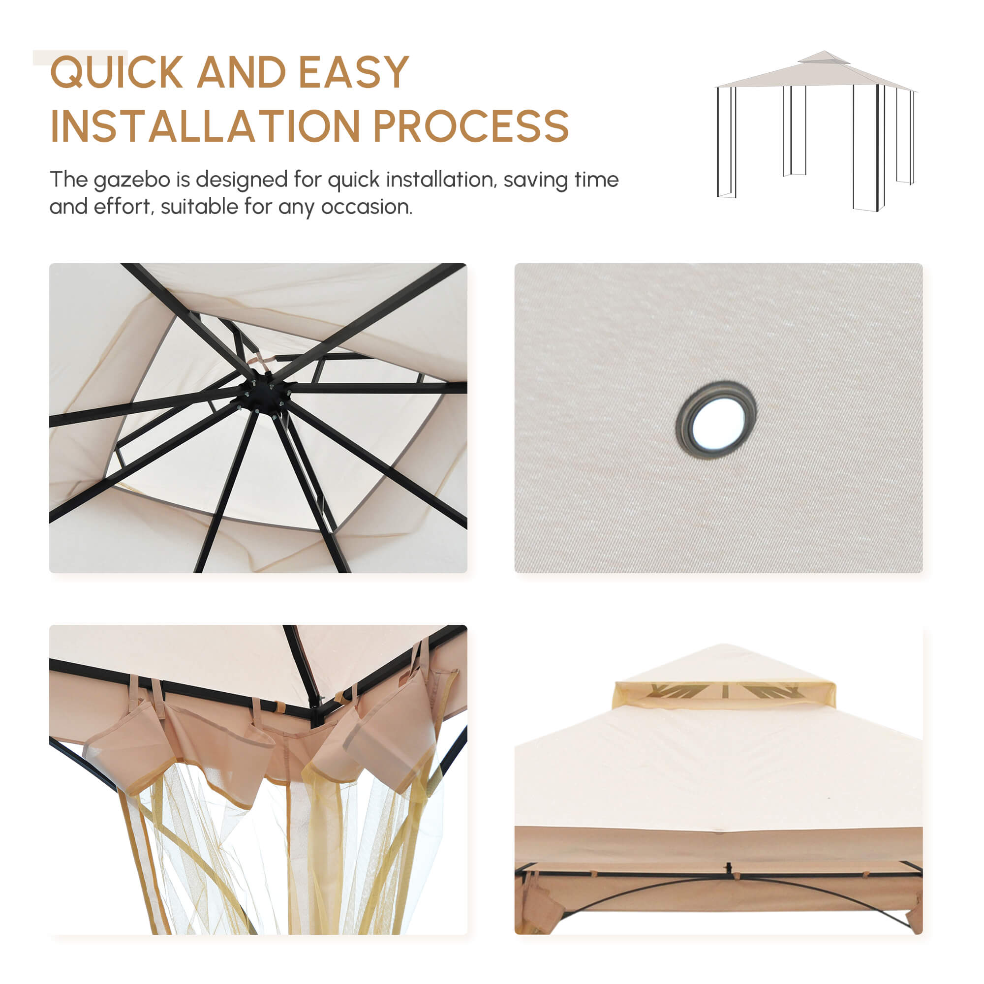 Bring life back to your outdoor living space with this hot tub gazebo with sides from . The steel frame gazebo offers optimum protection against harmful UV sunlight and rain. The slim lines and edge design ensures great usage, while the included ground stakes offer added stability. The powder coated rust-resistant metal frame is designed to last for years of usage. The double tiers on the top offer better ventilation.