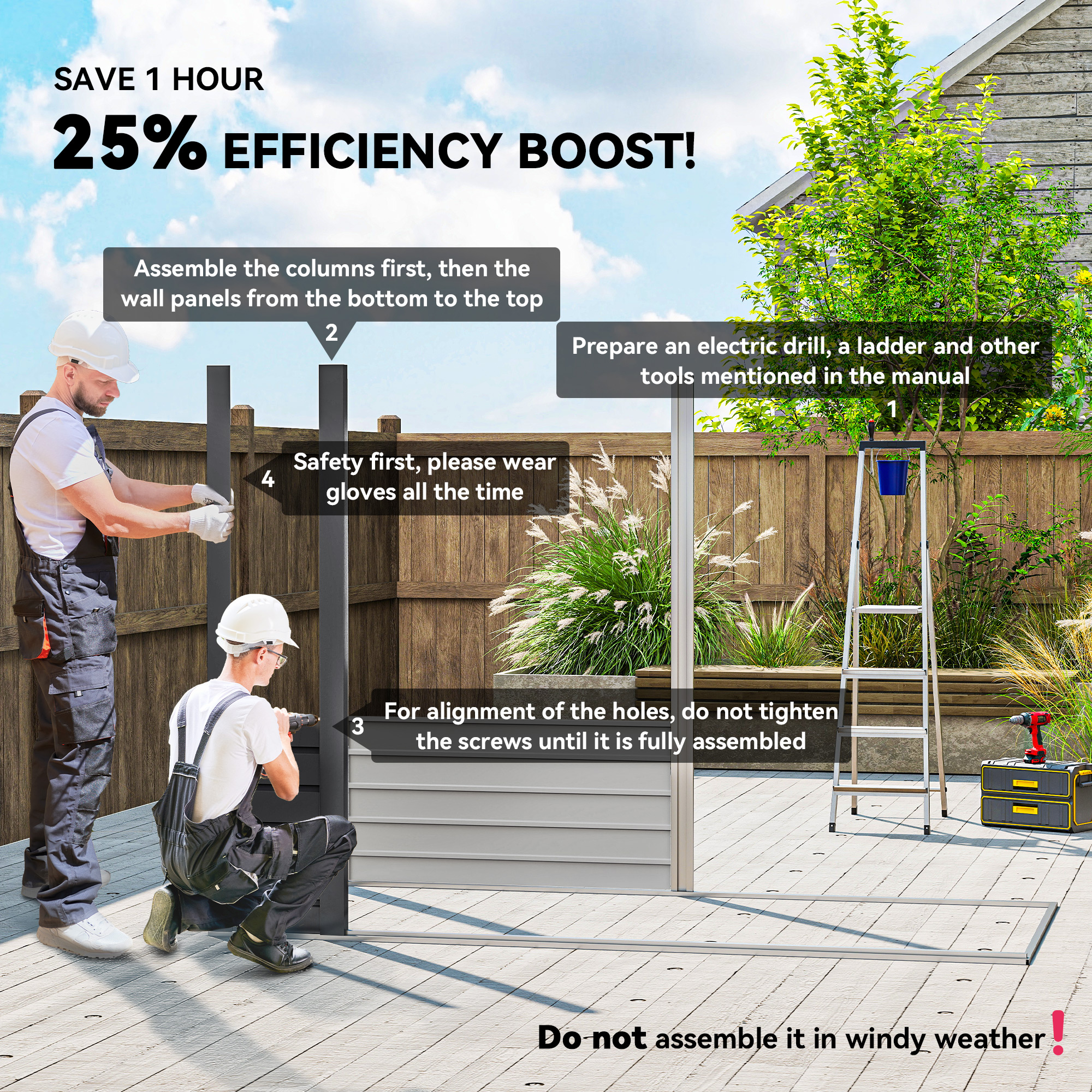 Bring handy storage to your outdoor spaces with this shed. Measuring 3.7 x 7.9ft, with a completely open inside, it's a great shelter for all your gardening tools and equipment. Made from galvanised steel for a strong structure, fitted with two doors to allow easy access. Complete with a latch and padlock to keep the door securely shut.