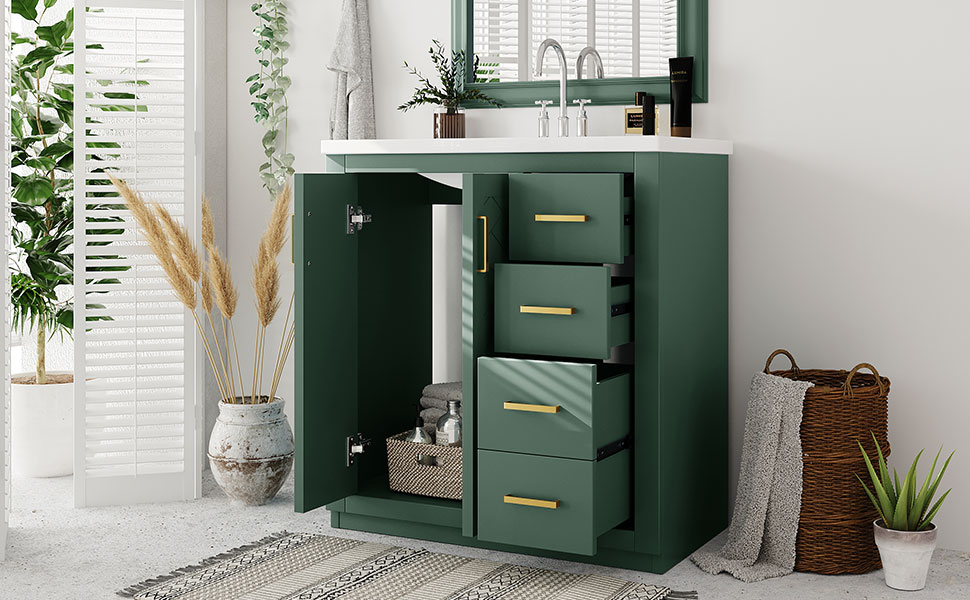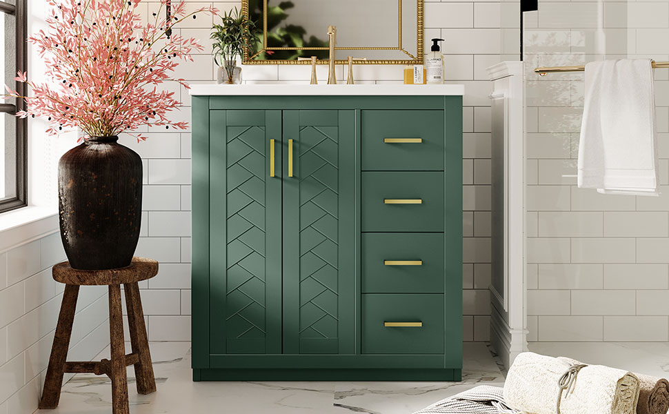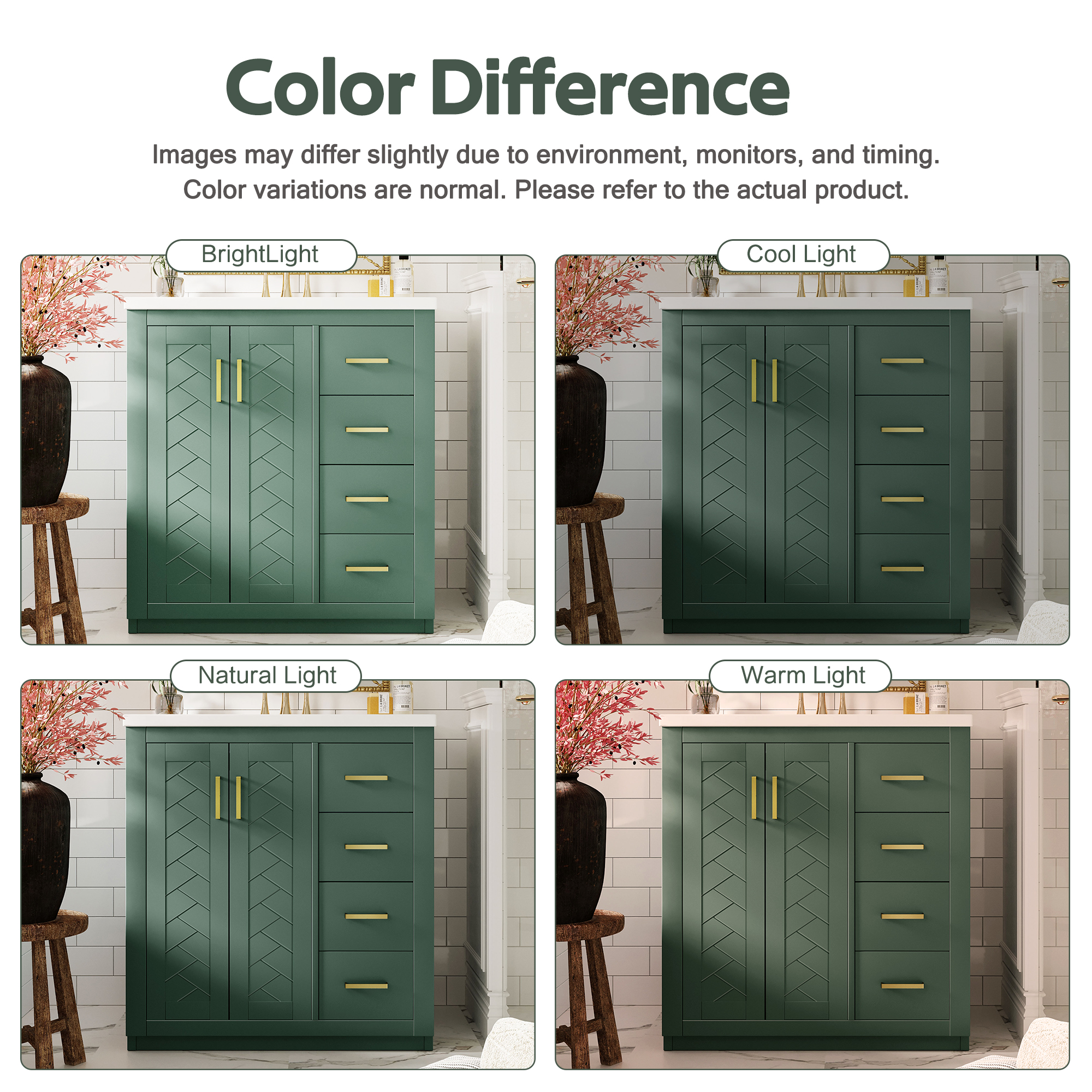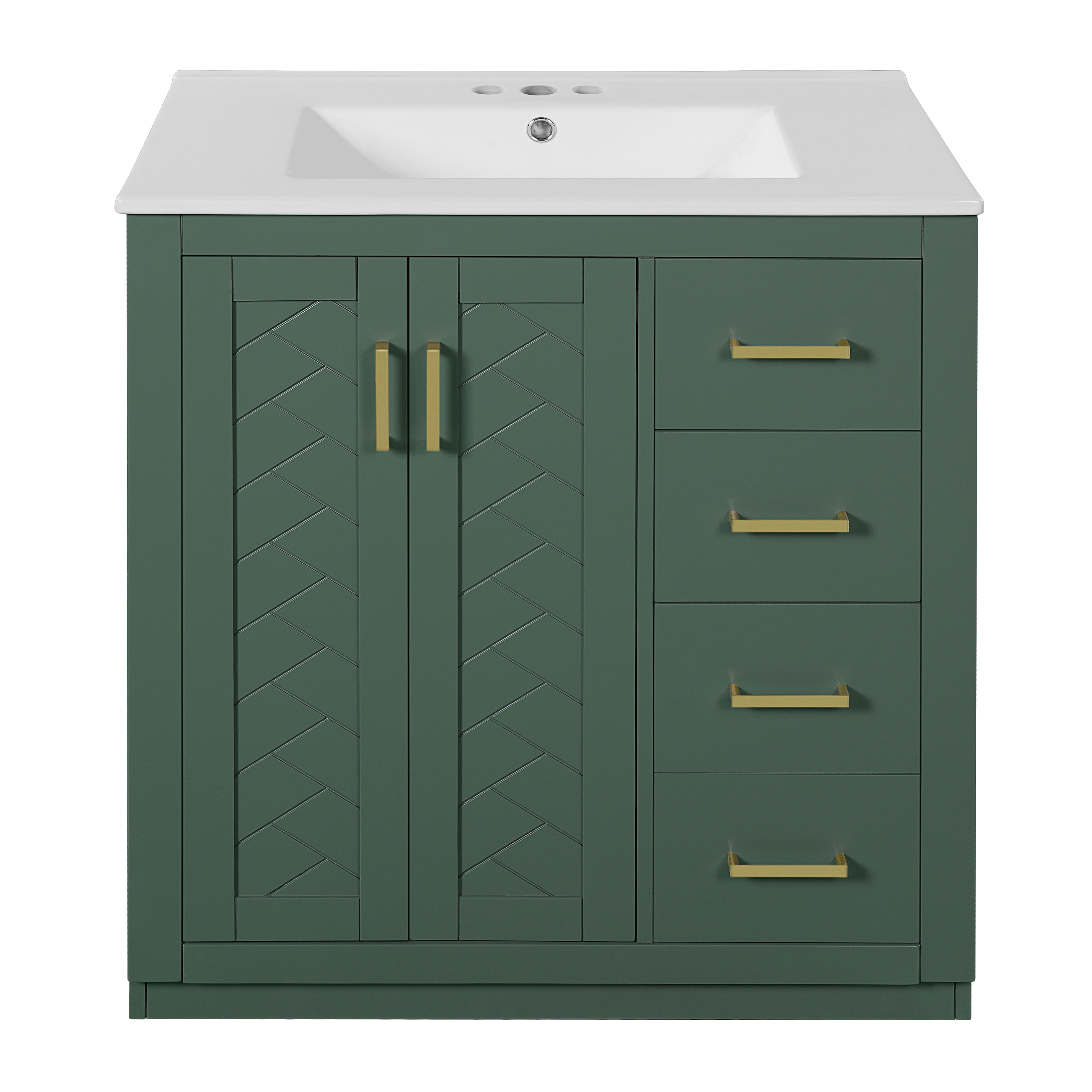 Product Name:30'' Bathroom Vanity with Ceramic Sink Combo, Solid Wood Frame Bathroom Storage Cabinet, Freestanding Vanity Set with 3 Drawers& Soft Closing Doors