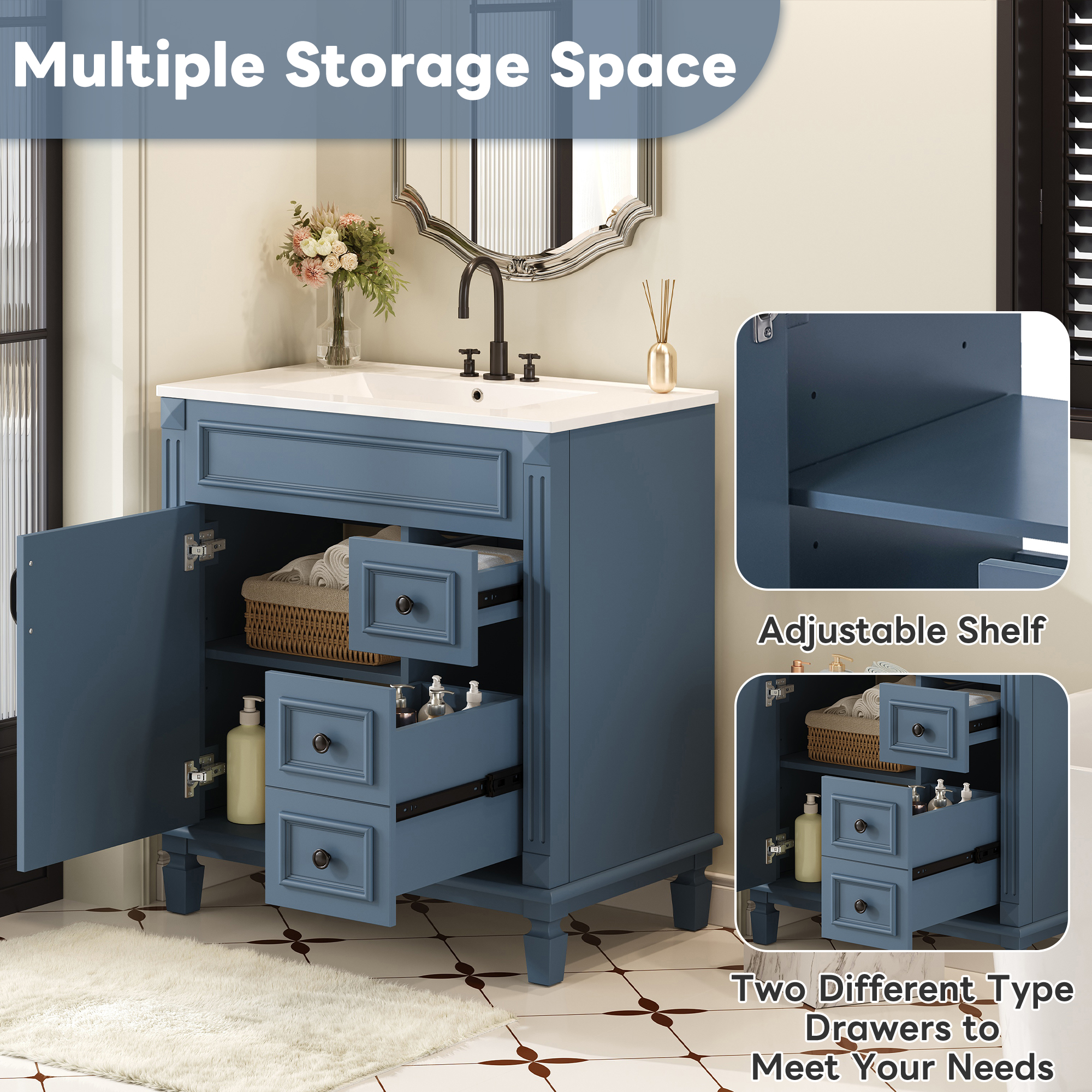 30" Bathroom Vanity with Ceramic Sink with 2 Drawers and Adjustable Shelf