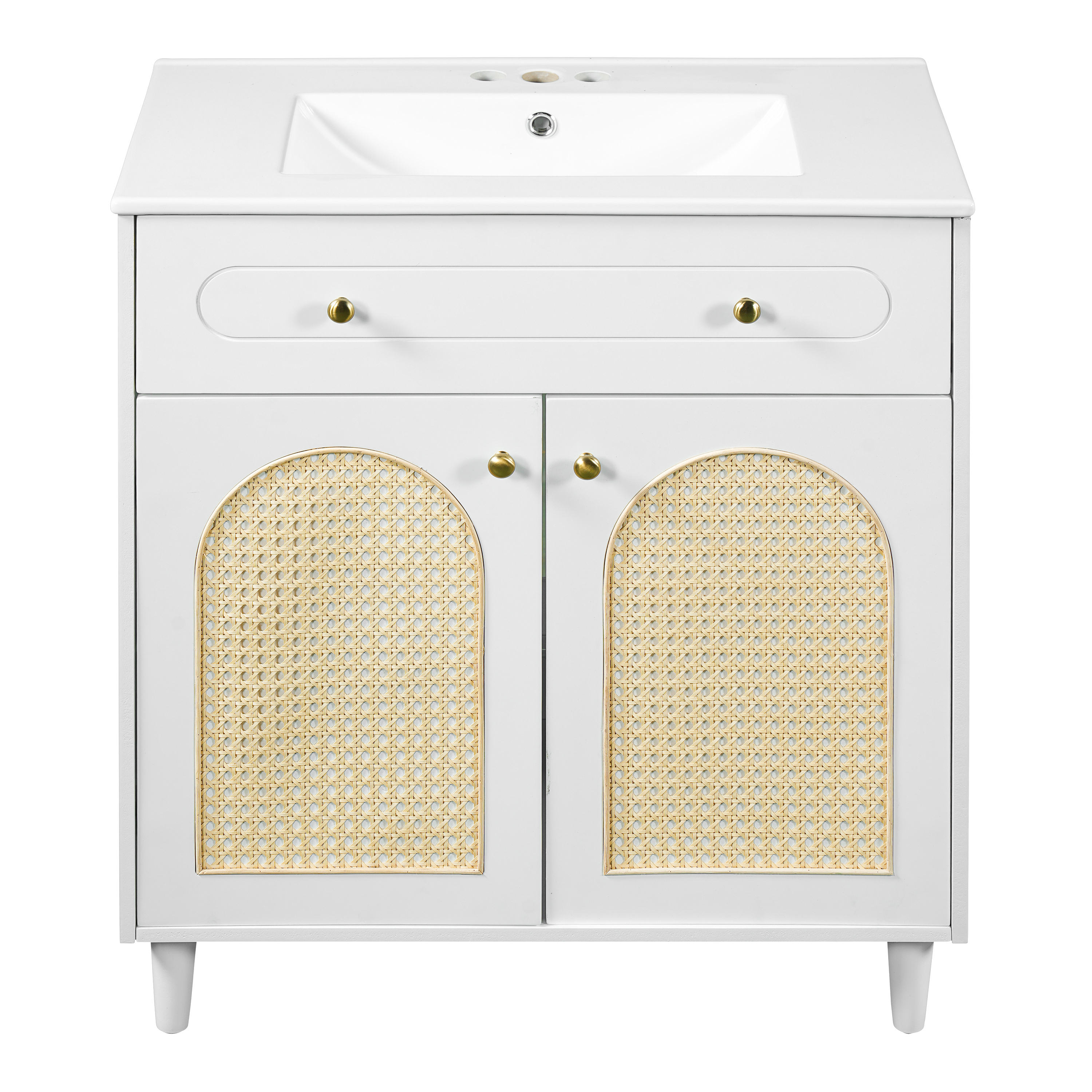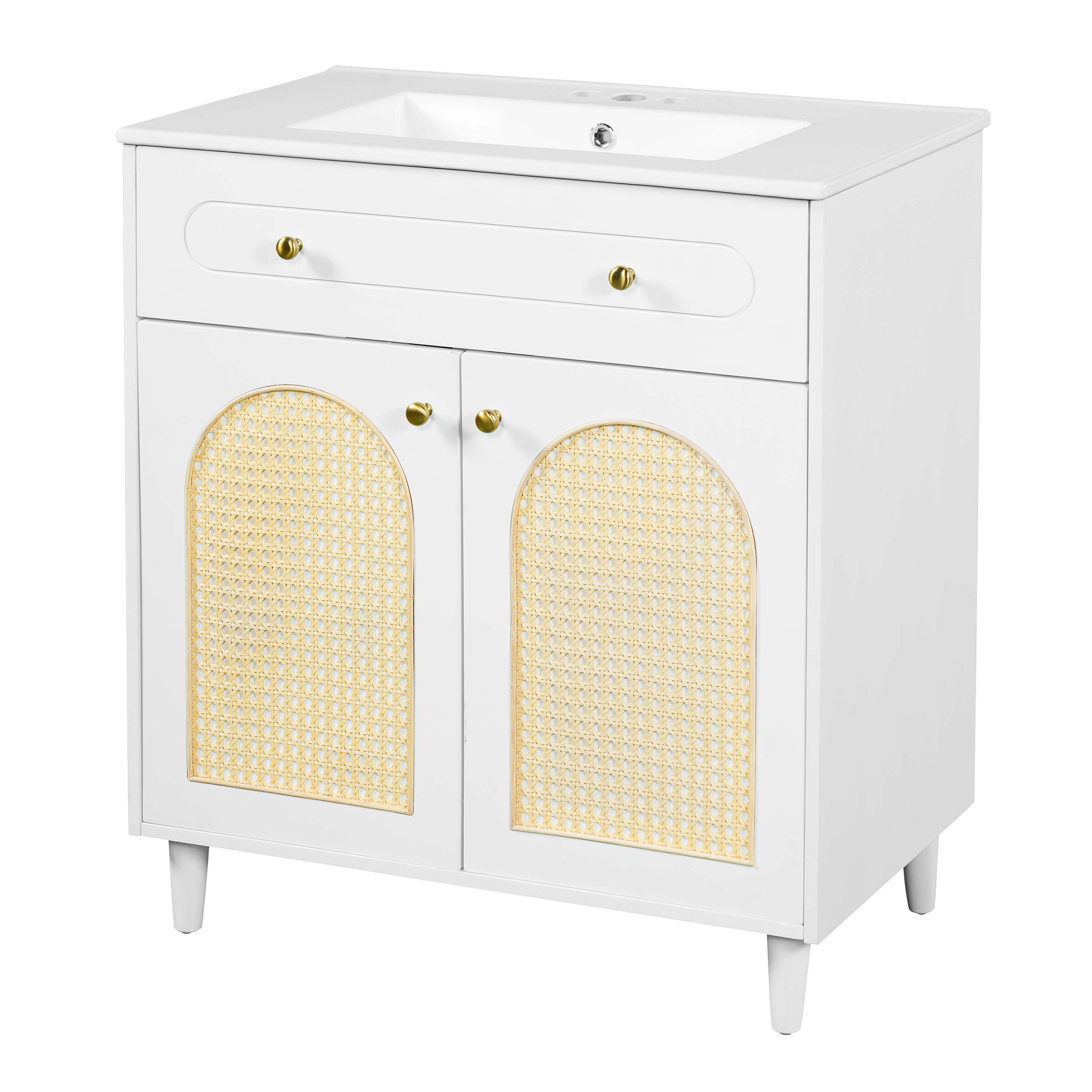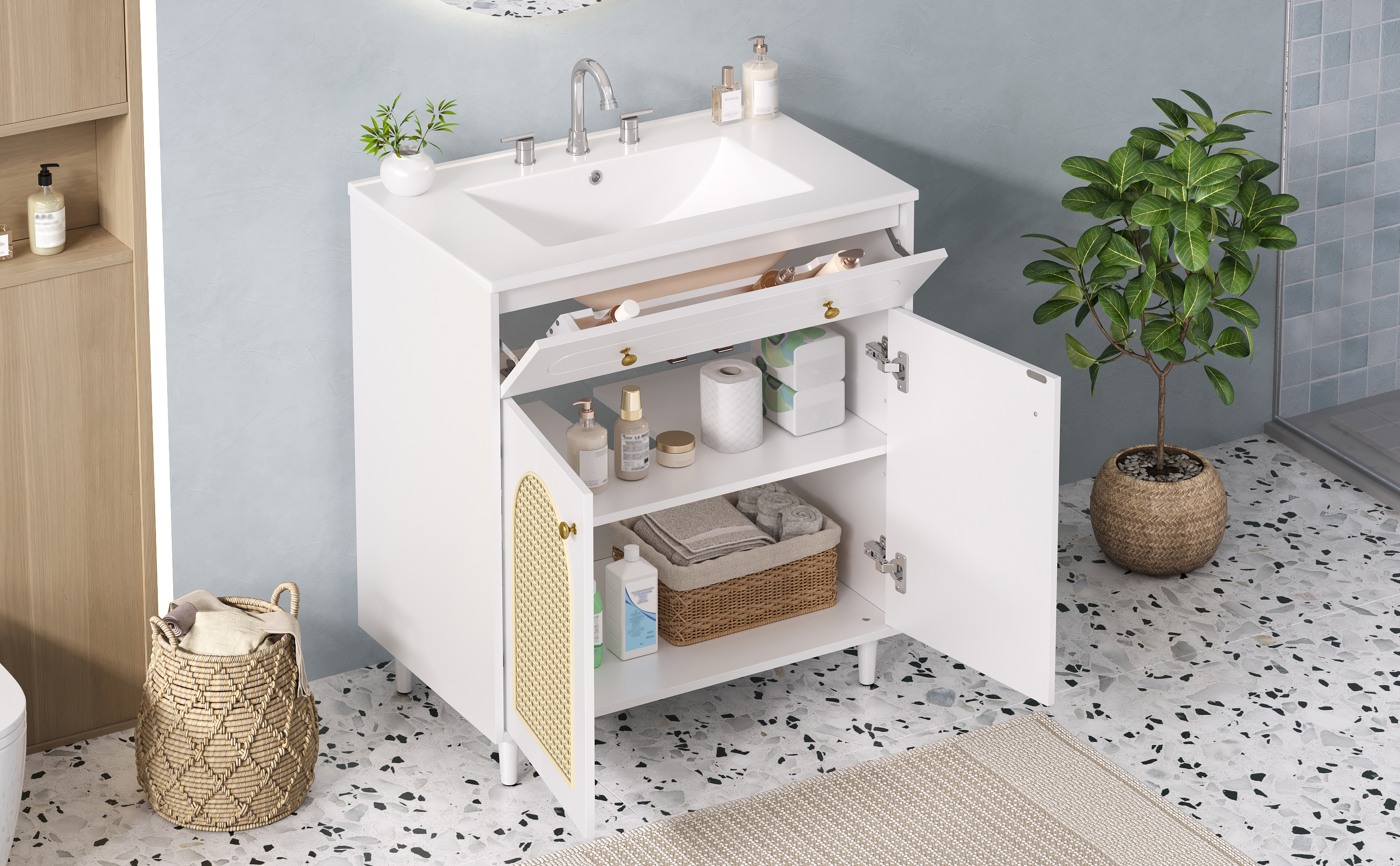 Product Name:30" Bathroom Vanity with Ceramic Sink, Solid Wood Frame Bathroom Sink Cabinet with Adjustable Shelf, Tip-Drawer, Rattan Front Panels