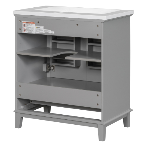 Product Name:30" Bathroom Vanity with Sink Combo, Multi-functional Bathroom Cabinet with Doors and Drawer, Solid Frame and MDF Board, Grey (Old Sku:SY999606AAE)