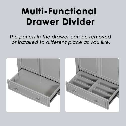 - Multi-functional Cabinet and Drawer: The door of this vanity cabinet is designed as functional storage: a rack with two tiers on the each door for you to store makeup and other stuff. Besides, the lower big drawer can be divided into different parts by the section panel. The panel is removable and you can remove it according to your needs.