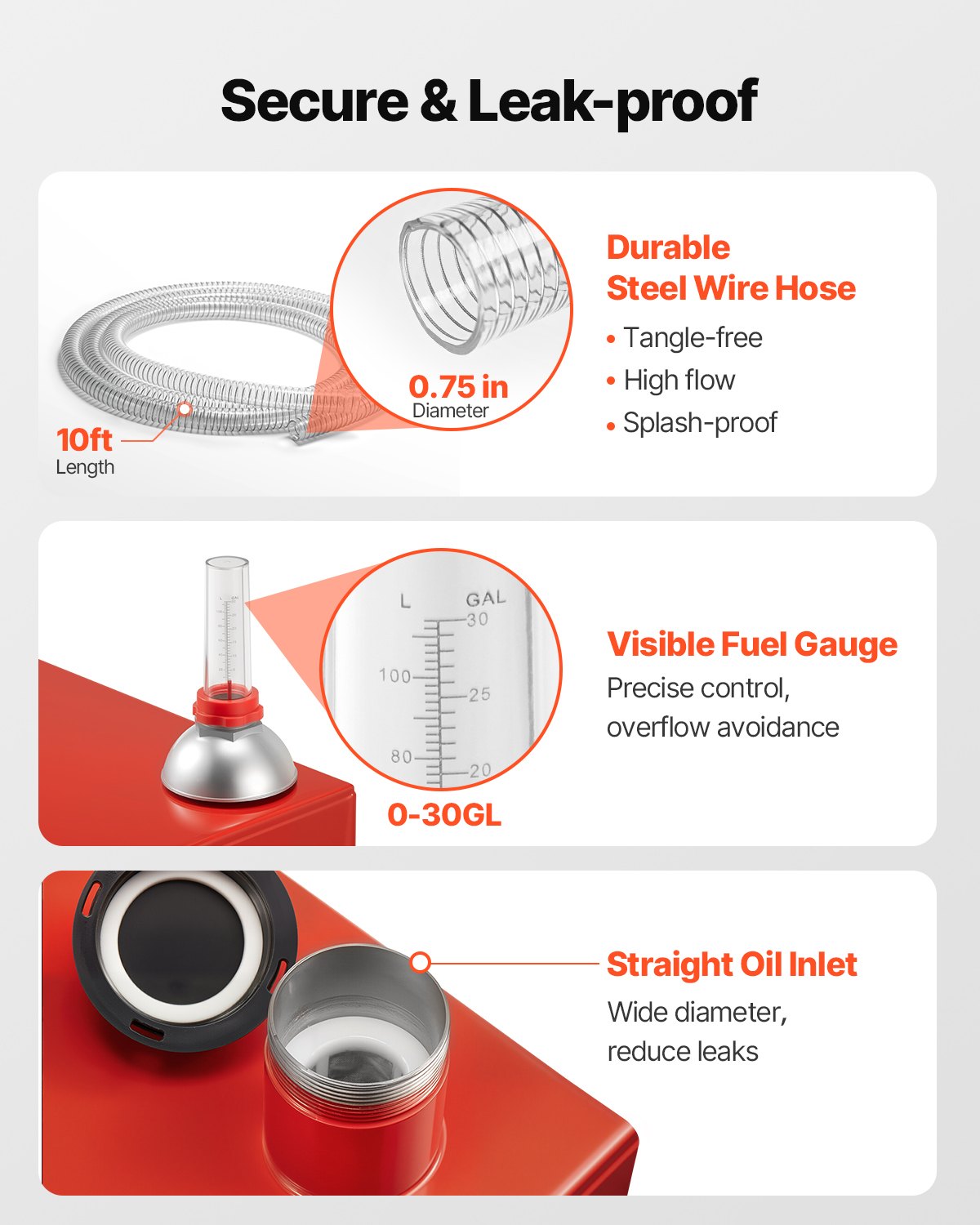 Security Design: Designed with security in mind, this storage tank features a kink-resistant steel hose, smooth fuel flow, and a visible gauge. The wide inlet helps avoid spills, while leak-proof features ensure a clean and secure refueling process every time.